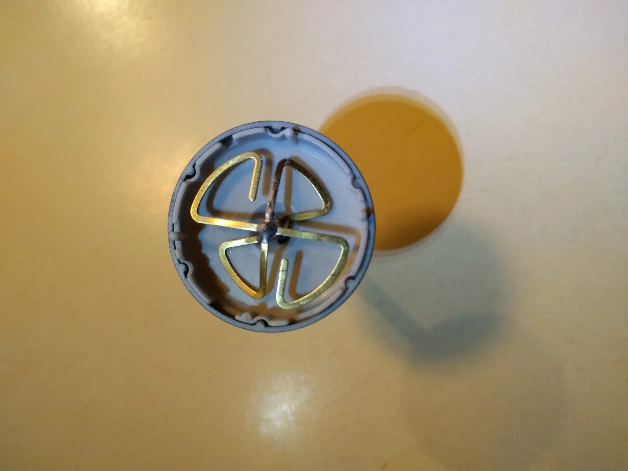 Opening up the antenna, we see this is not a circularly polarized cloverleaf, but a circularly polarized quadrifilar helix antenna. Thanks to AA4HA over on qrz.com for helping identify it. Since it’s circularly polarized, it should work fine with a normal cloverleaf on the receiving end.