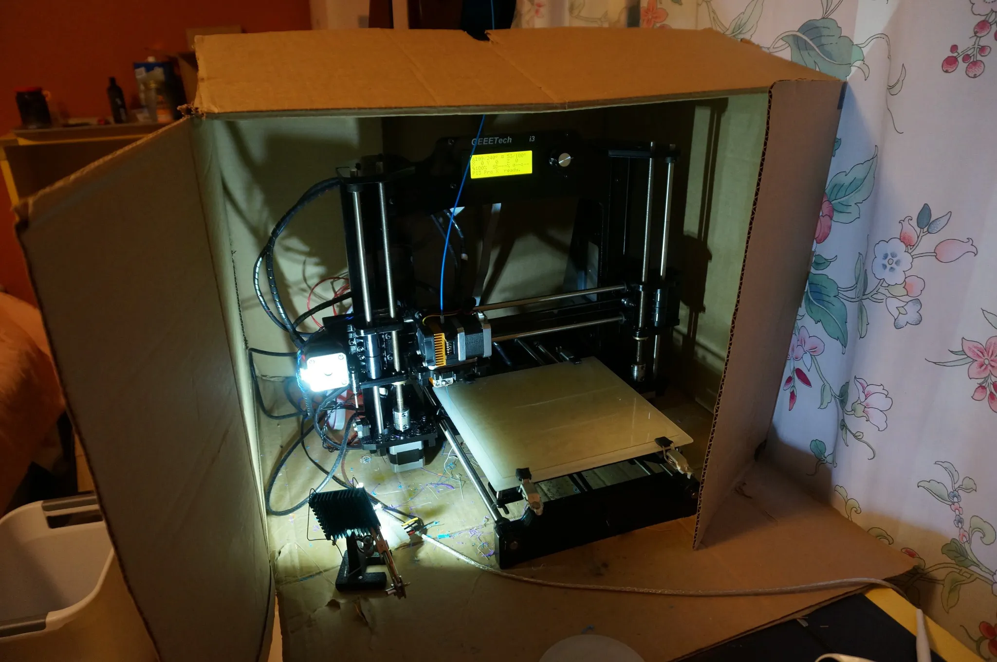 Seriously, just find a cardboard box big enough and set it in there. Close the doors/flaps when printing.