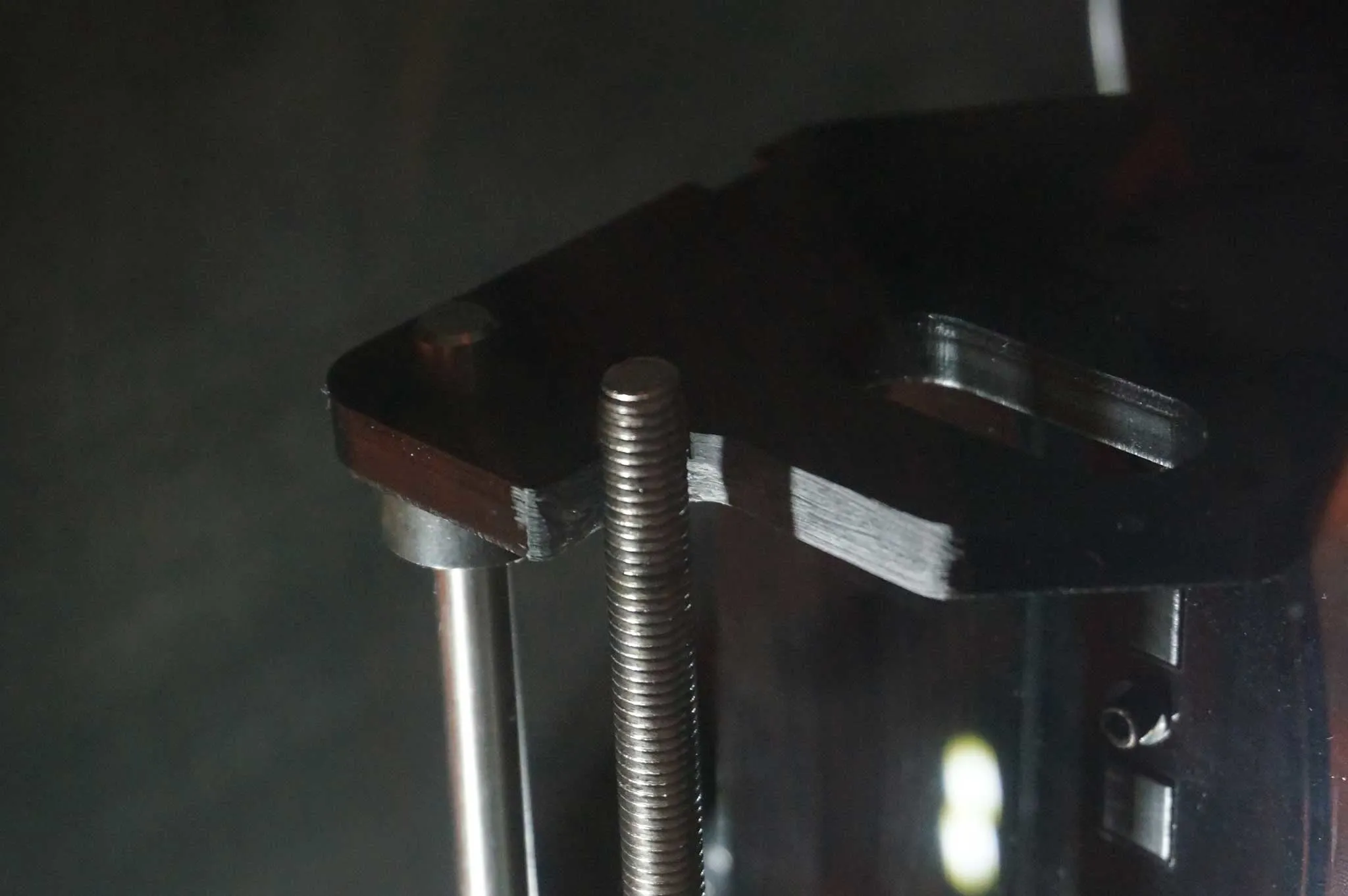 If so, your Prusa i3 is over-constrained on the Z-axis. So how does one fix this? Remove the excess constraints! I used my trusty WEN 2305 Rotary Tool Kit with Flex Shaft to remove the constraint. Basically, cut away the holes for the threaded rod and just let them float there.