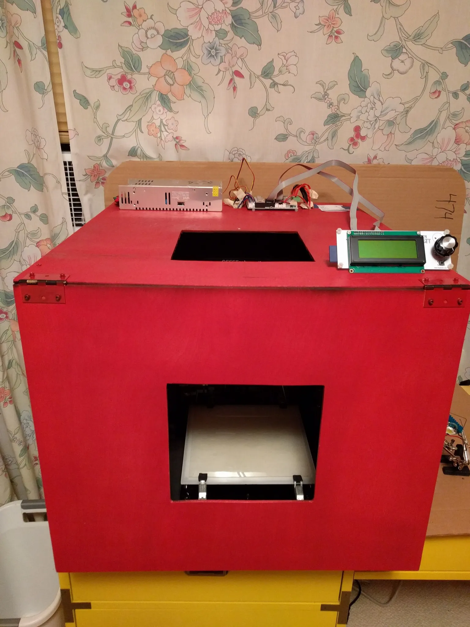 After a while, my cardboard box was badly worn, so I bought some thin plywood and built a real box out of wood.