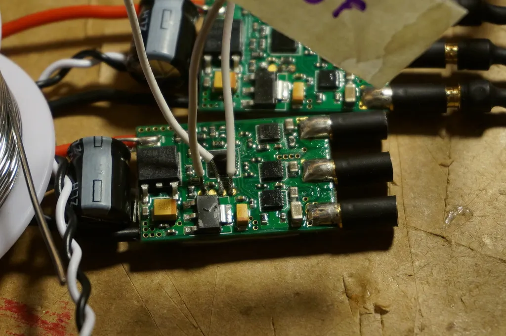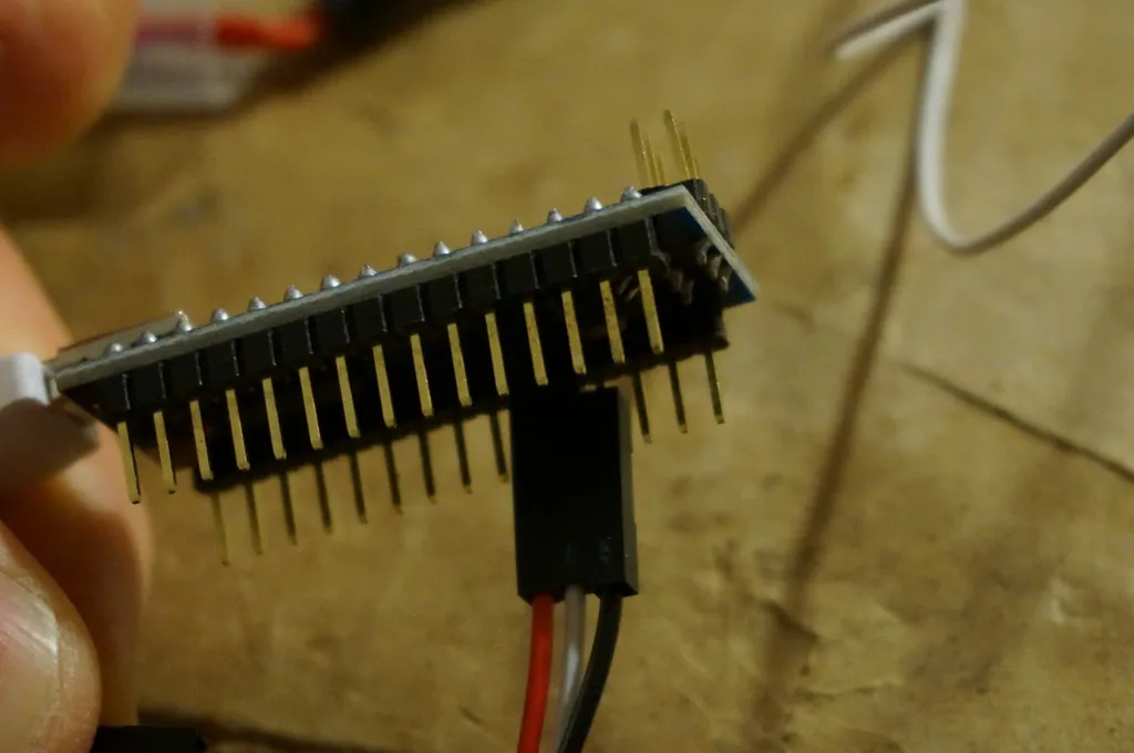 Since I couldn’t get good contact just holding the pins against the ESC, I ended up soldering leads onto each ESC. Soldering worked fine. It doesn’t take too long, so consider just soldering temporary leads before building a cable.
