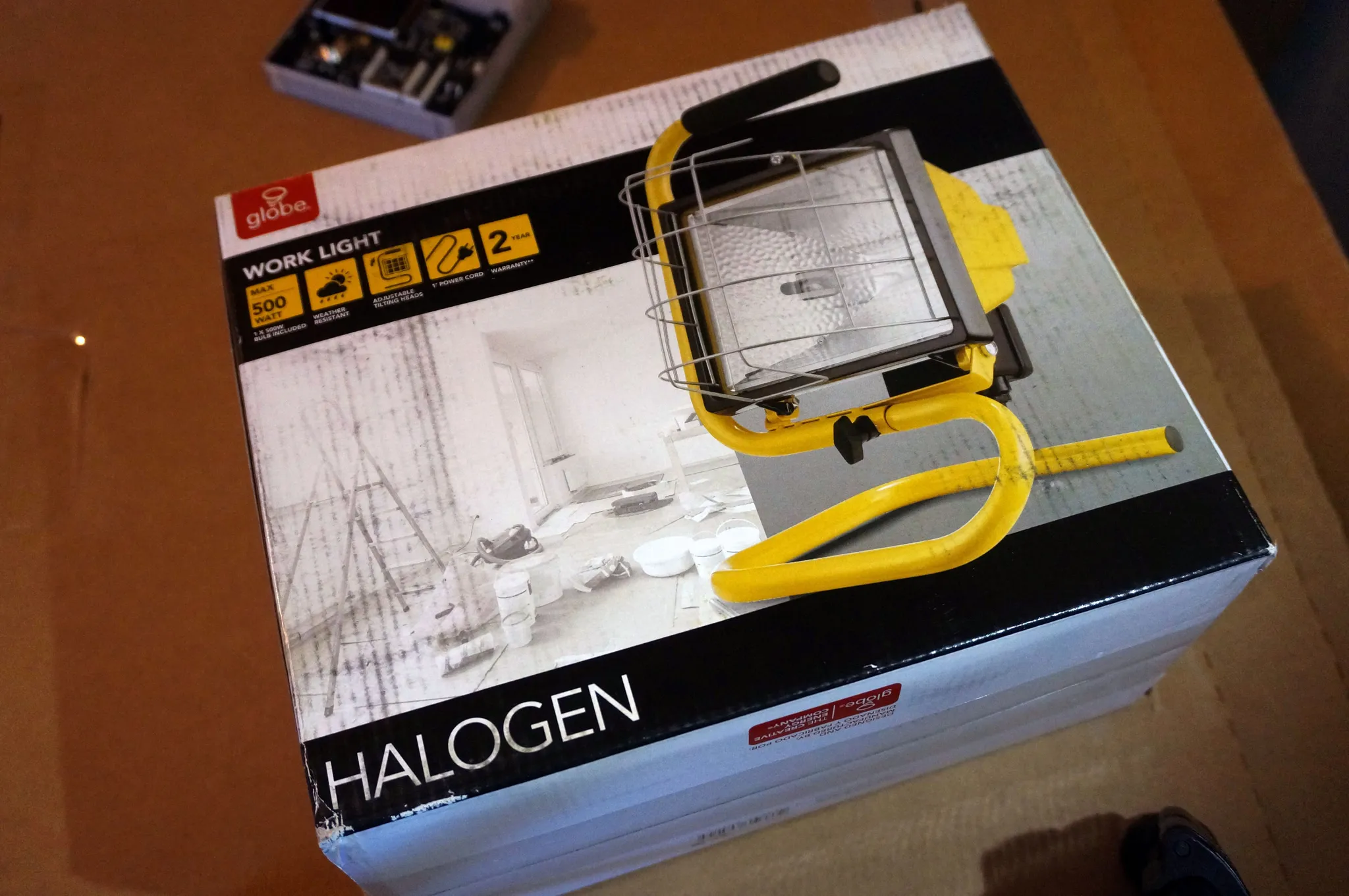 A 500W Portable Halogen Work Light. I’ve ordered this exact model myself and tested with it. It works great!