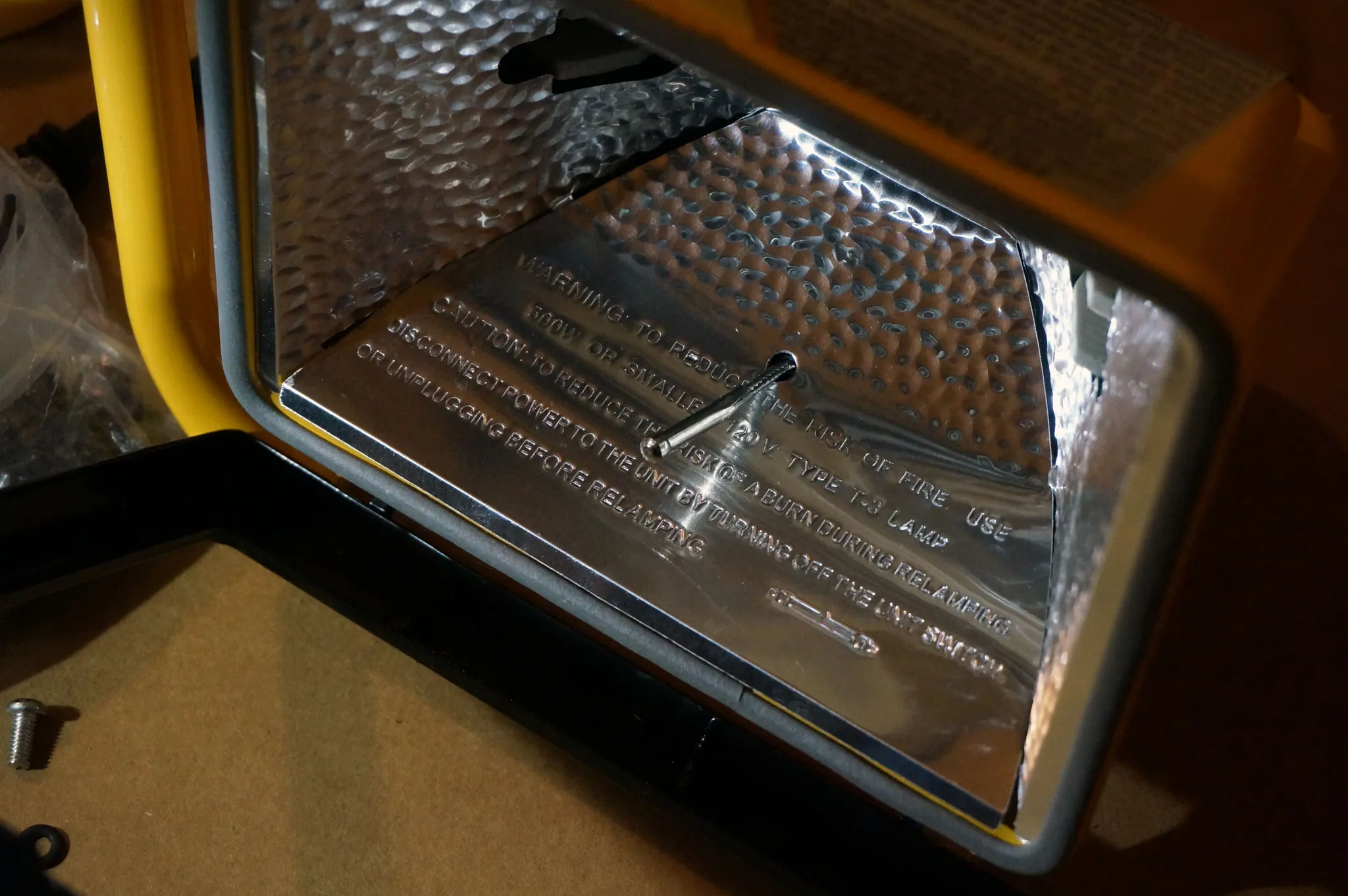 You’ll notice the handle is a bit weird with the lamp face down on the table (as it will be used), so use a 10mm socket wrench to loosen and switch the side of the handle, which will put it in a nice, usable angle.