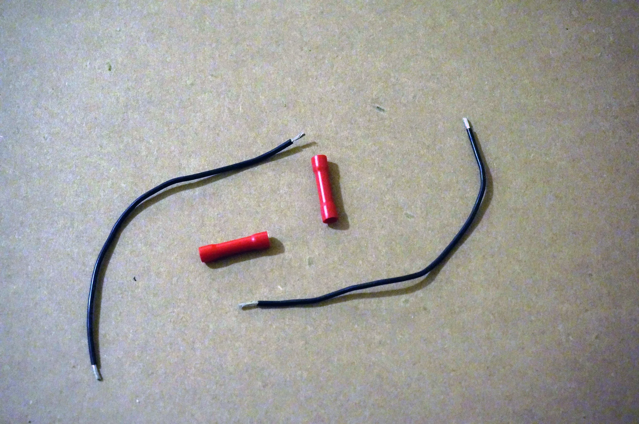 You’ll need a couple of short leads to lengthen the wires for the lamp fixture. You can re-use the crimps you loosened earlier or grab some new ones (I used some new ones, but either will work fine).