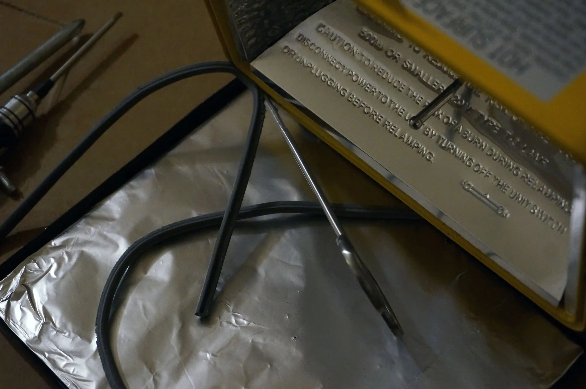 Pull the thermocouple back up a bit and re-install the reflector. I tried to position the end of the thermocouple as far down as possible, but not so far that it will touch a PCB being soldered. This doesn’t need to be exact, as you can always bend it out of the way later.
