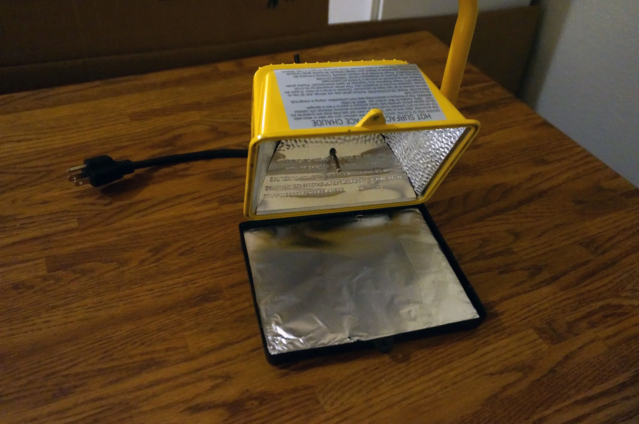 I was skeptical the lamp could provide adequate heating, but it does the job just fine. Here you can see the k-type thermocouple added to the lamp.