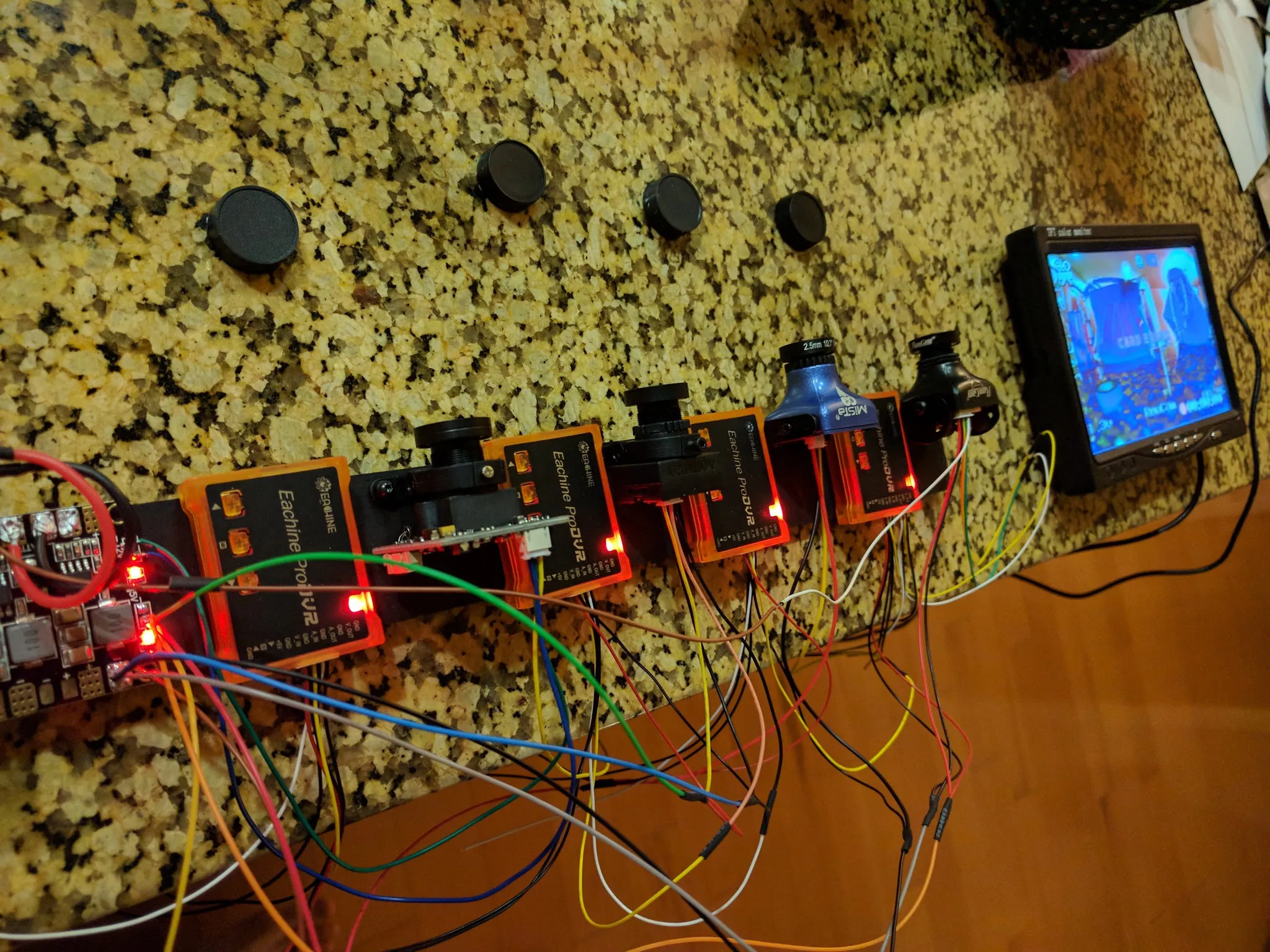 I used 4x identical Eachine ProDVR video recorders and a 5V/12V power distribution board as the power supply.