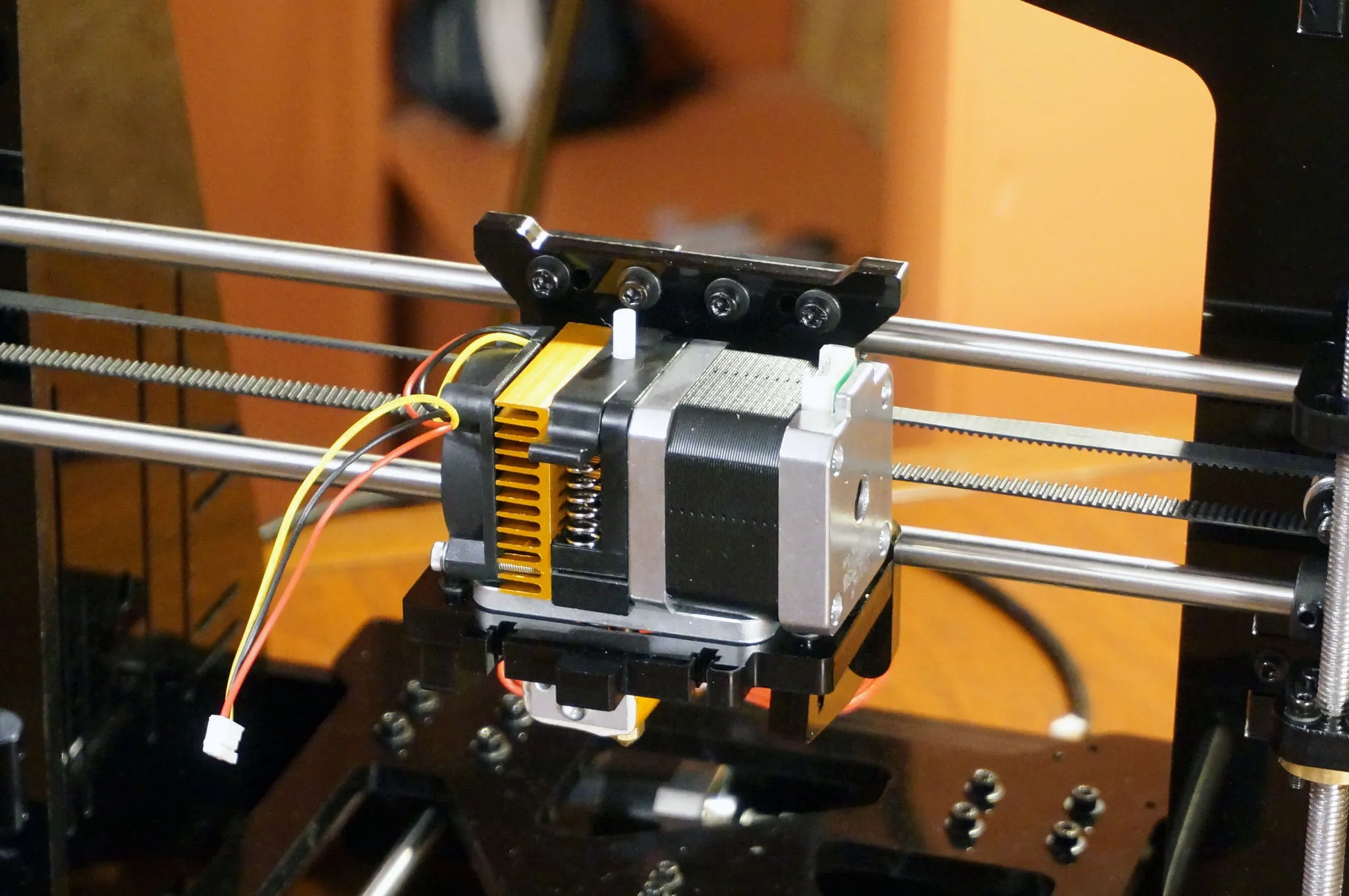 One of the first upgrades I made was printing one of these PLA cooling fans for the MK8 hotend. Since there is no dedicated fan, you can use the main printhead fan when printing PLA, as it does much better with active cooling.