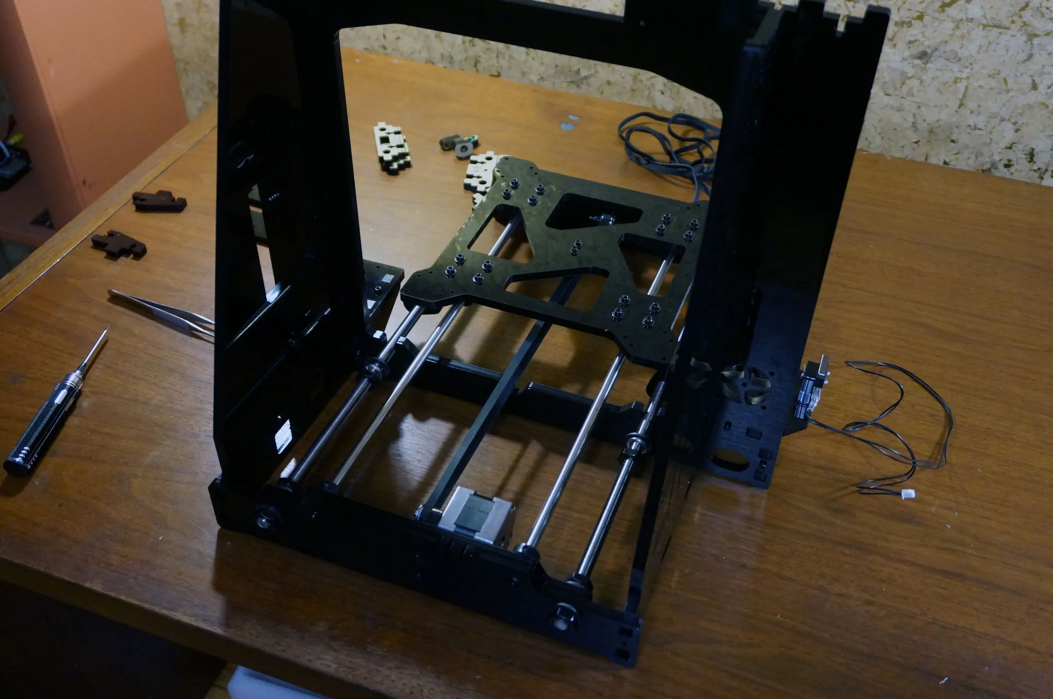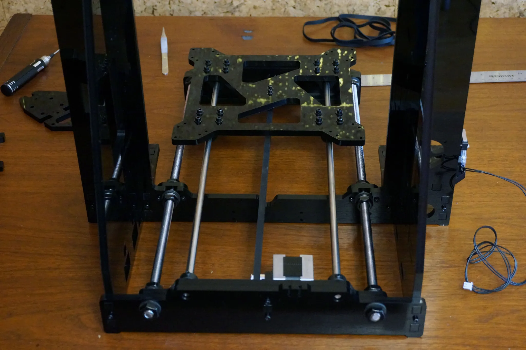 Use blue threadlock wherever you have metal on metal; however, the blue threadlock will degrade the acrylic frame, so be sure to not let the threadlock touch the acrylic! The only places I was able to safely use Loctite was on the motor couplers.