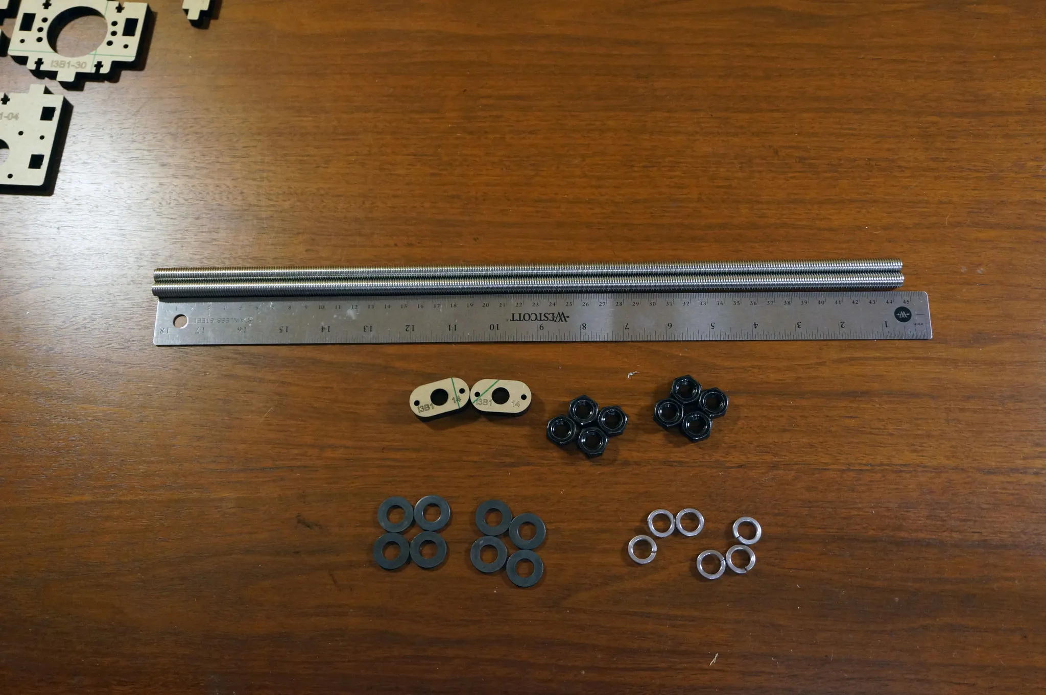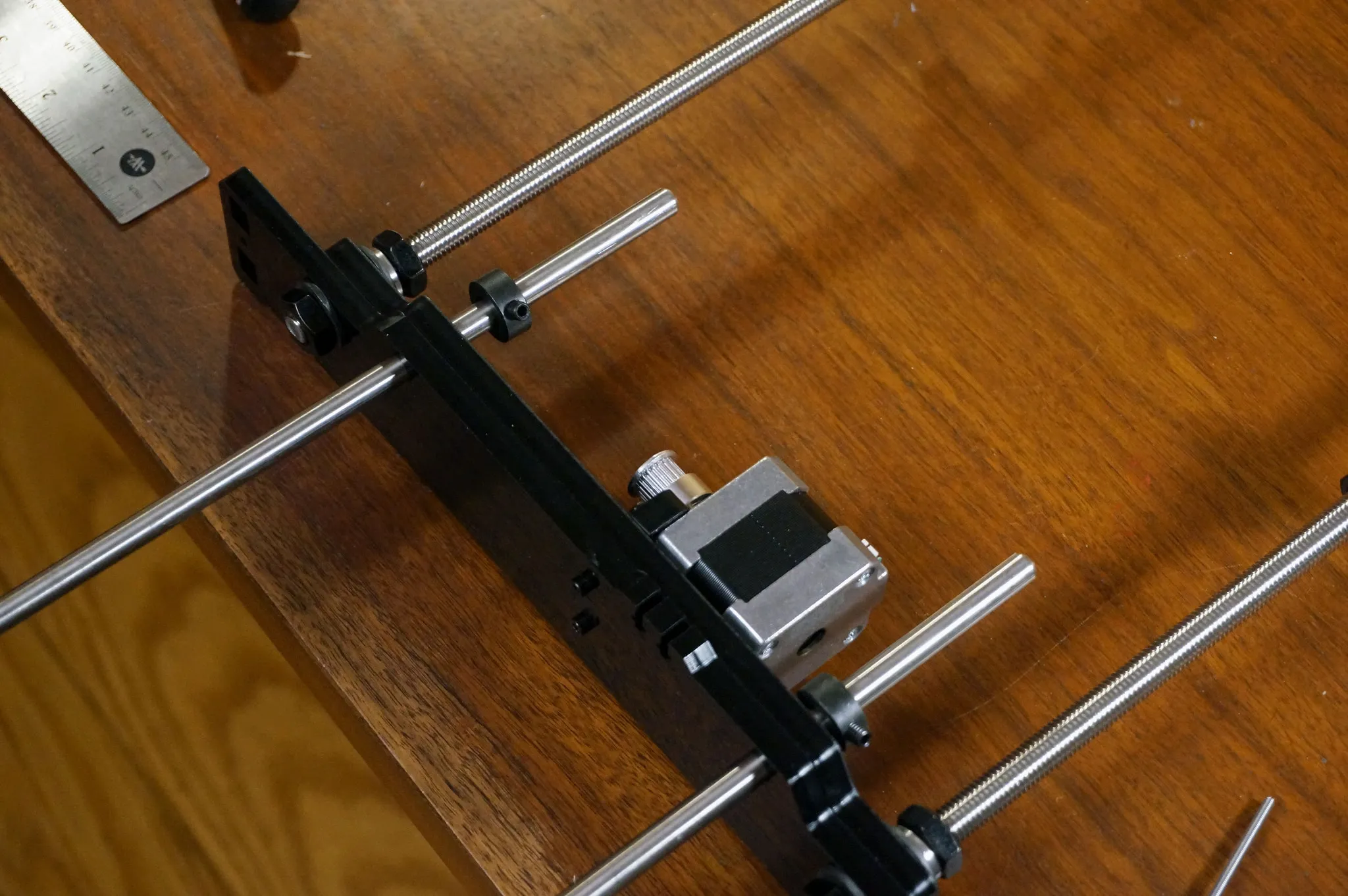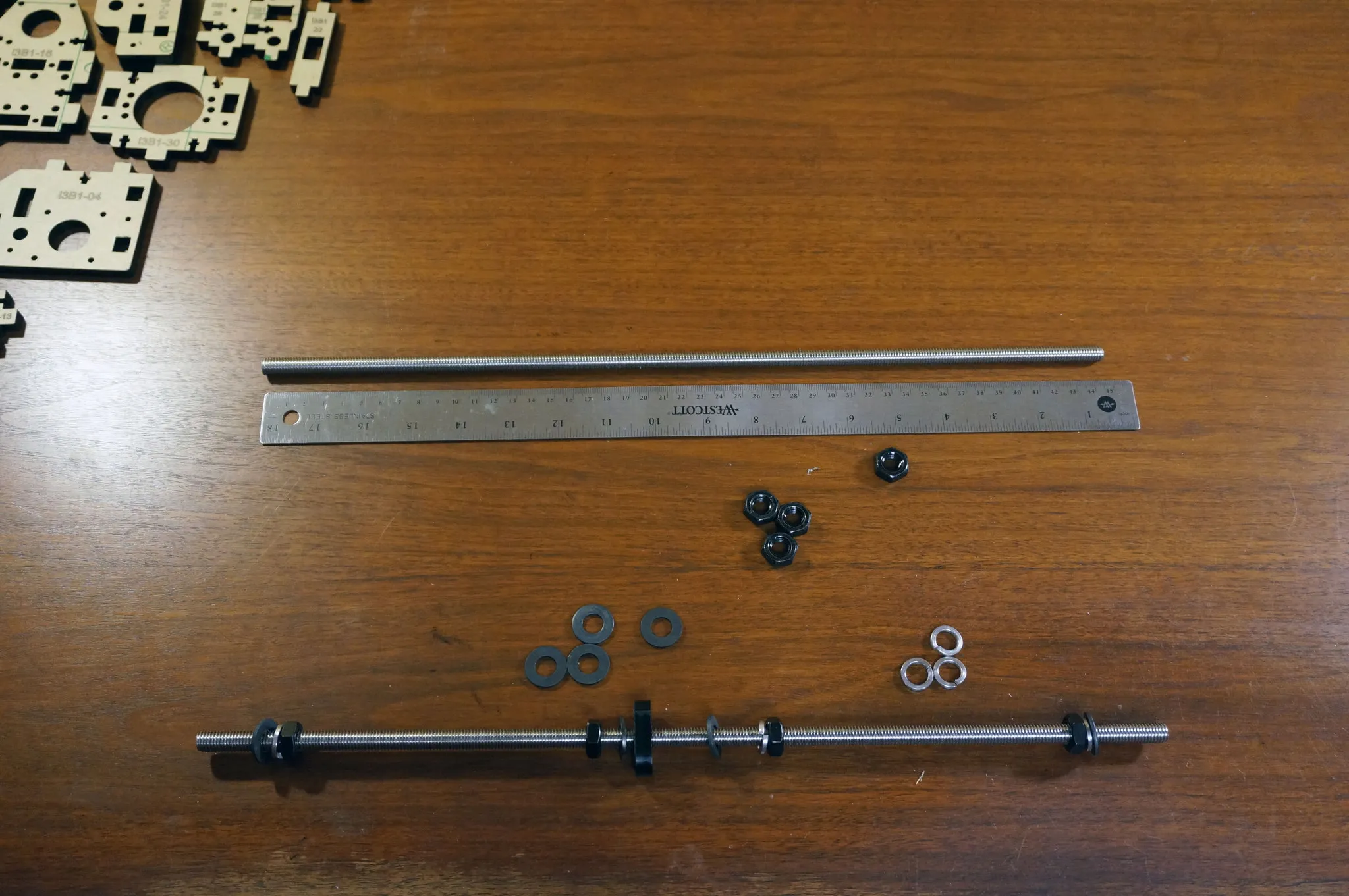 On this step, I got everything assembled, then used a ruler to make sure both sides were square. Adjust the outer-most nuts if one side is longer or shorter than the other.