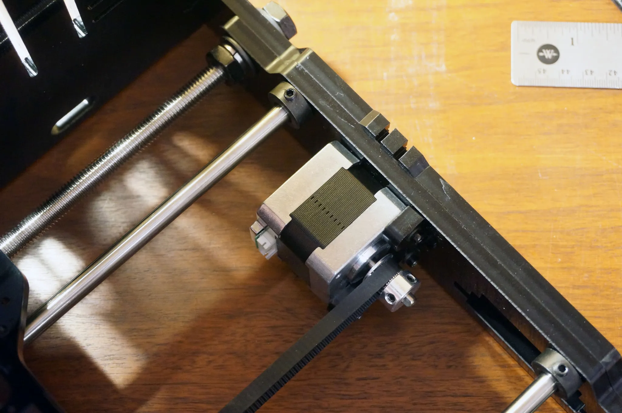 I did wonder how long to make the gap between nuts on the (really long) endstop screw. Here is how long I made mine. Basically, I wanted it to be as long as possible while making sure the top nut was not able to come free.