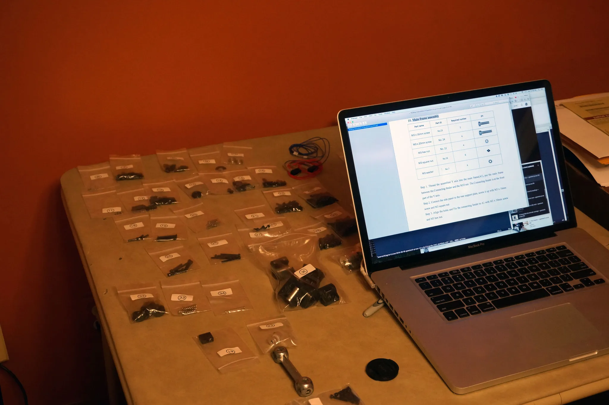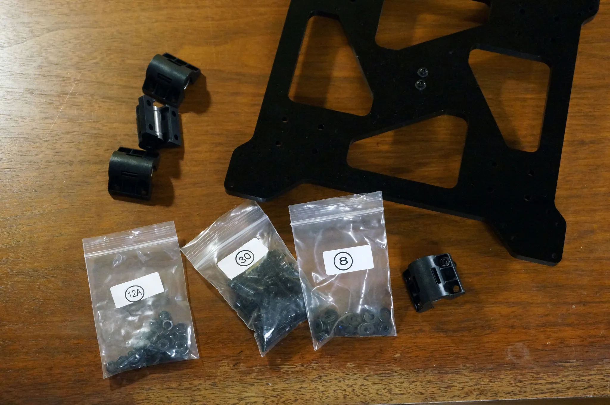 Also, they don’t mention this, but bags 7 and 8 include 3mm and 4mm washers; use them whenever bolts in bags numbered 22, 23, and 30 are used. This will help strengthen the frame.