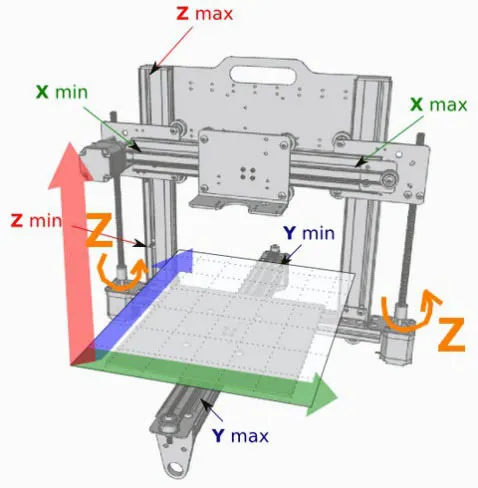 In this guide, I’ll refer to the axes of the printer as described in this diagram.