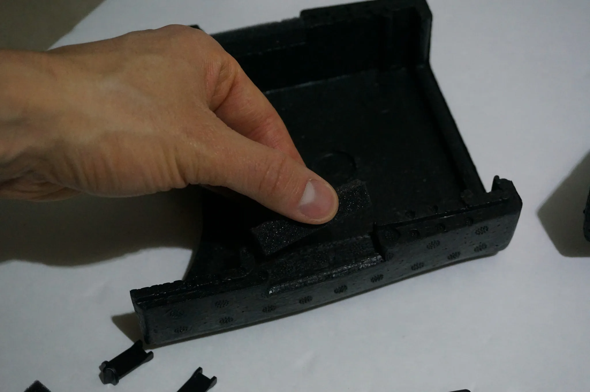 Install the foam bumpers. I used hot glue.