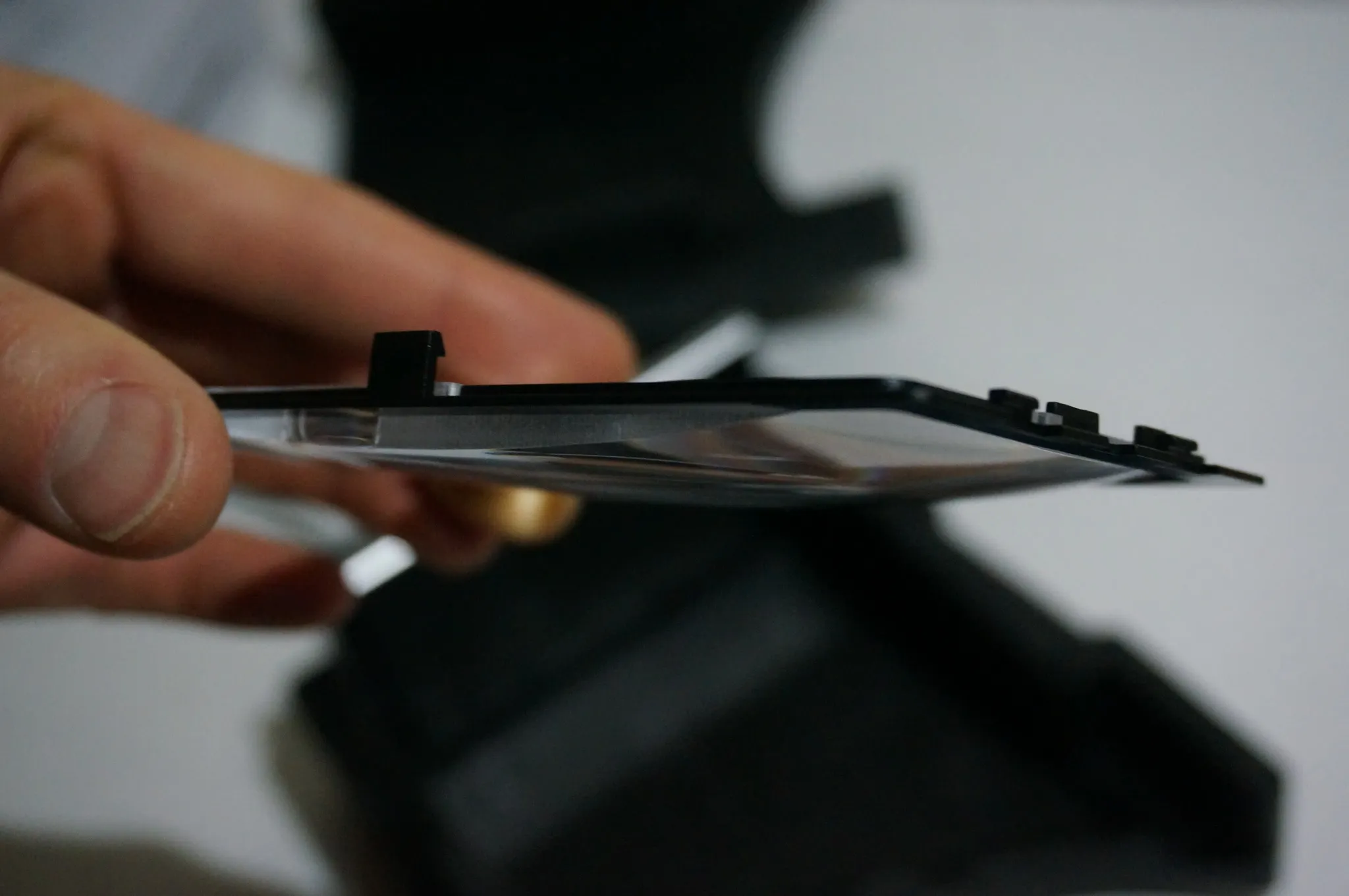 Remove the screen protector from monitor and insert it into the lower piece.