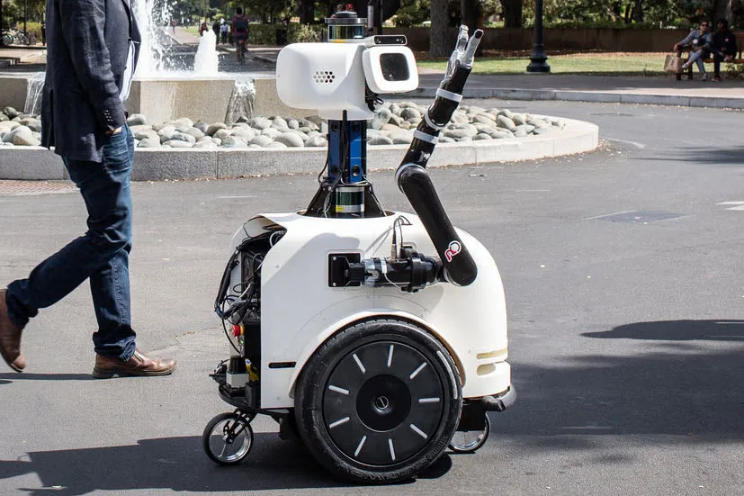 On the side, you can see the KINOVA JACO arm, and the whole thing is built on a Segway base.