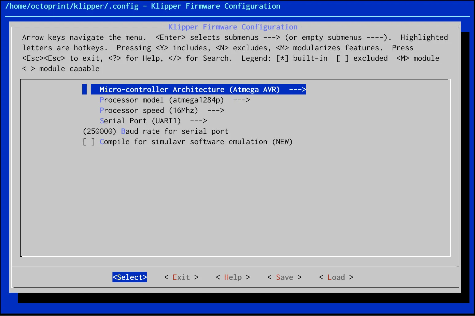 avrdude -p atmega1284p -c arduino -b 57600 -P /dev/ttyS1 -U out/klipper.elf.hex