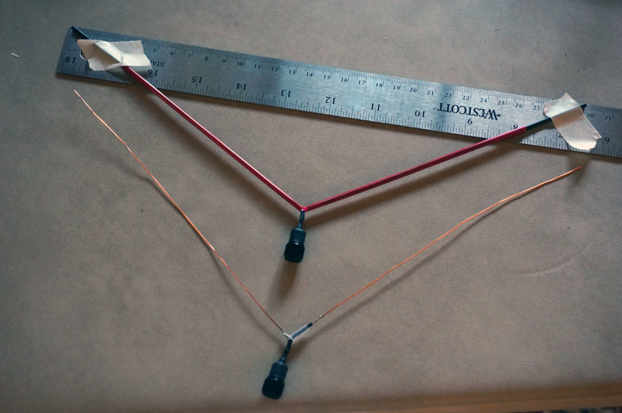 I have the wires taped to a ruler to get the recommended 120-degree angle between the wires.
