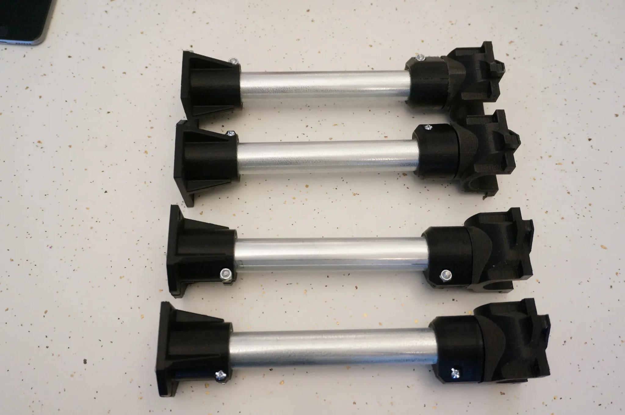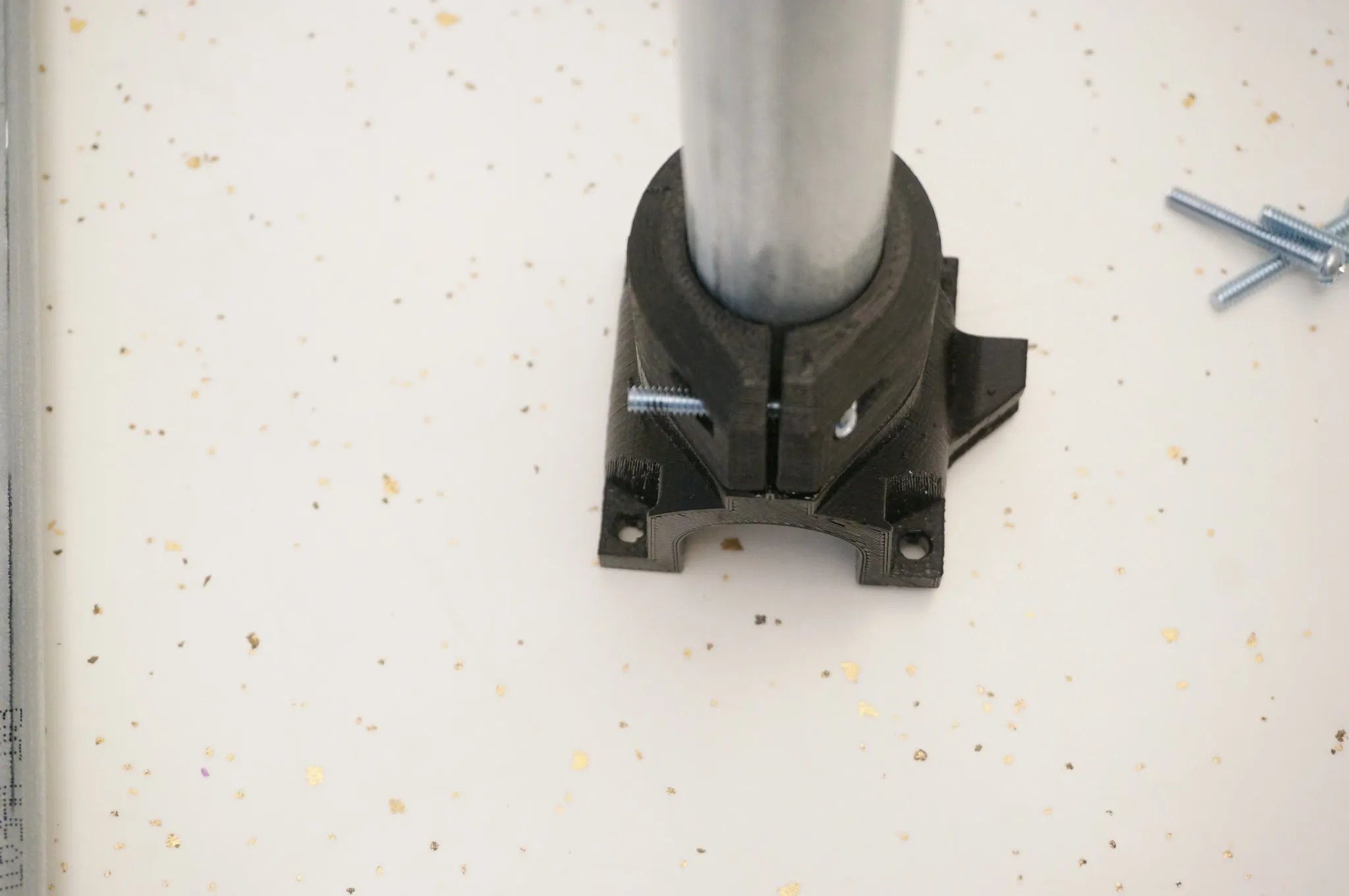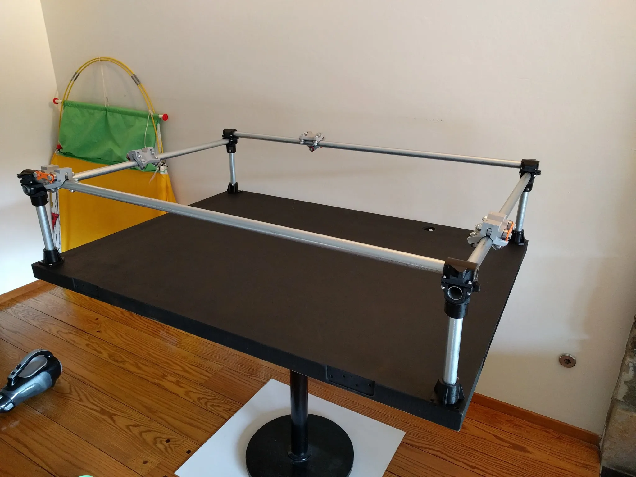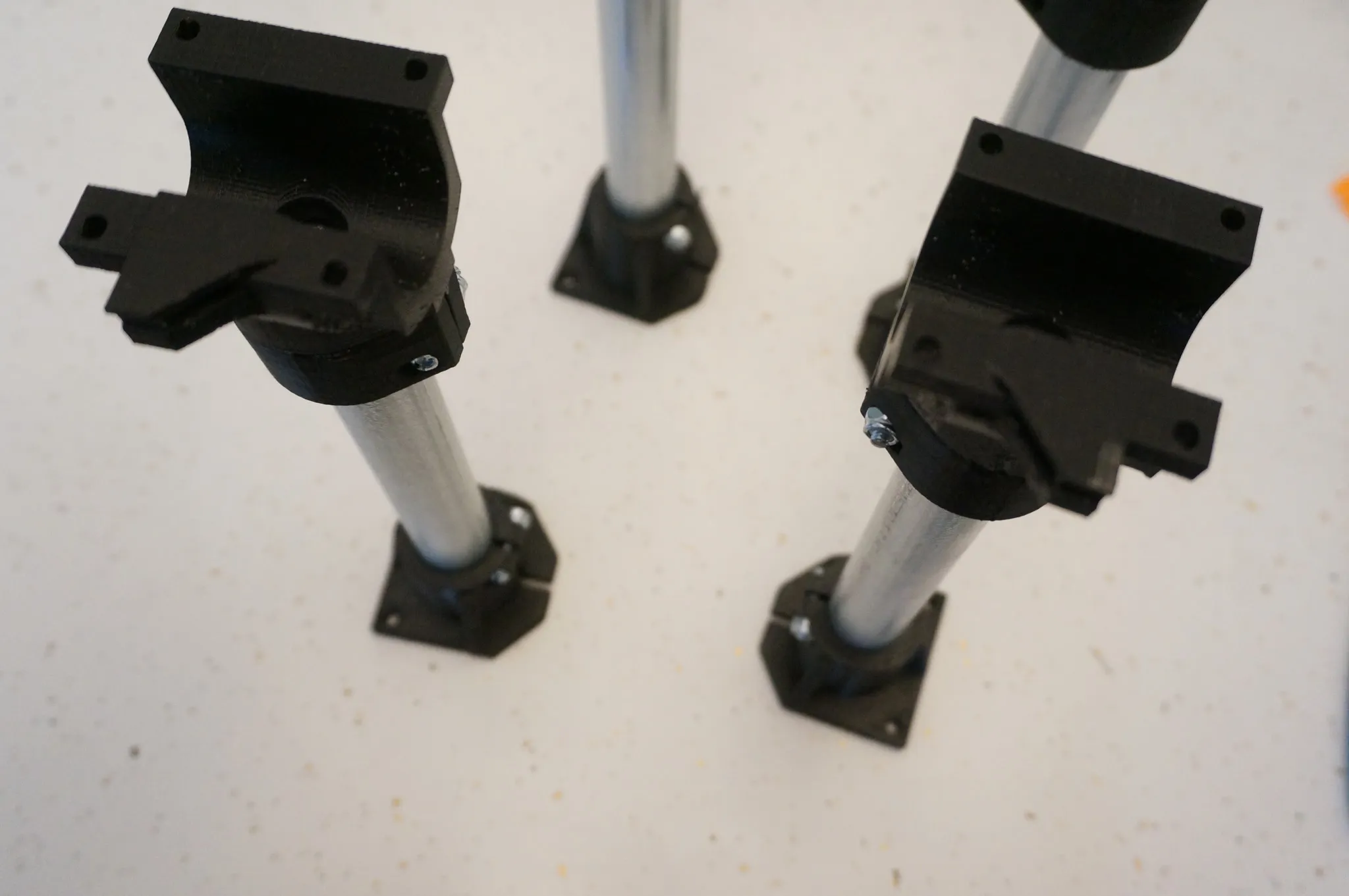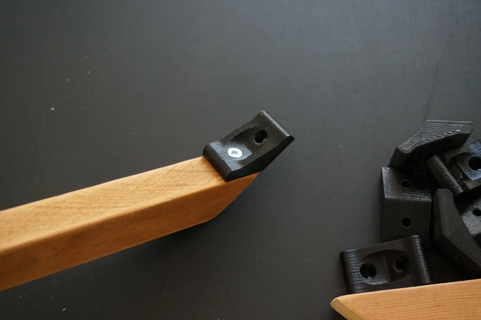 I ended up using an old door I found in the basement and some scrap wood. I printed out these little holders for the legs, but in hindsight, it would have been better to use a more traditional table building method, like a strip of wood lengthwise around the table to which the legs can be bolted.