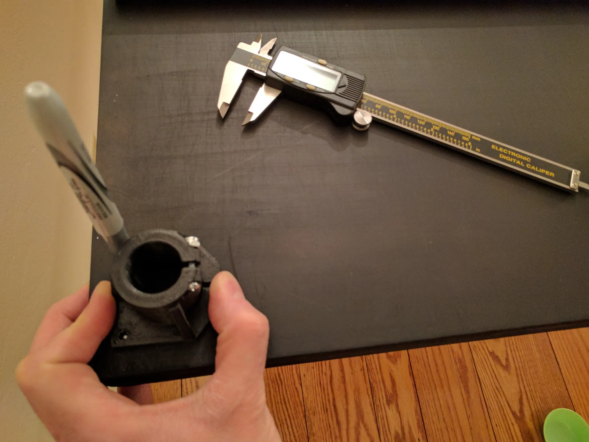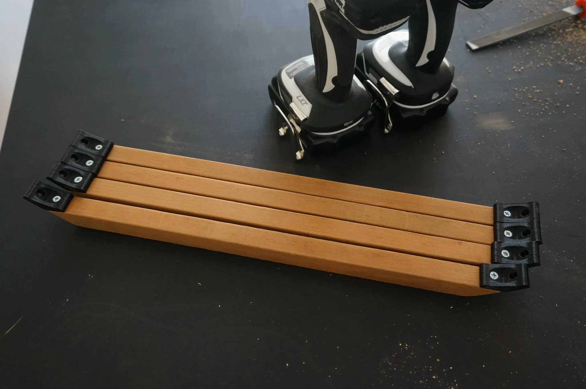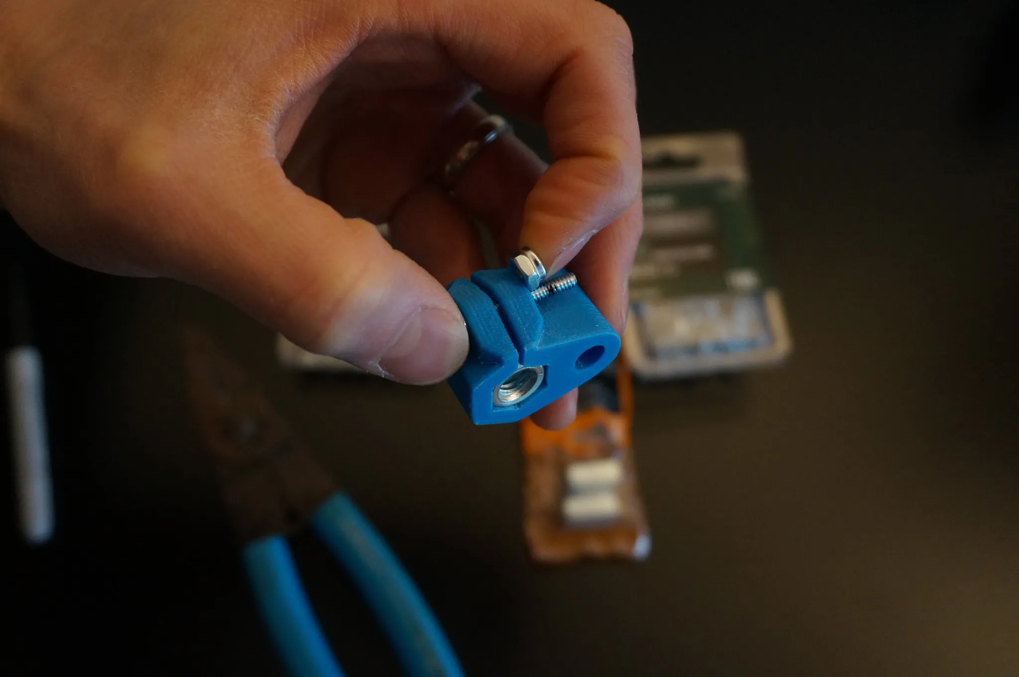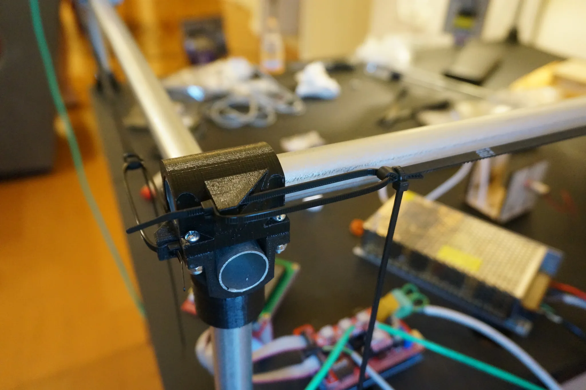 I ended up using an old door I found in the basement and some scrap wood. I printed out these little holders for the legs, but in hindsight, it would have been better to use a more traditional table building method, like a strip of wood lengthwise around the table to which the legs can be bolted.