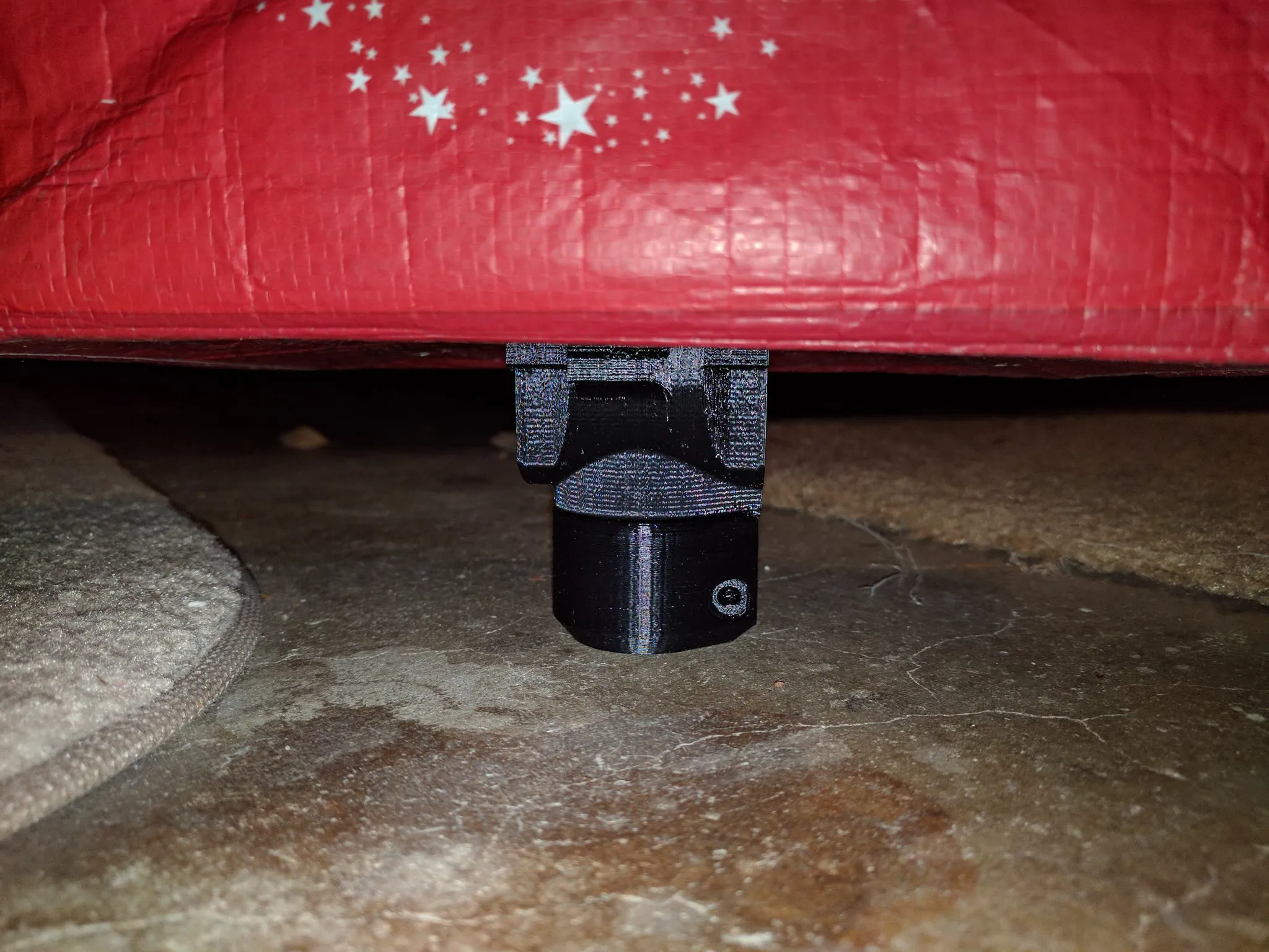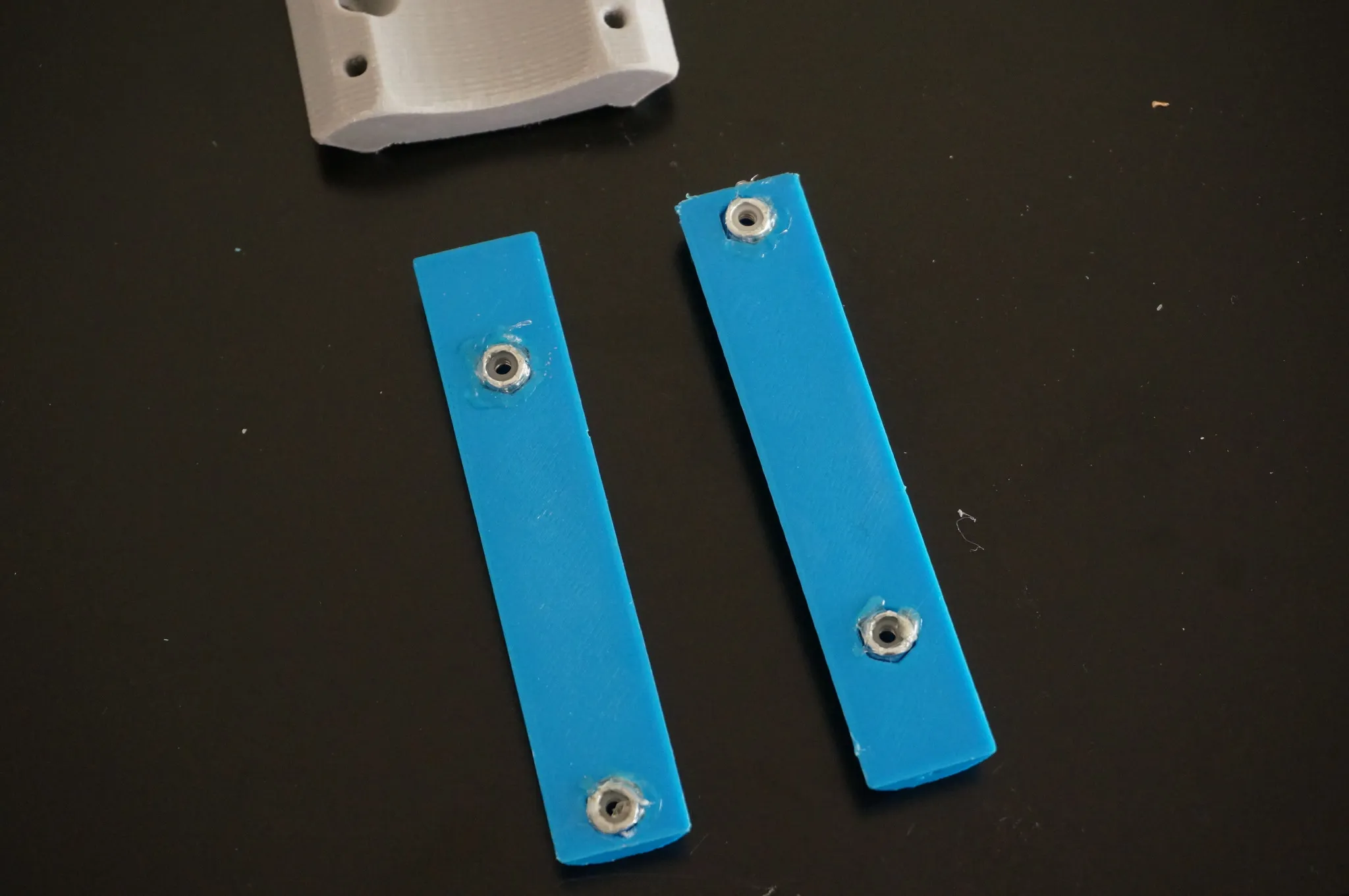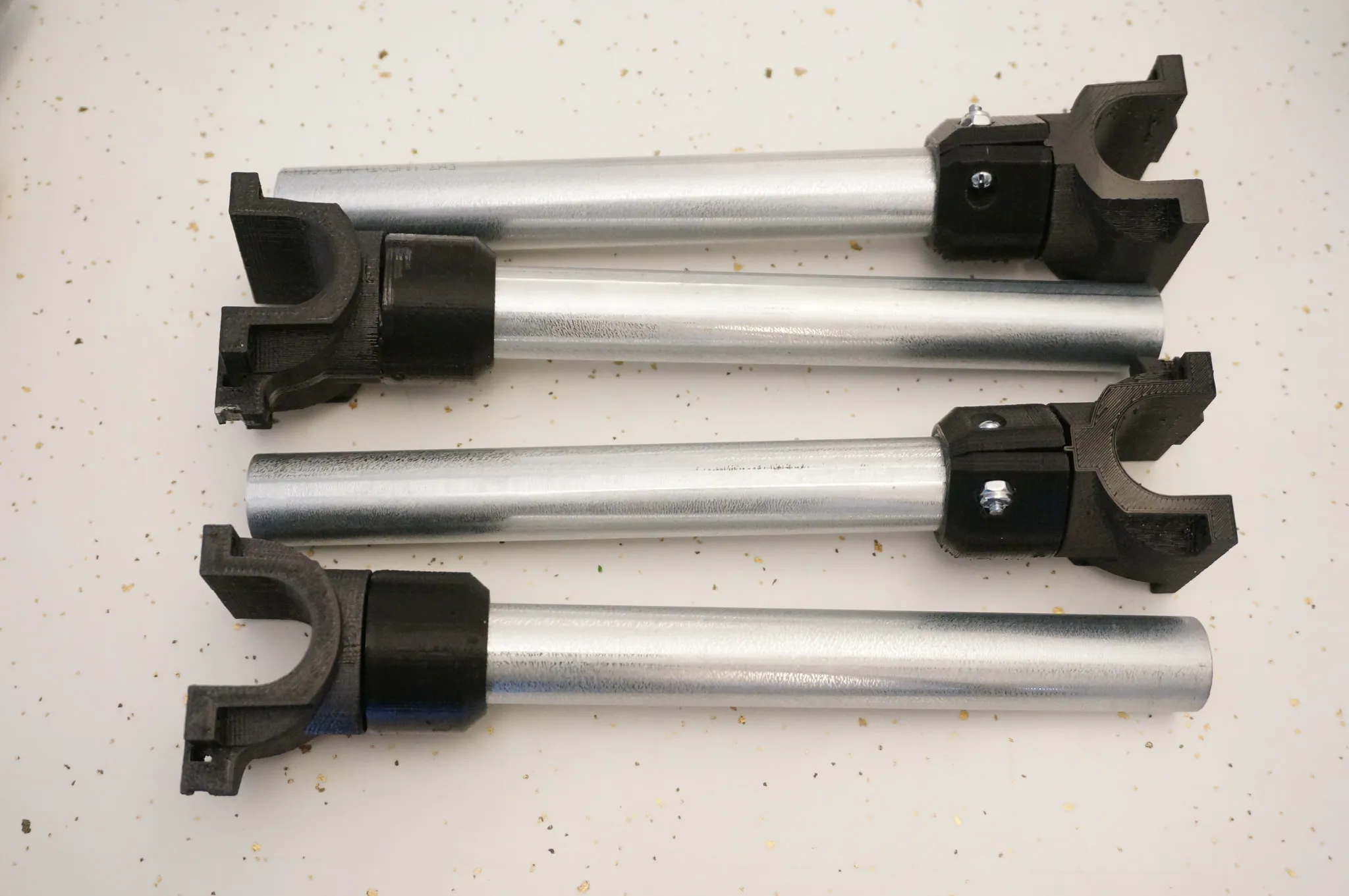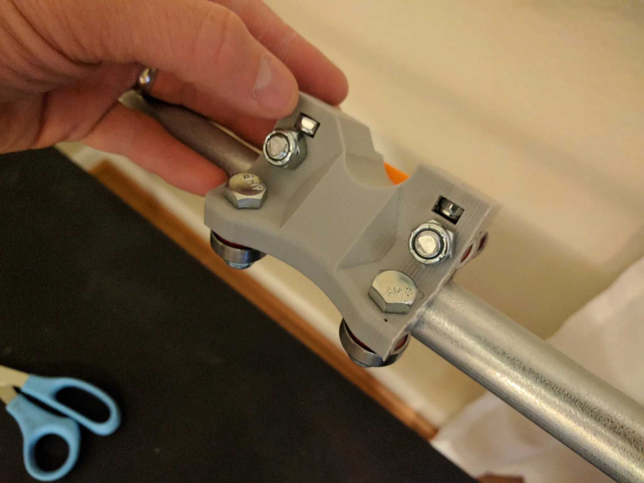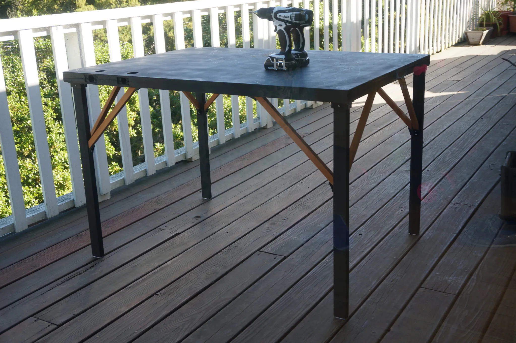 I ended up using an old door I found in the basement and some scrap wood. I printed out these little holders for the legs, but in hindsight, it would have been better to use a more traditional table building method, like a strip of wood lengthwise around the table to which the legs can be bolted.