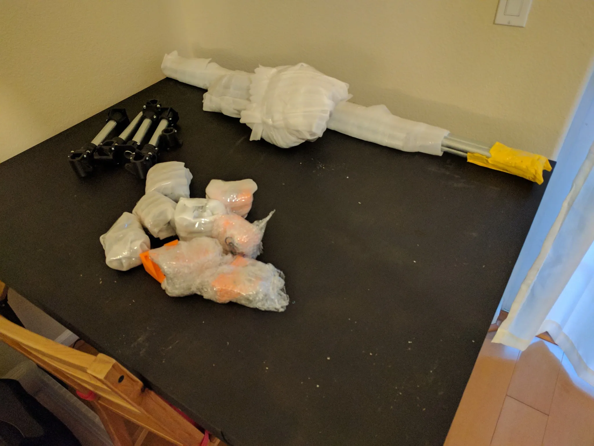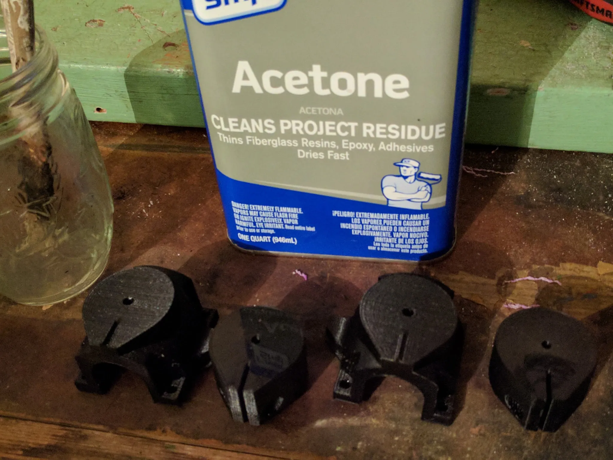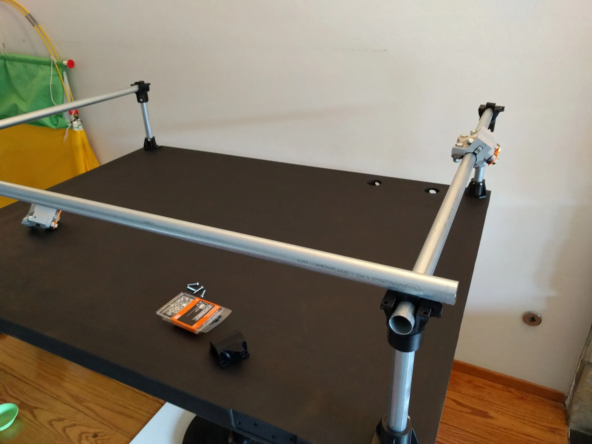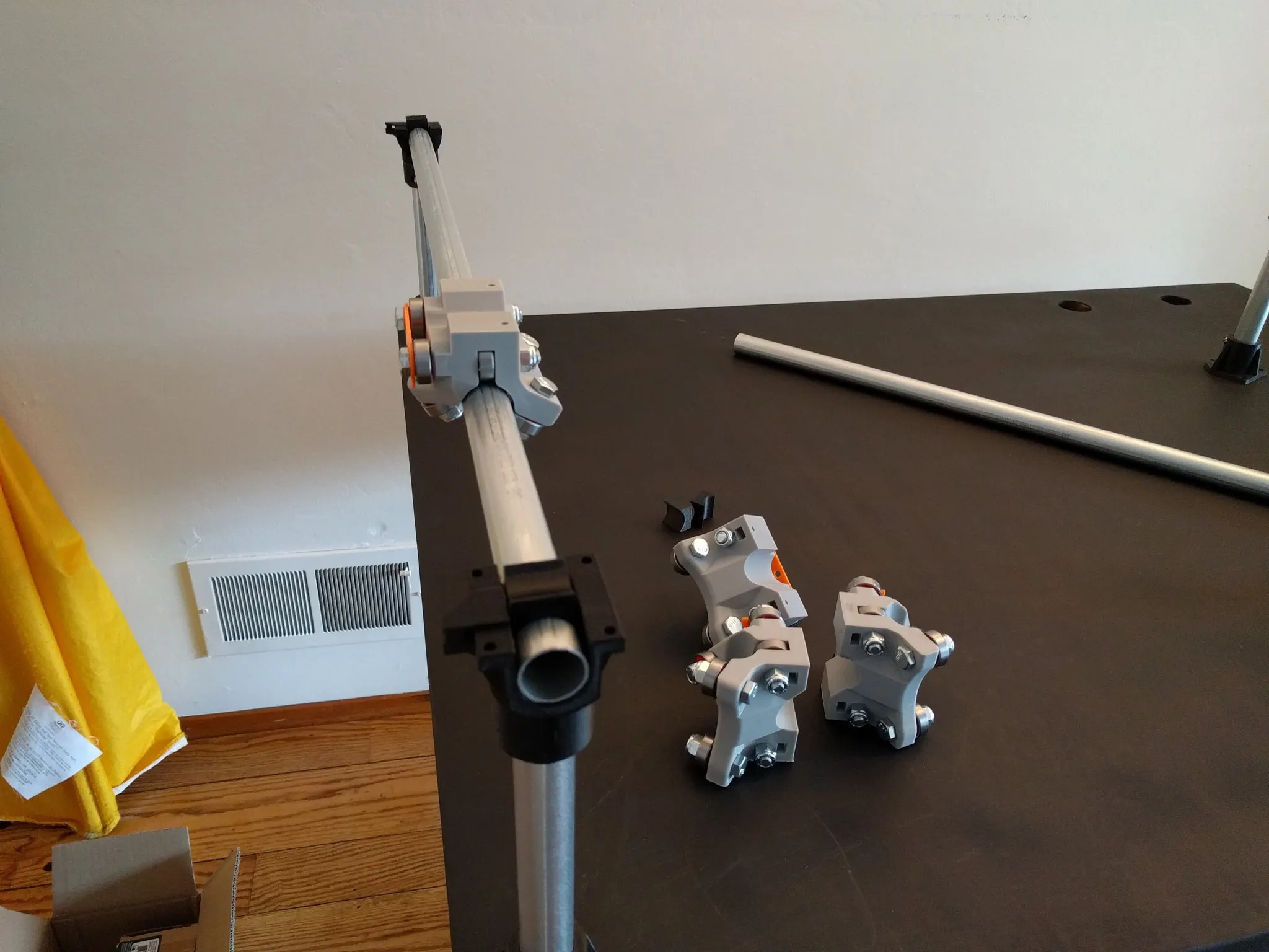 I ended up using an old door I found in the basement and some scrap wood. I printed out these little holders for the legs, but in hindsight, it would have been better to use a more traditional table building method, like a strip of wood lengthwise around the table to which the legs can be bolted.