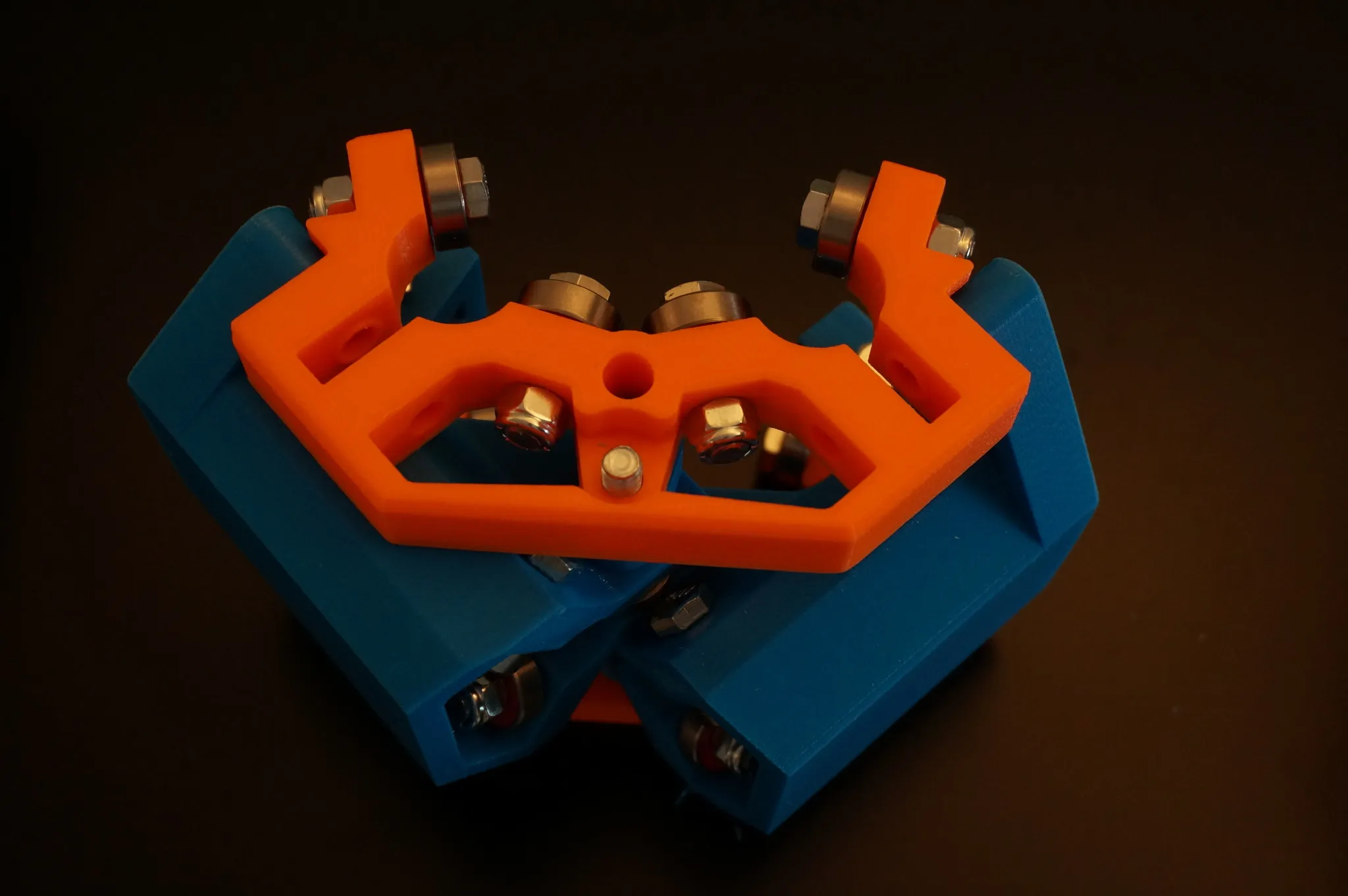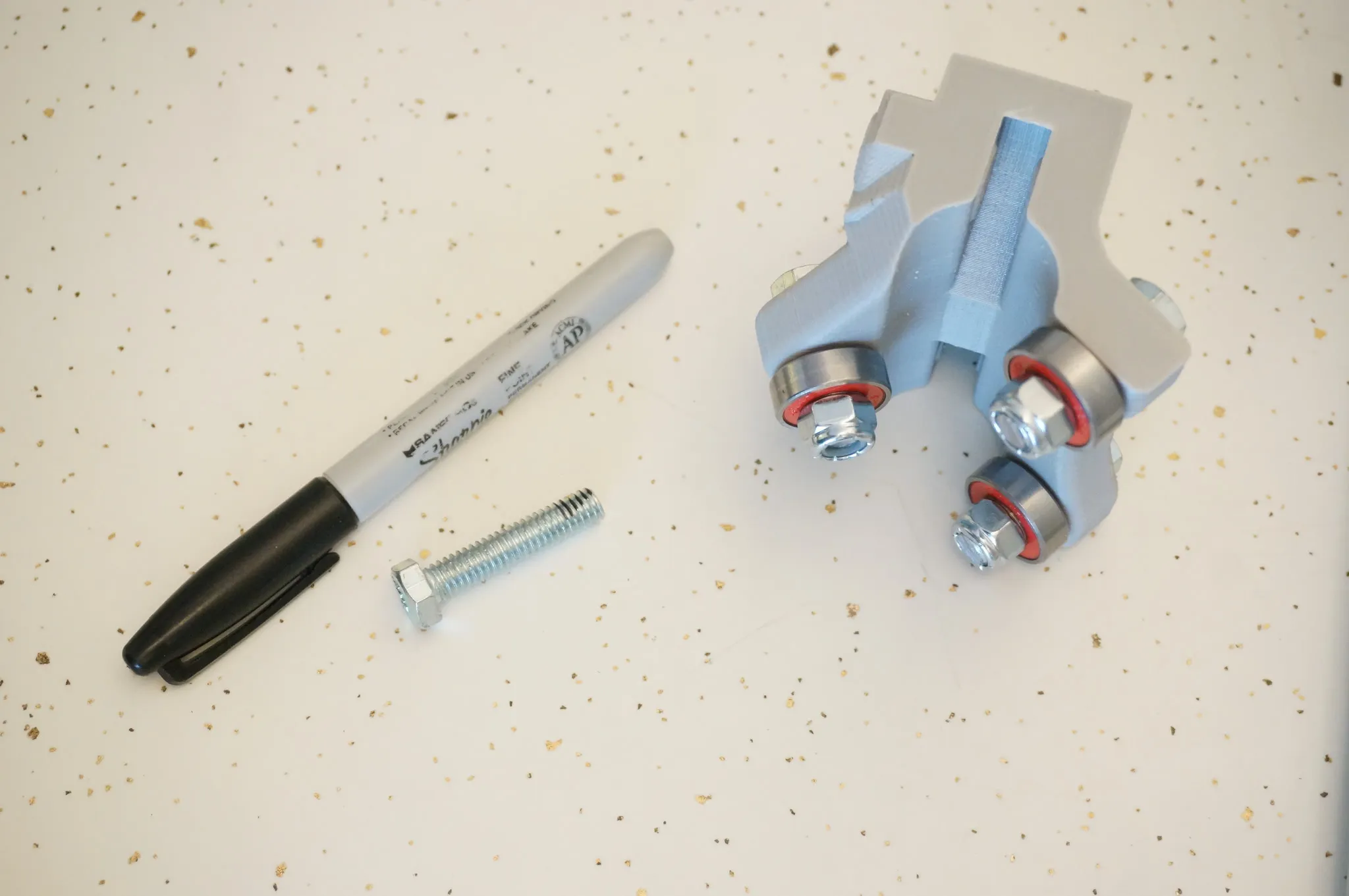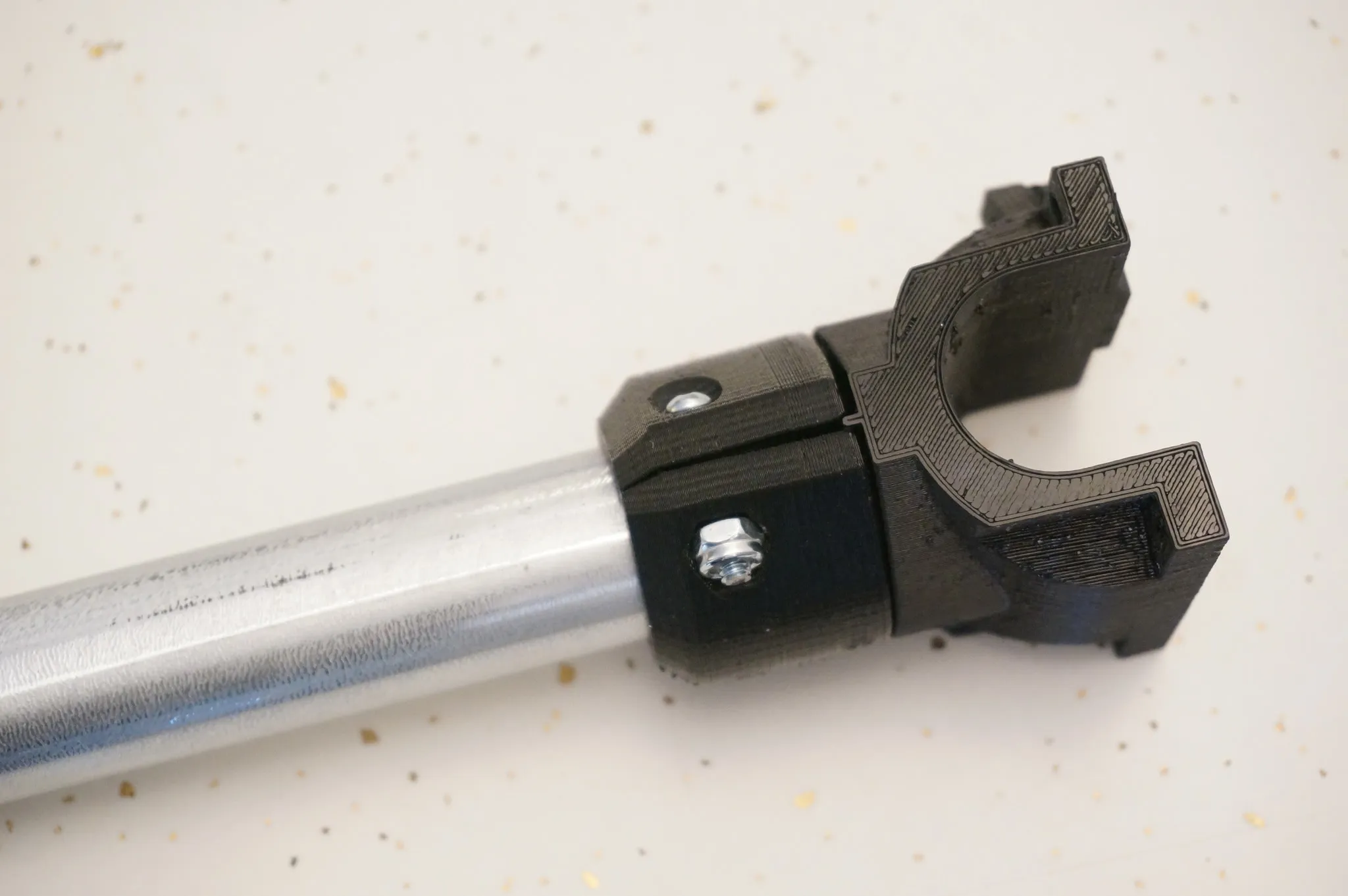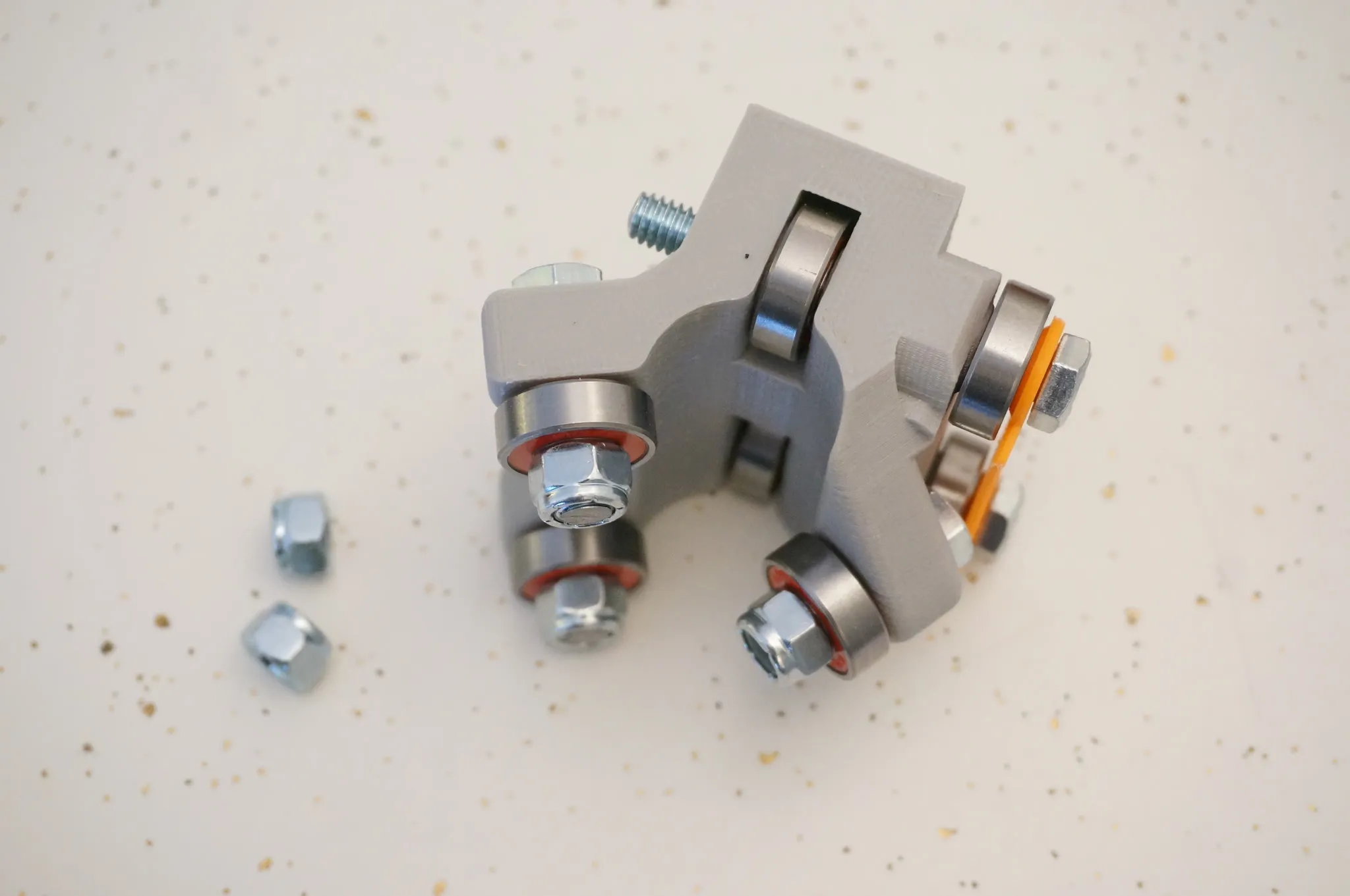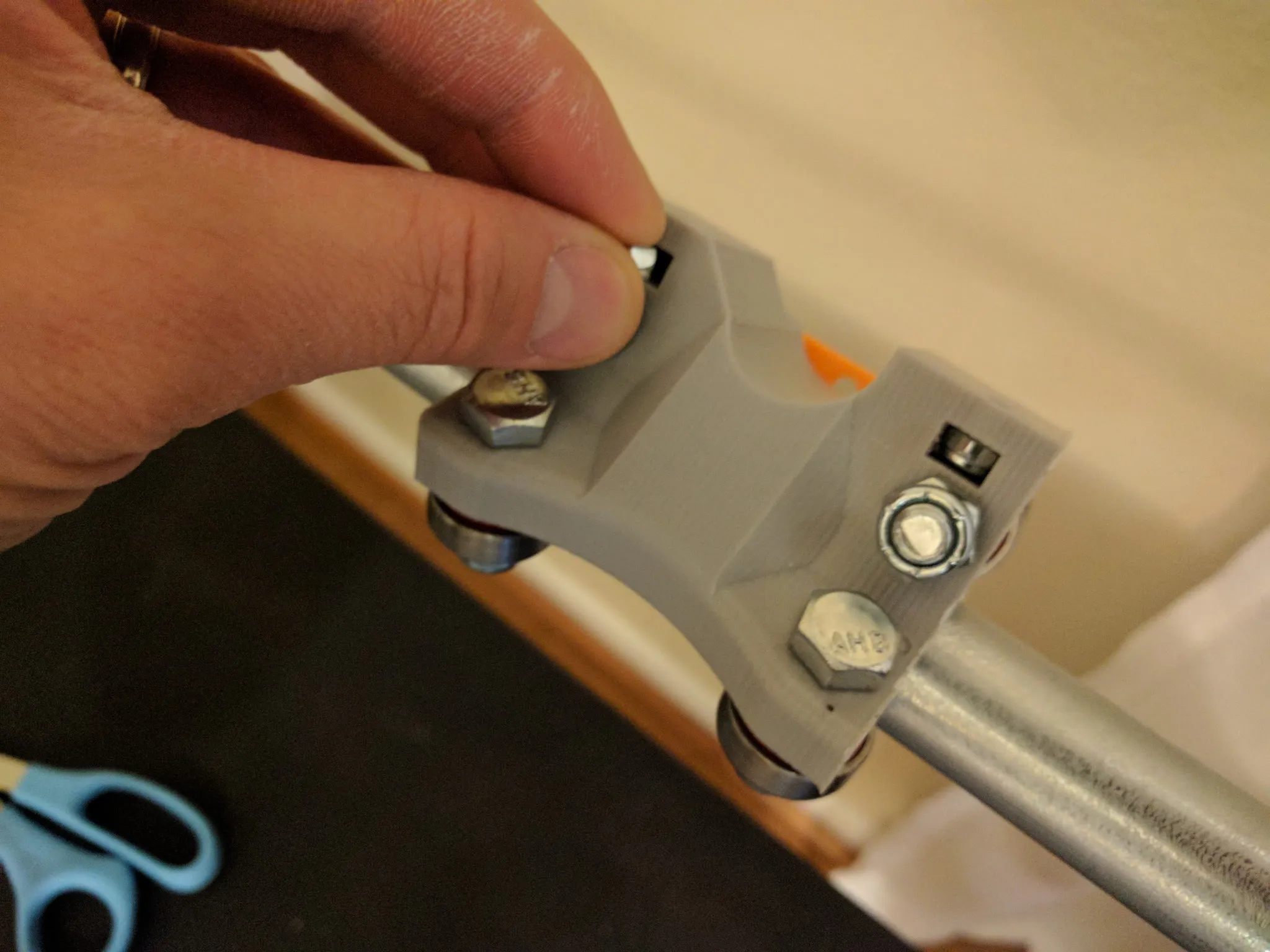 Now find the coupler nut, a small bolt and nut, and the 3D printed part. Install the coupler nut into the 3D printed part.