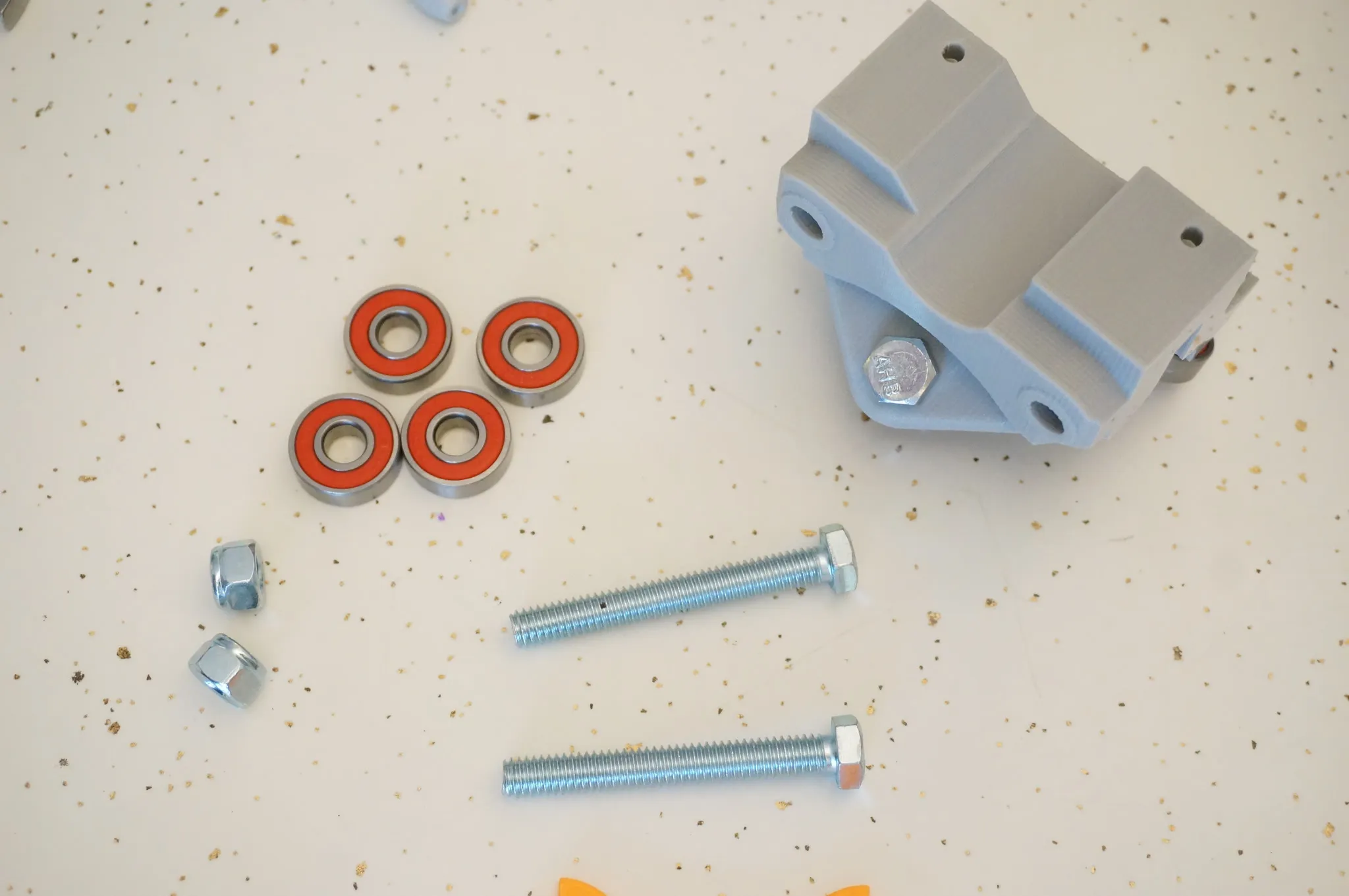 Find the longer bolts, lock nuts, and 4 more bearings.