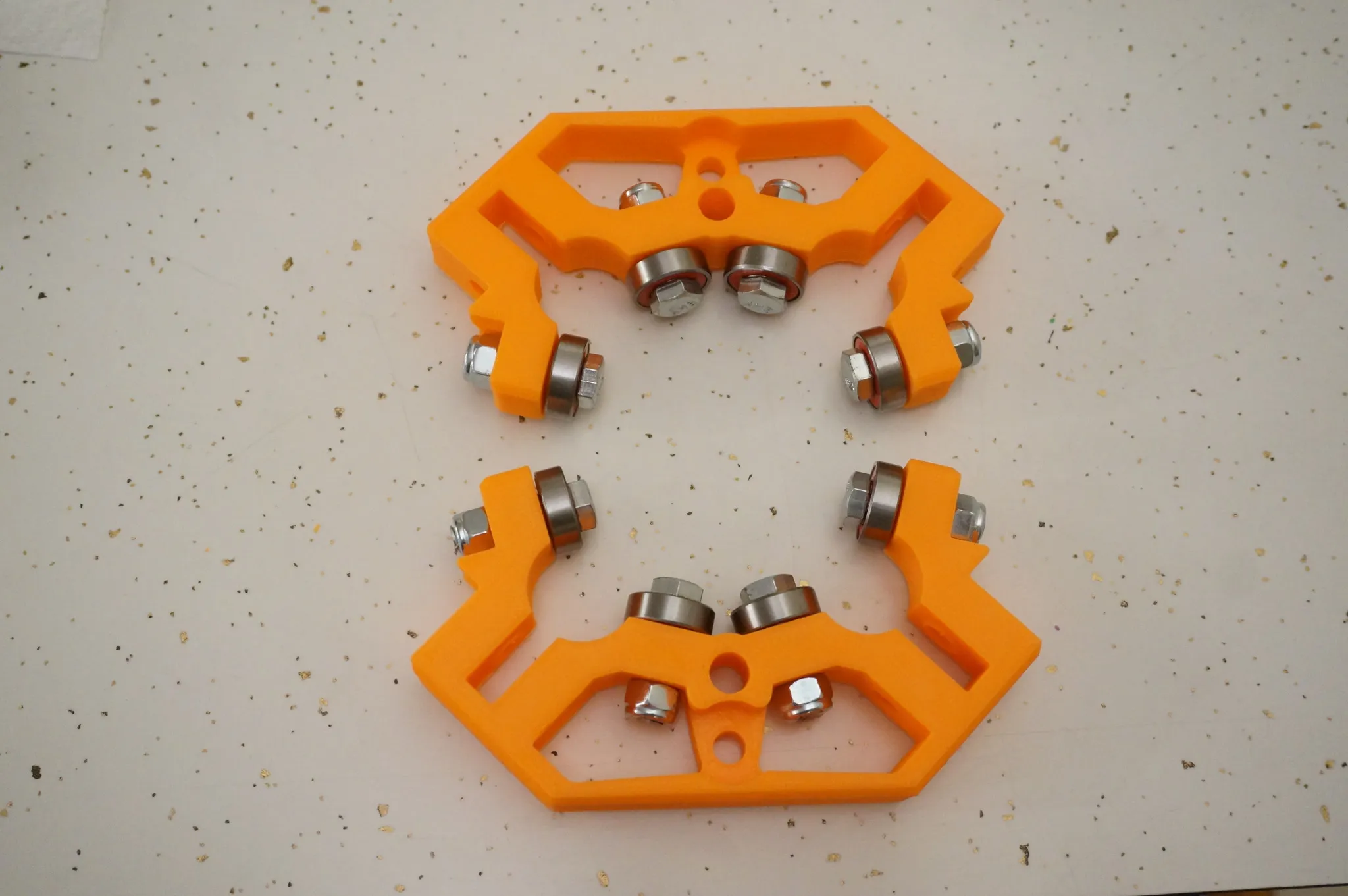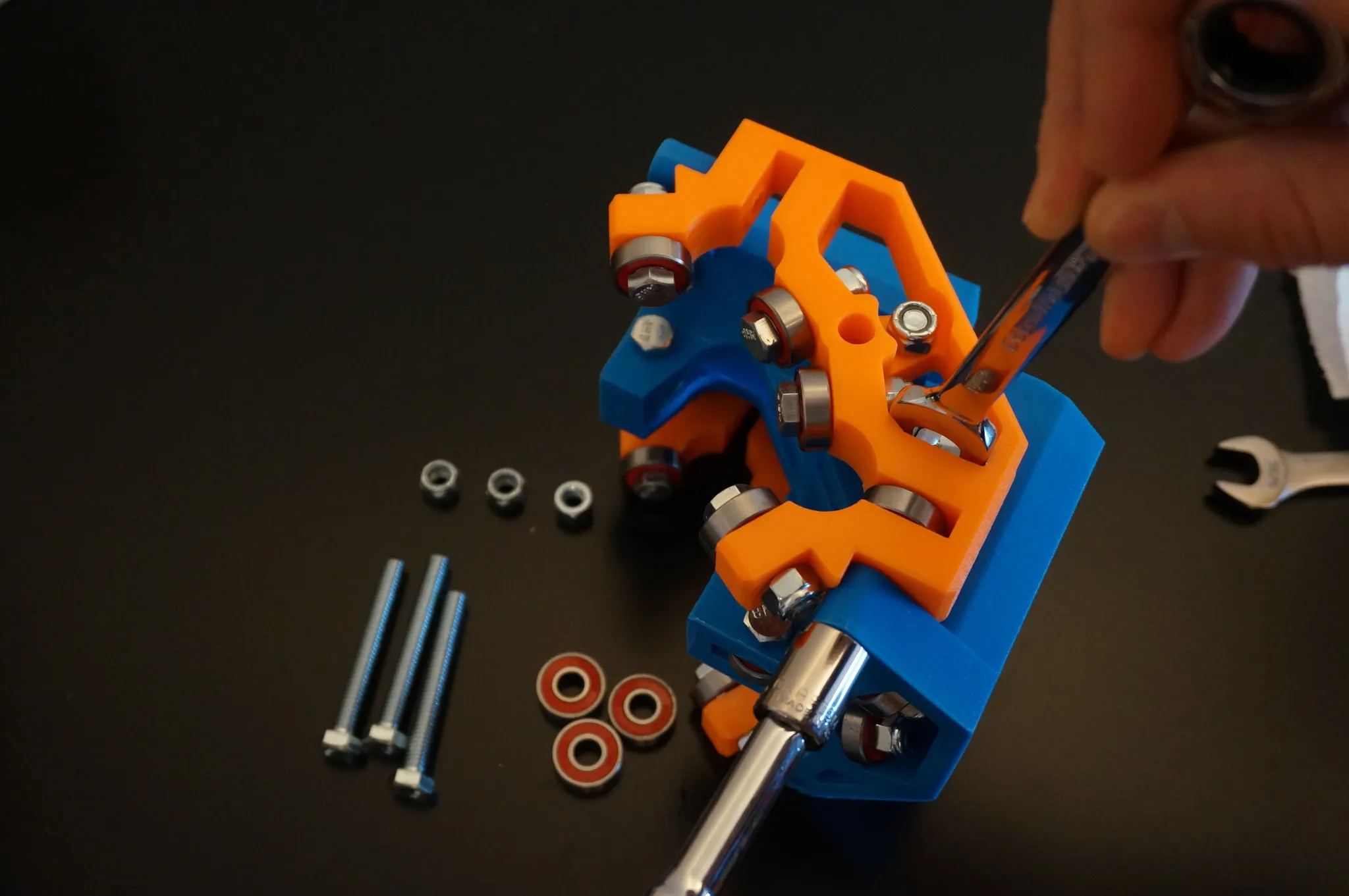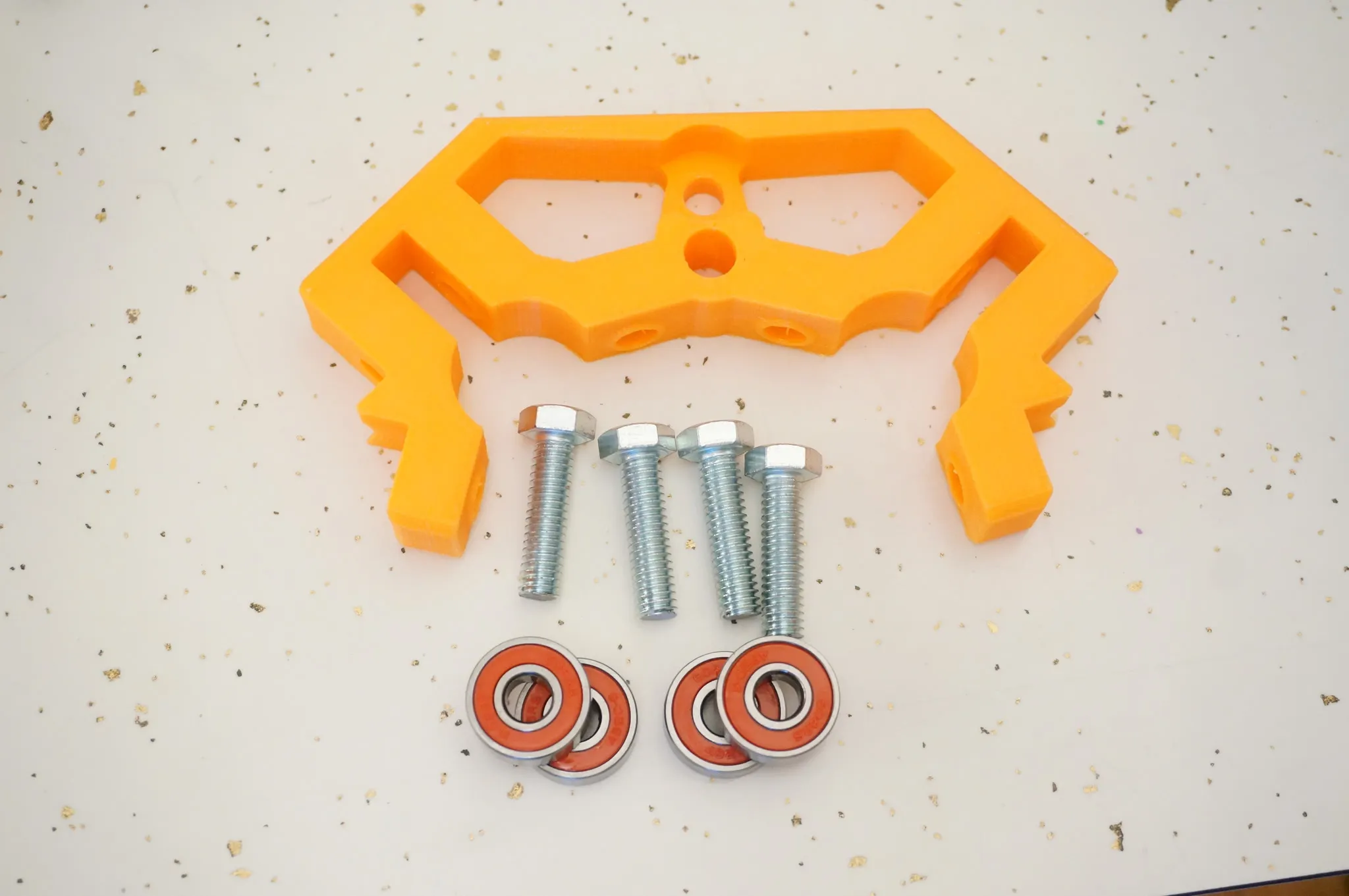 Now you’ll need one of the large center sections, bolts, nuts, bearings, and a couple of wrenches.