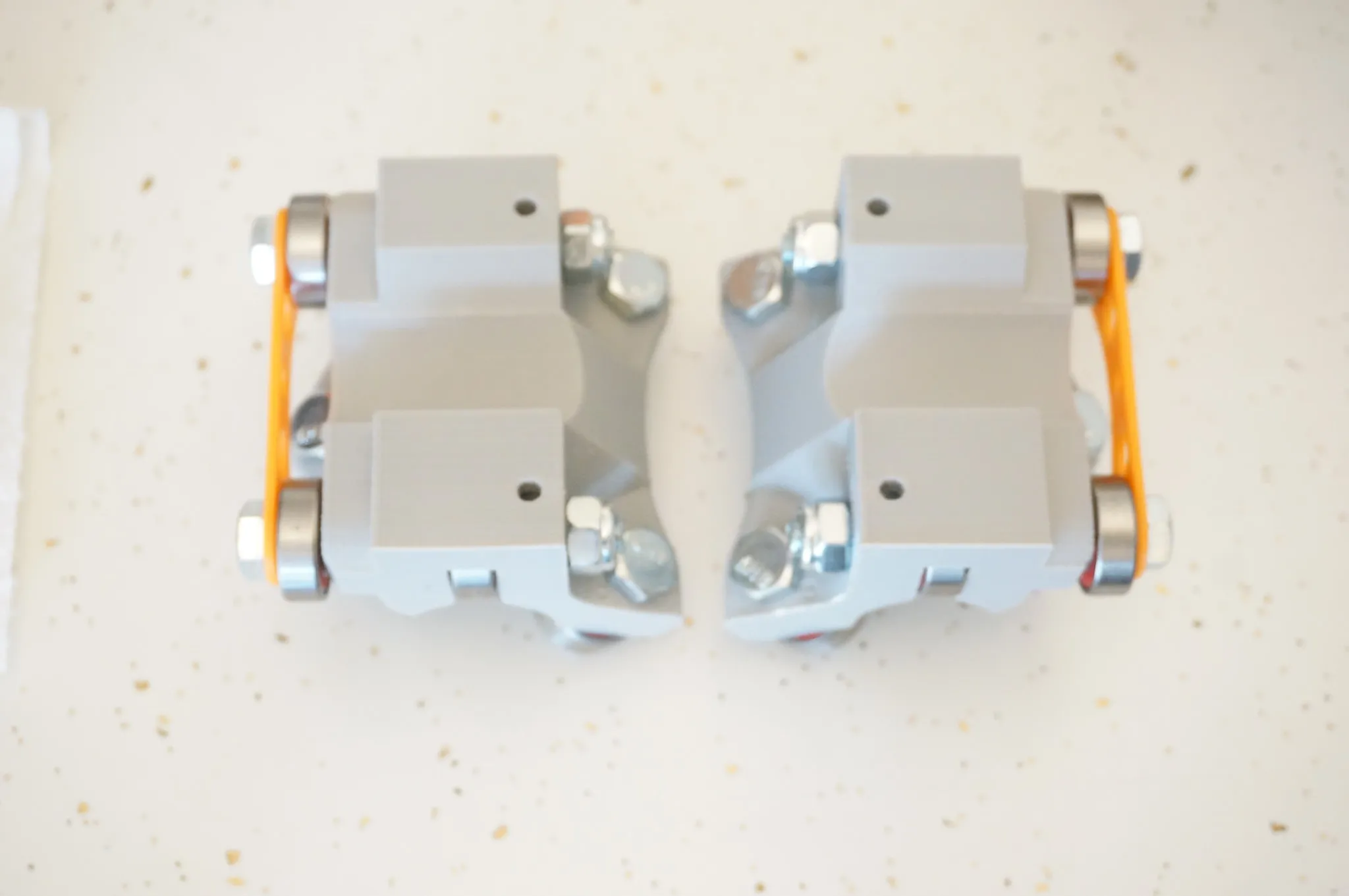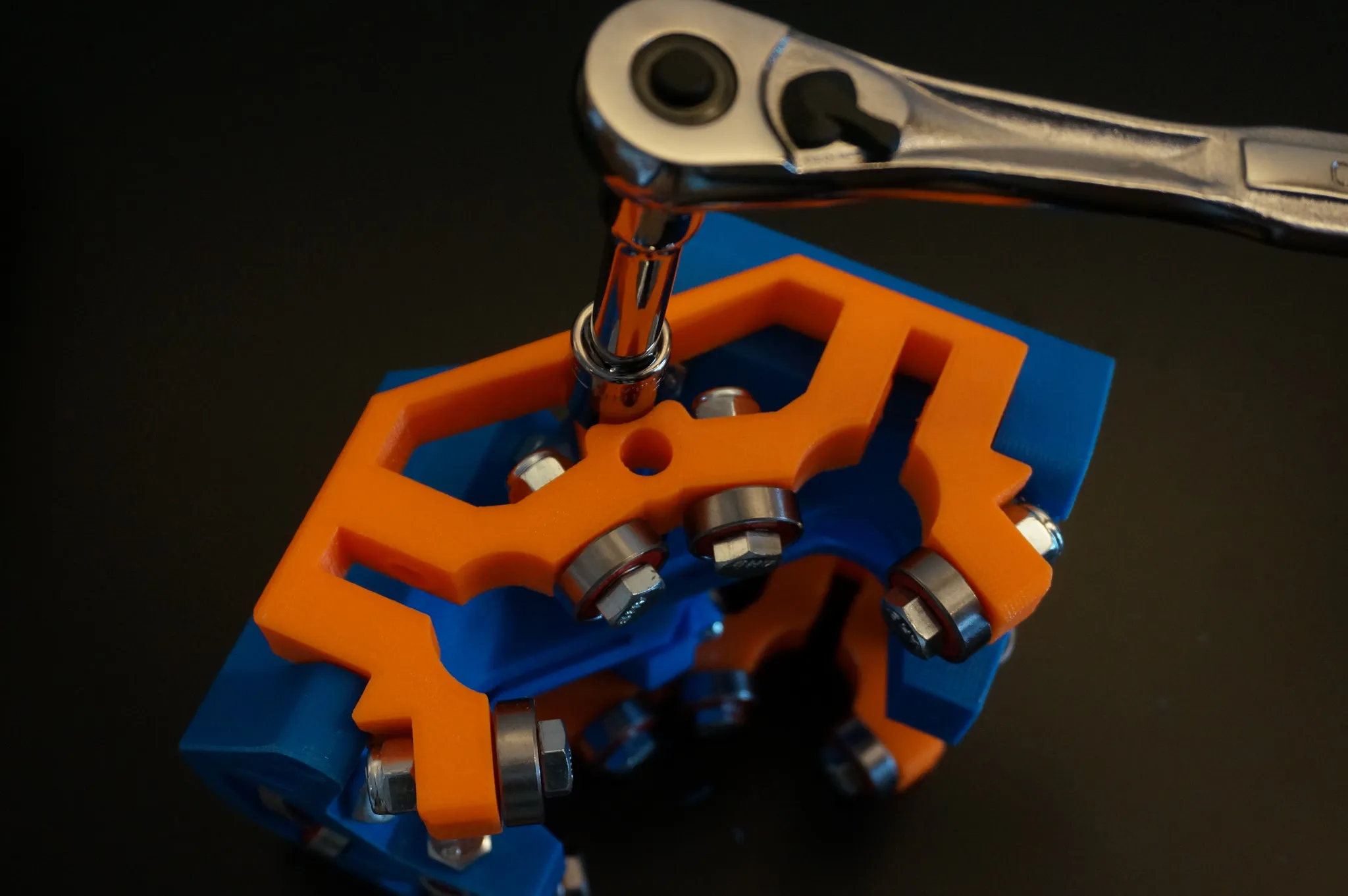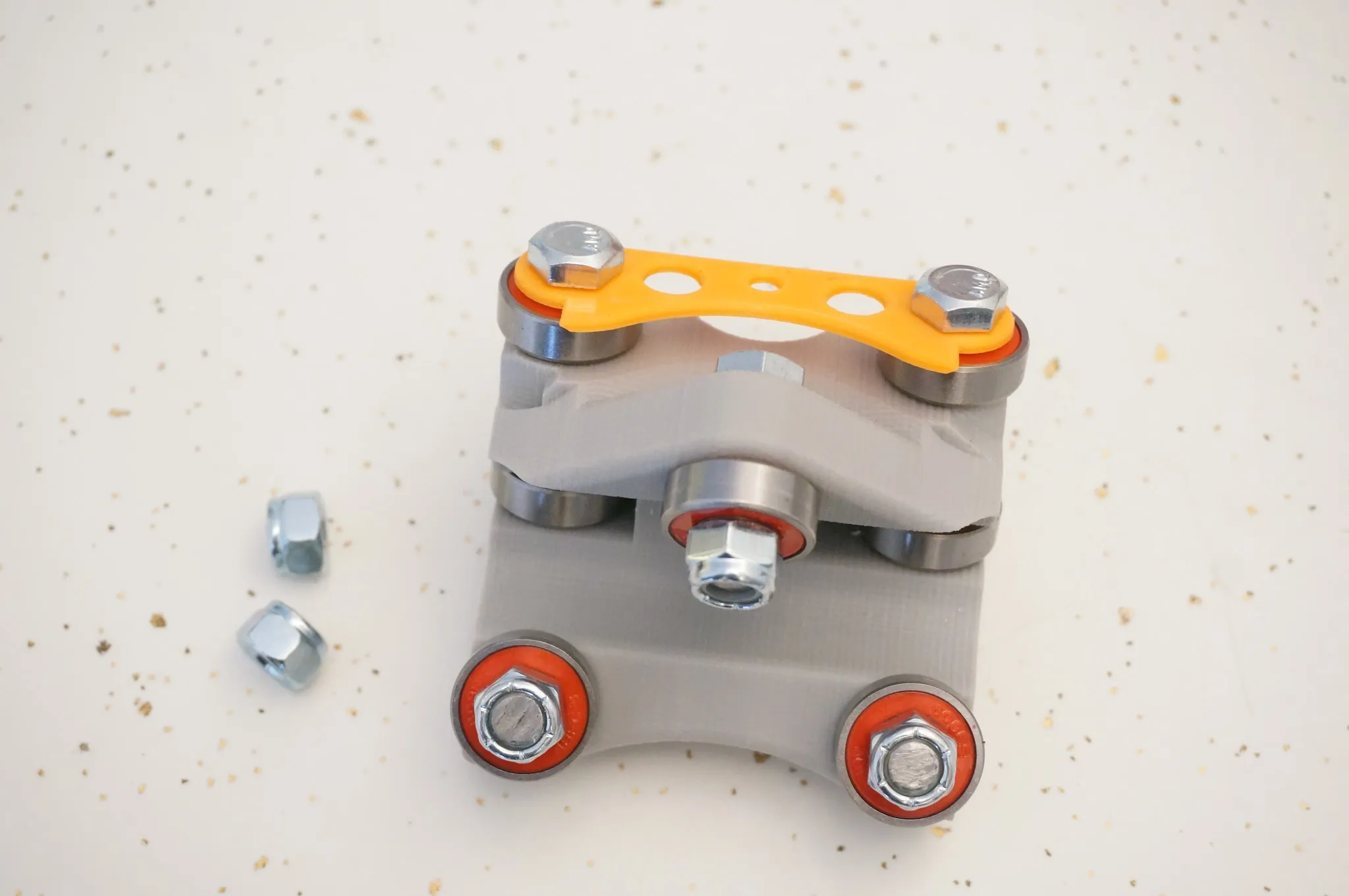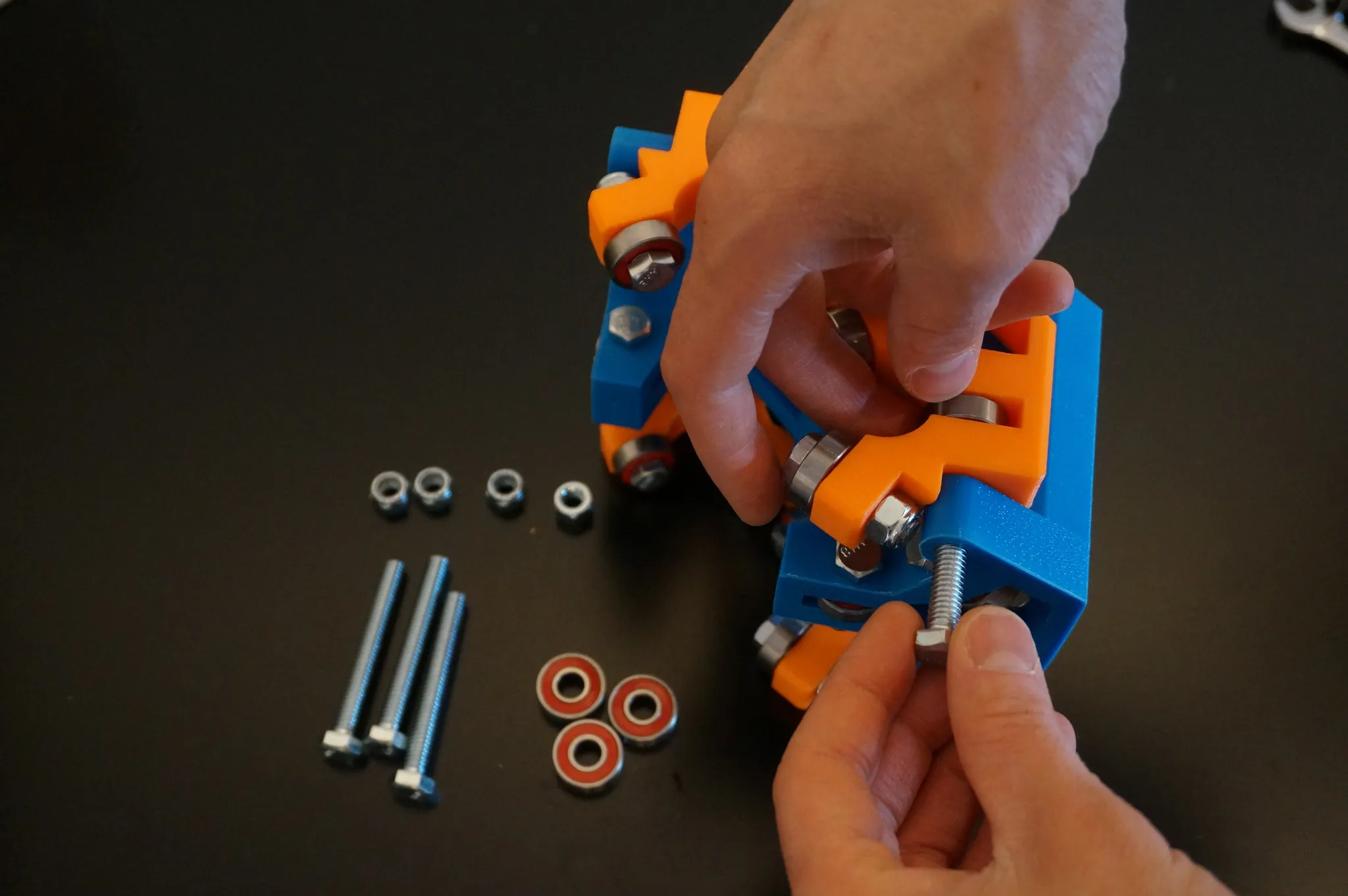 Now you’ll need one of the large center sections, bolts, nuts, bearings, and a couple of wrenches.