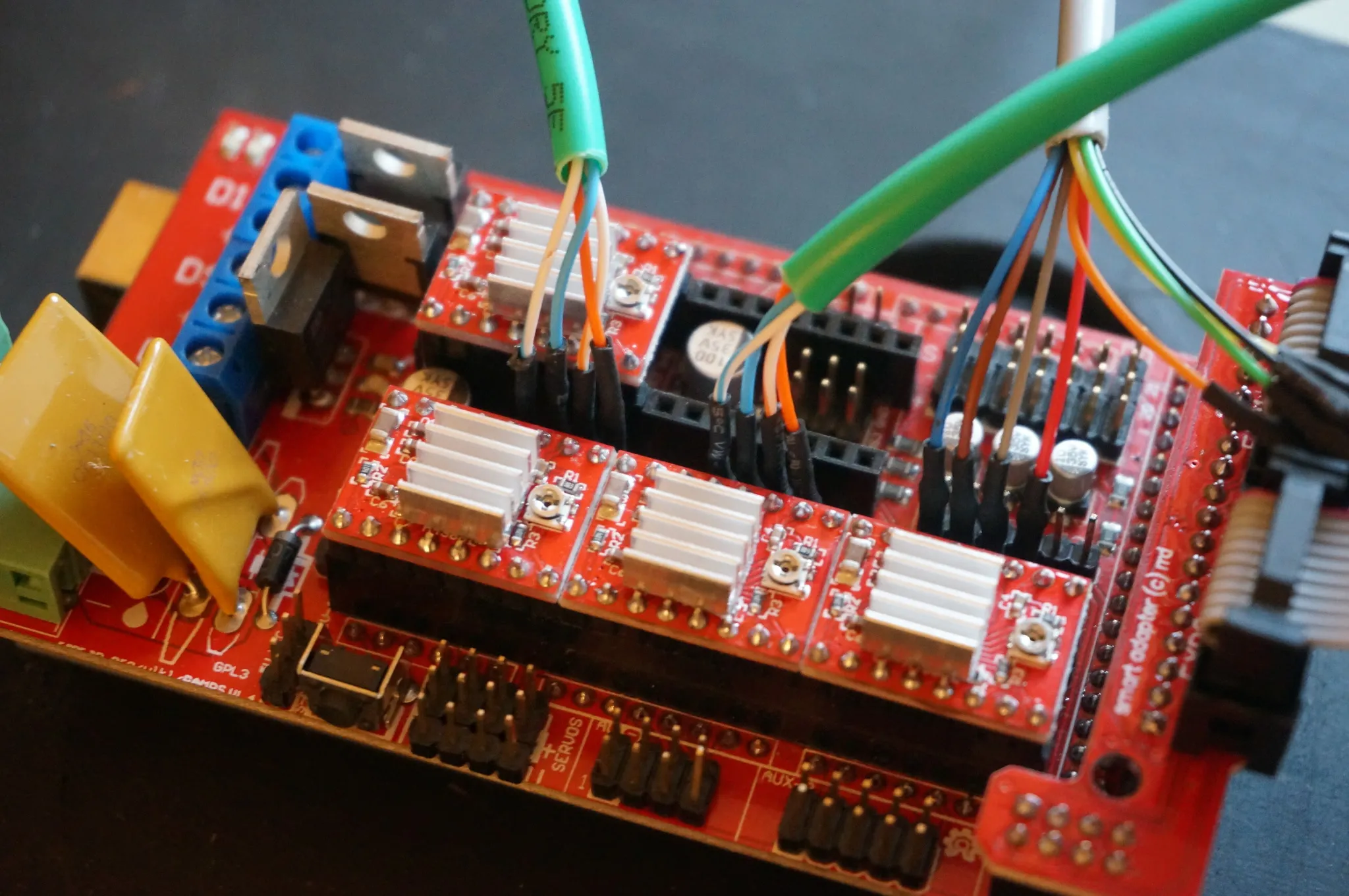 Be sure to read the pinouts for the motor driver you’re using and match them to the pinout on the RAMPS and install them.