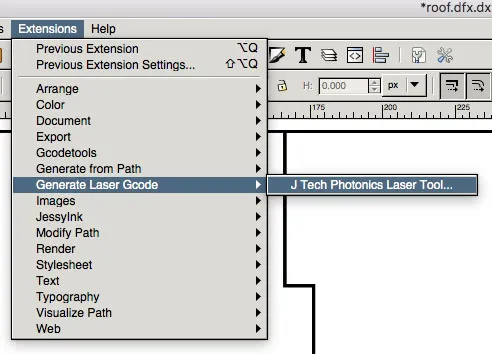 Under Extensions choose Generate Laser GCode and J Tech Photonics Laser Tool.
