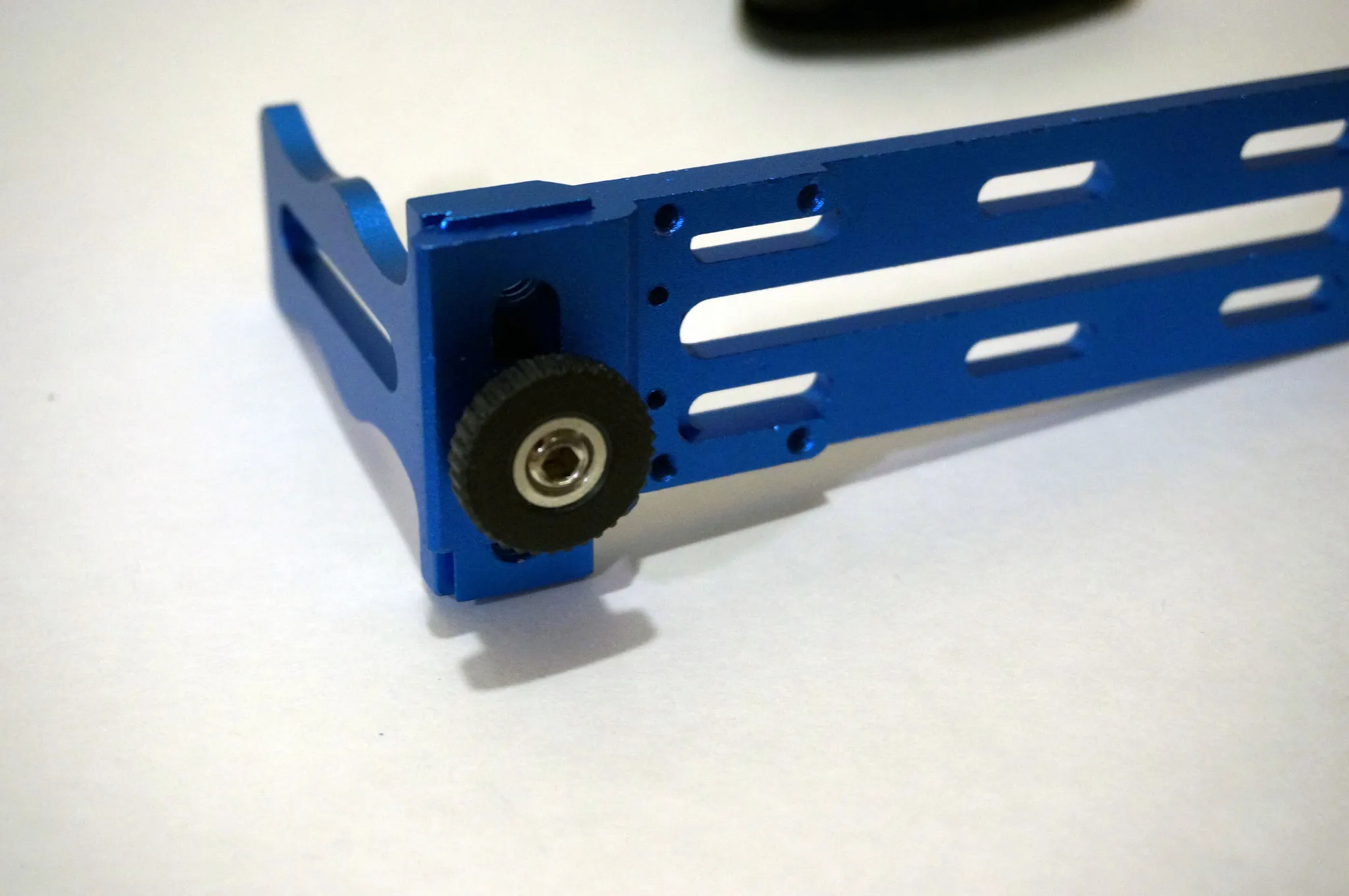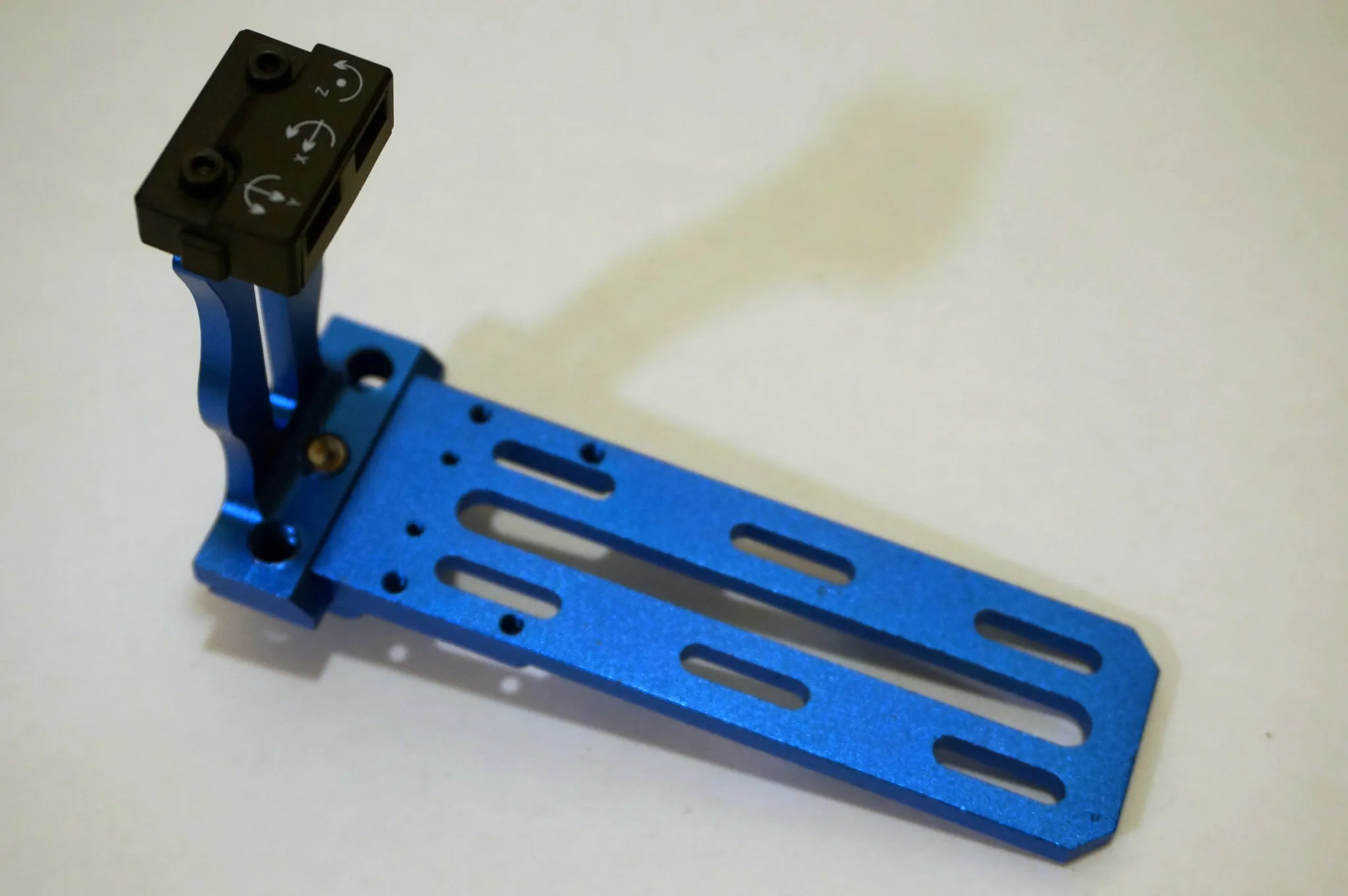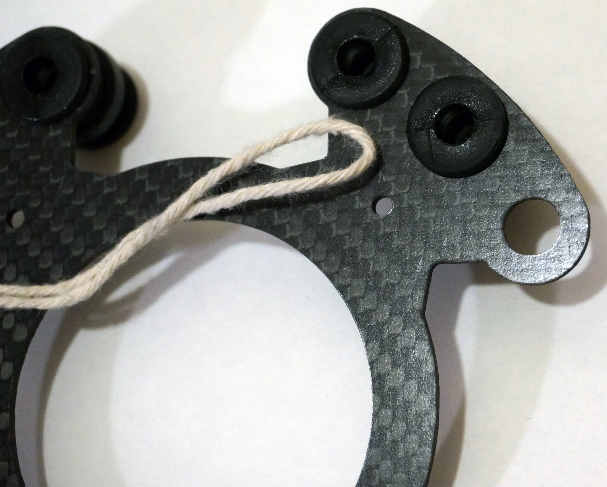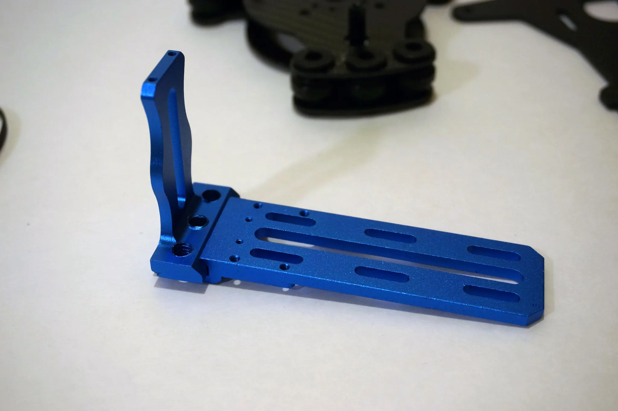 Start from the top and work down, beginning with the carbon fiber mounting plates.