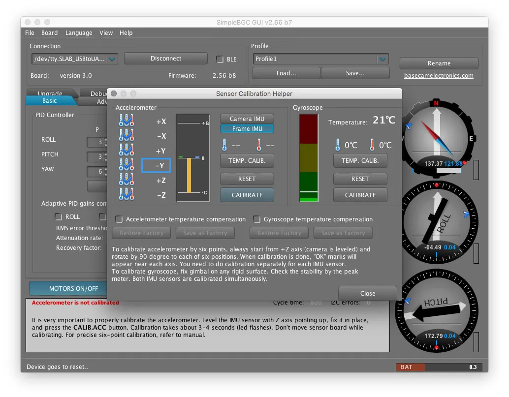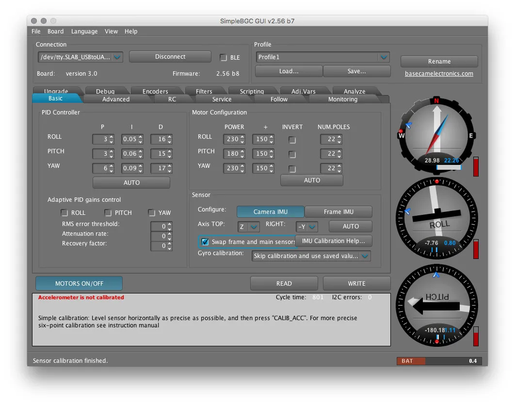 In SimpleBGC GUI, you’ll notice these gauges on the right: