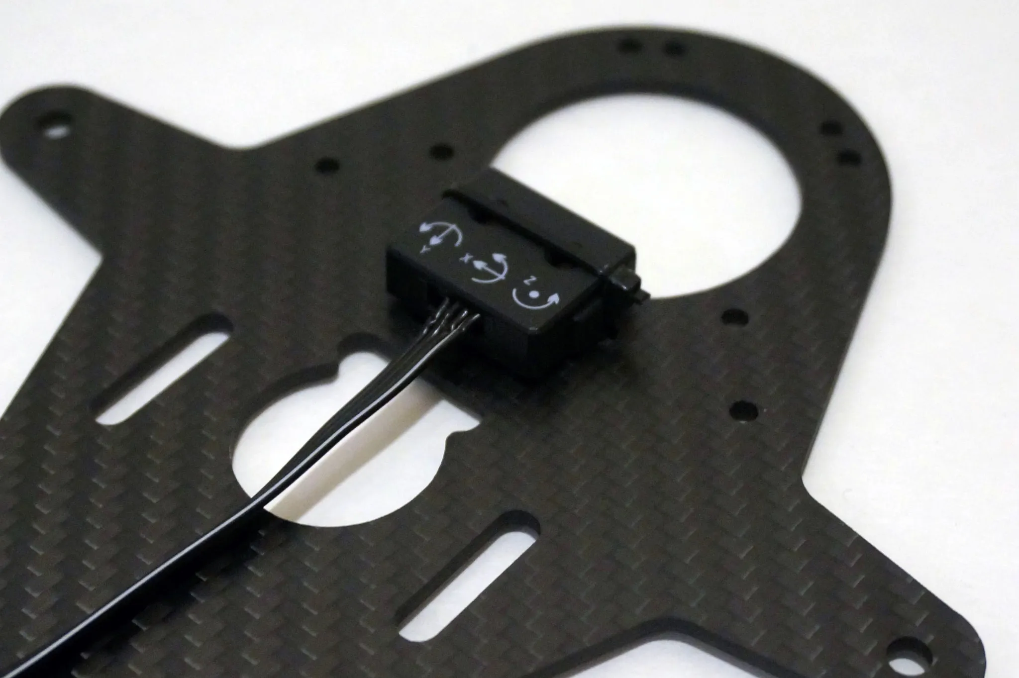 I installed the single-wire sensor on the carbon fiber under body of the Q600 using a piece of double sided tape and a zip tie.