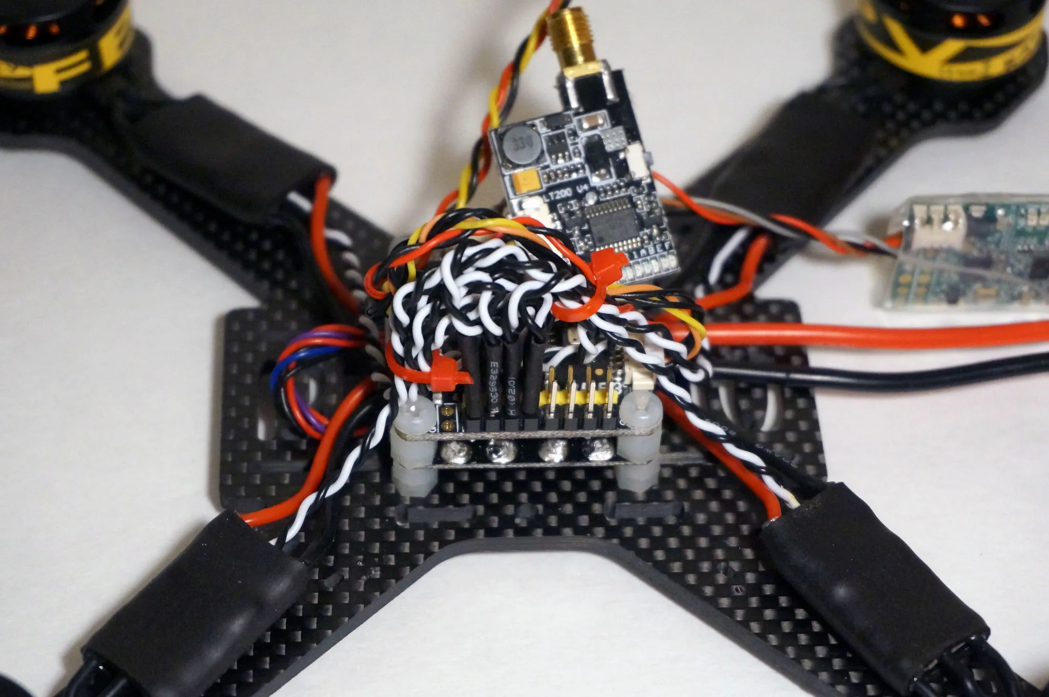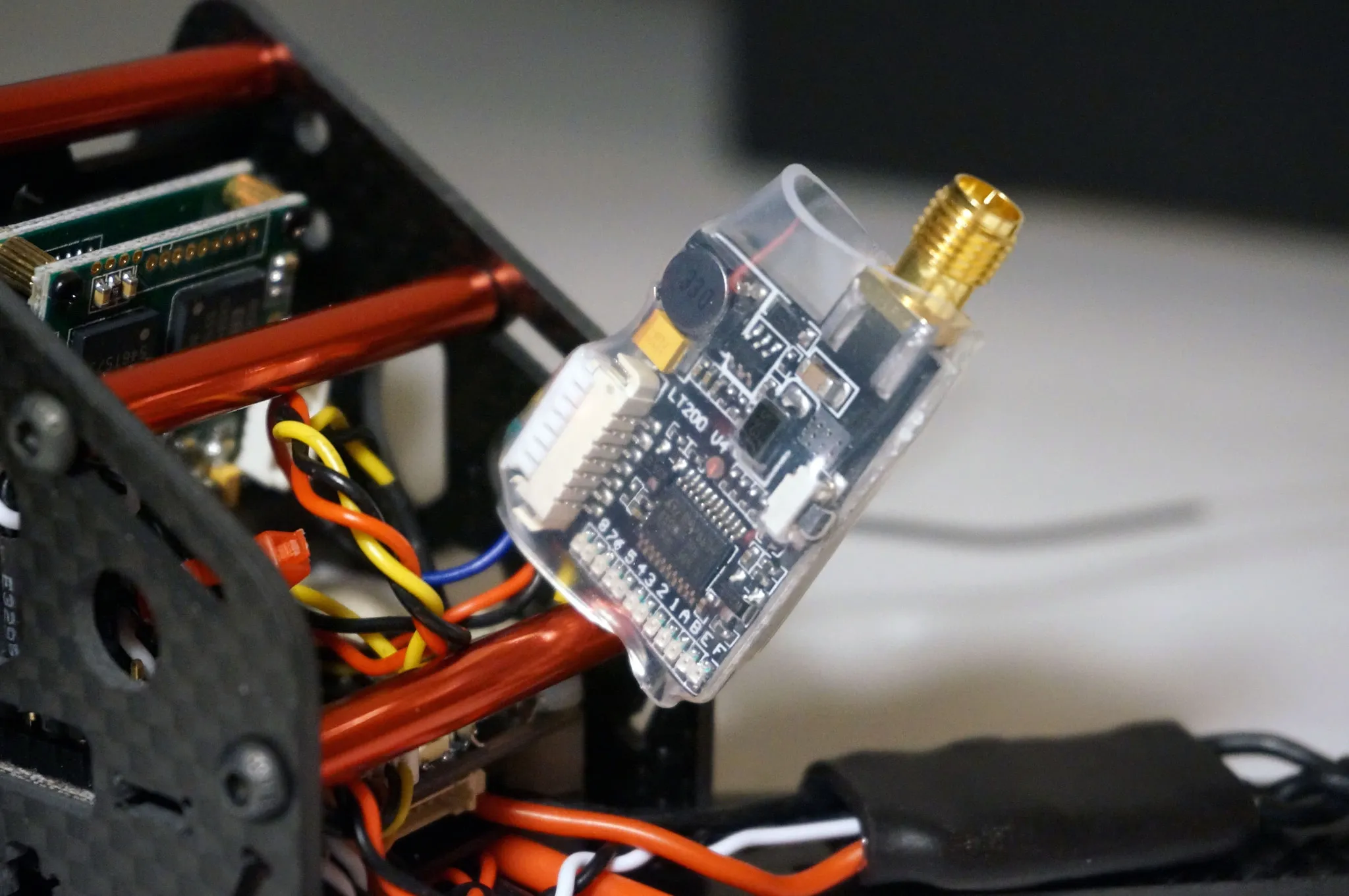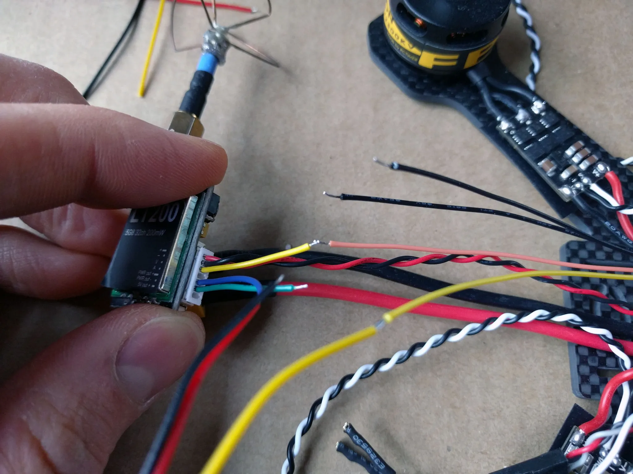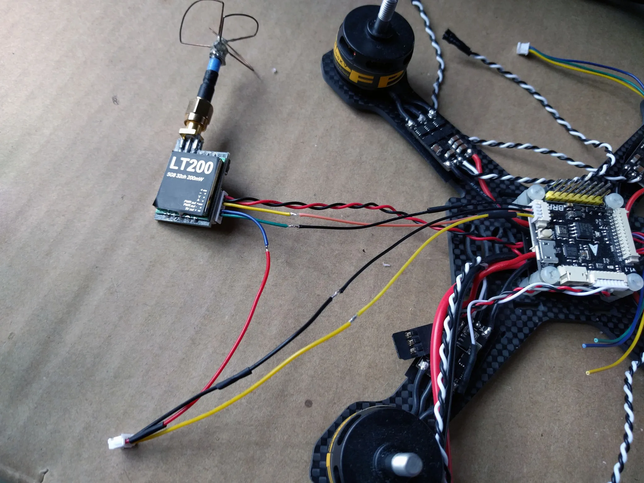Cut the video transmitter power leads down. I cut them to 130mm.