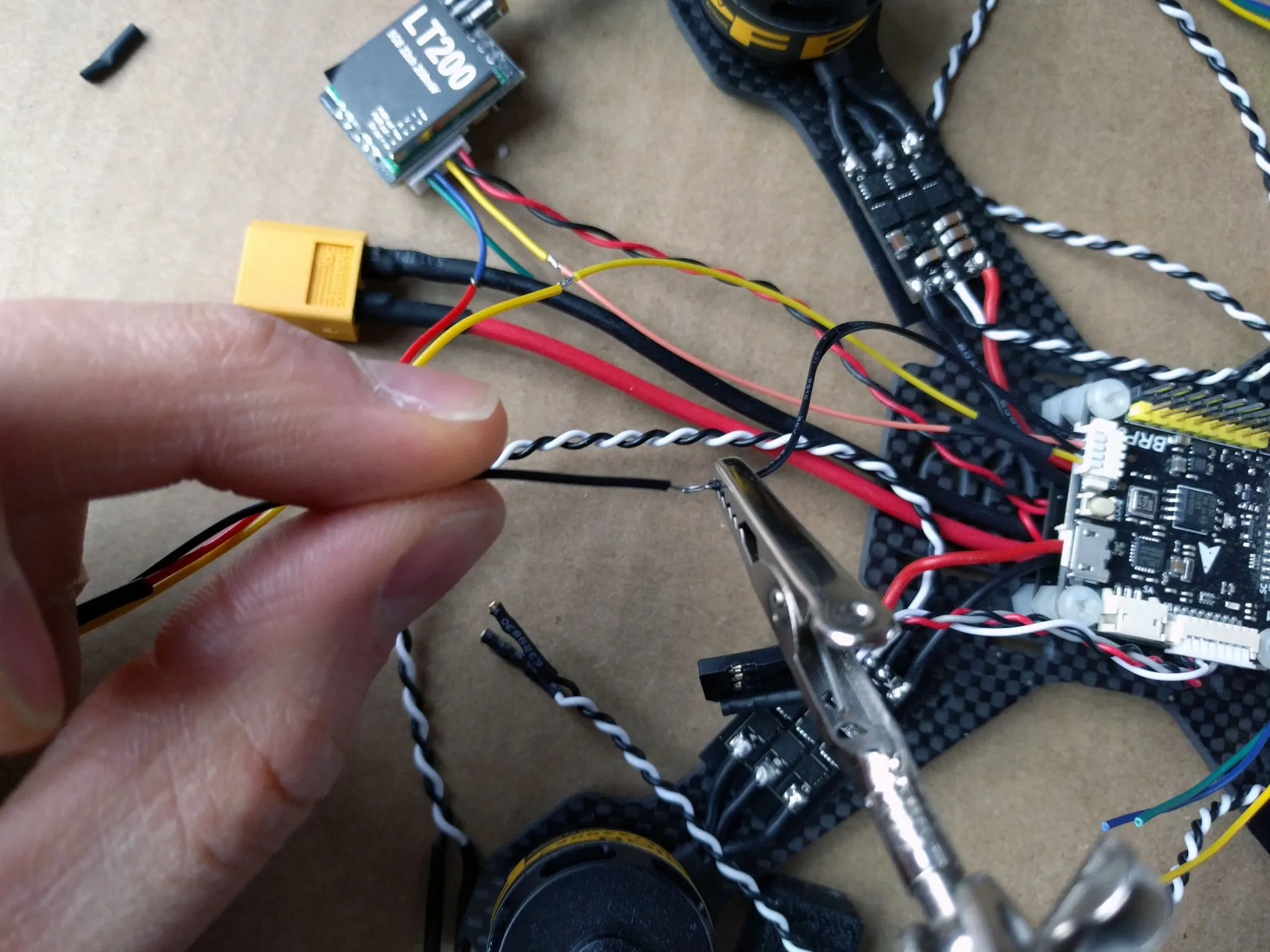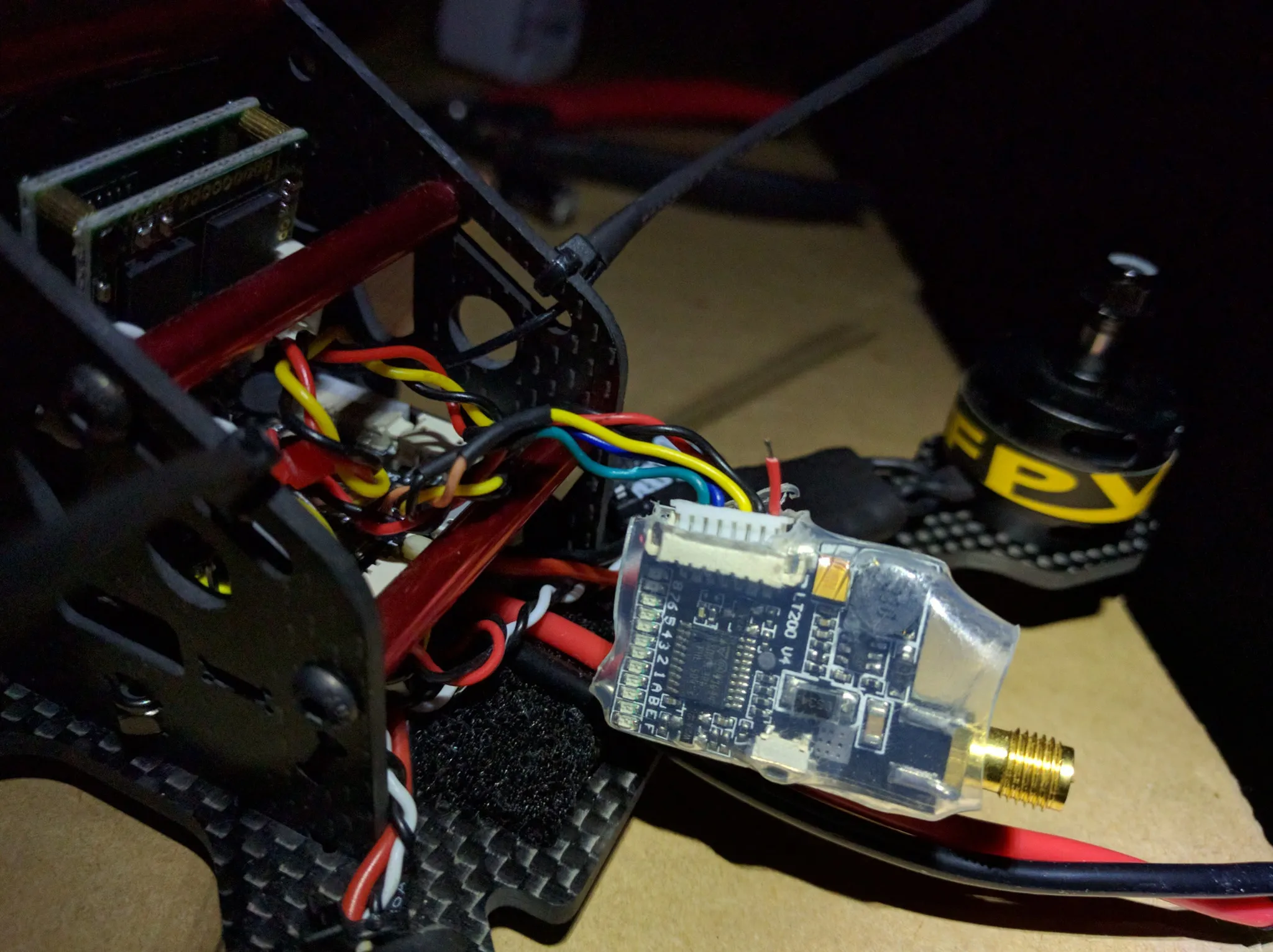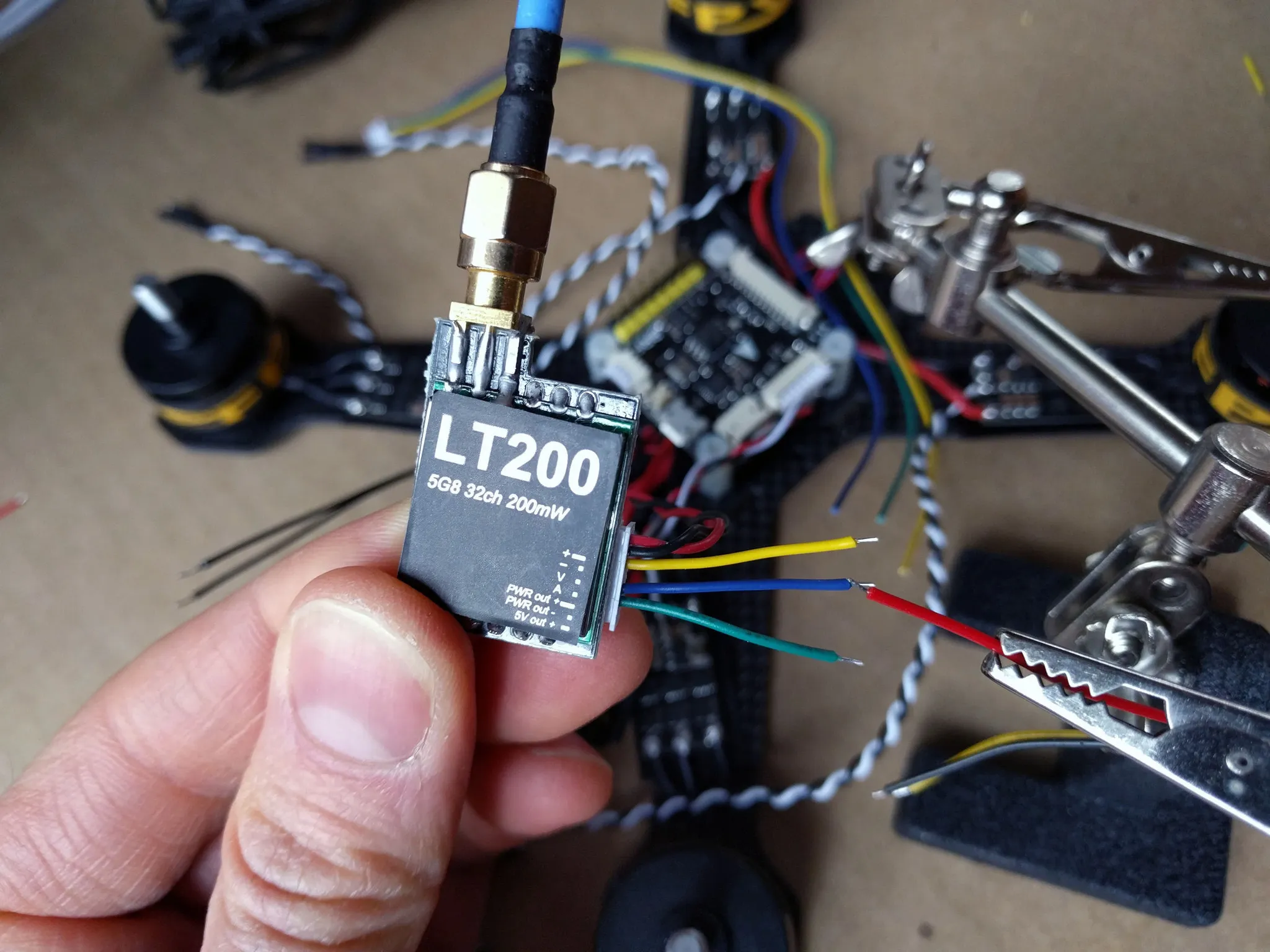 Cut the video transmitter power leads down. I cut them to 130mm.