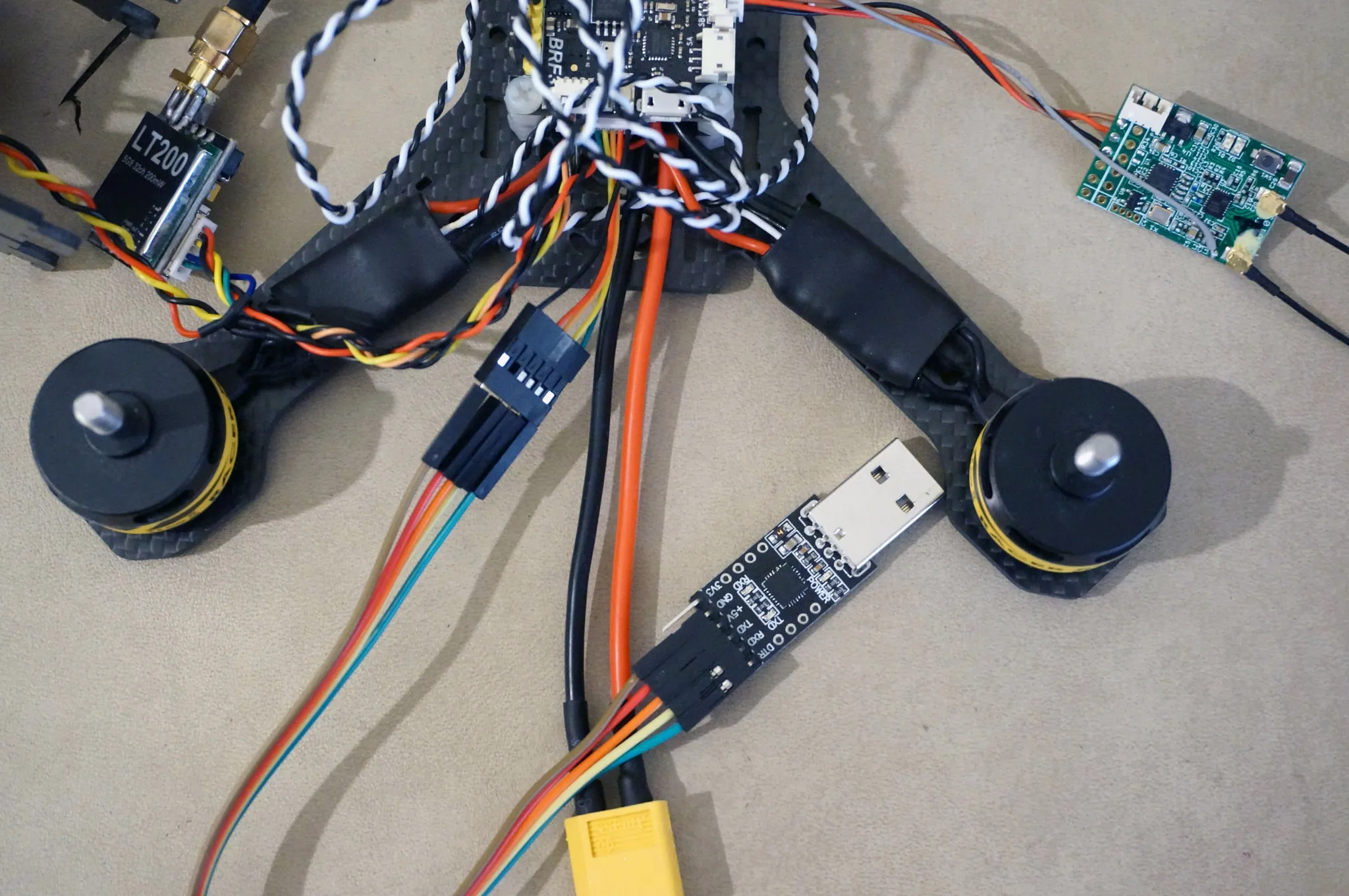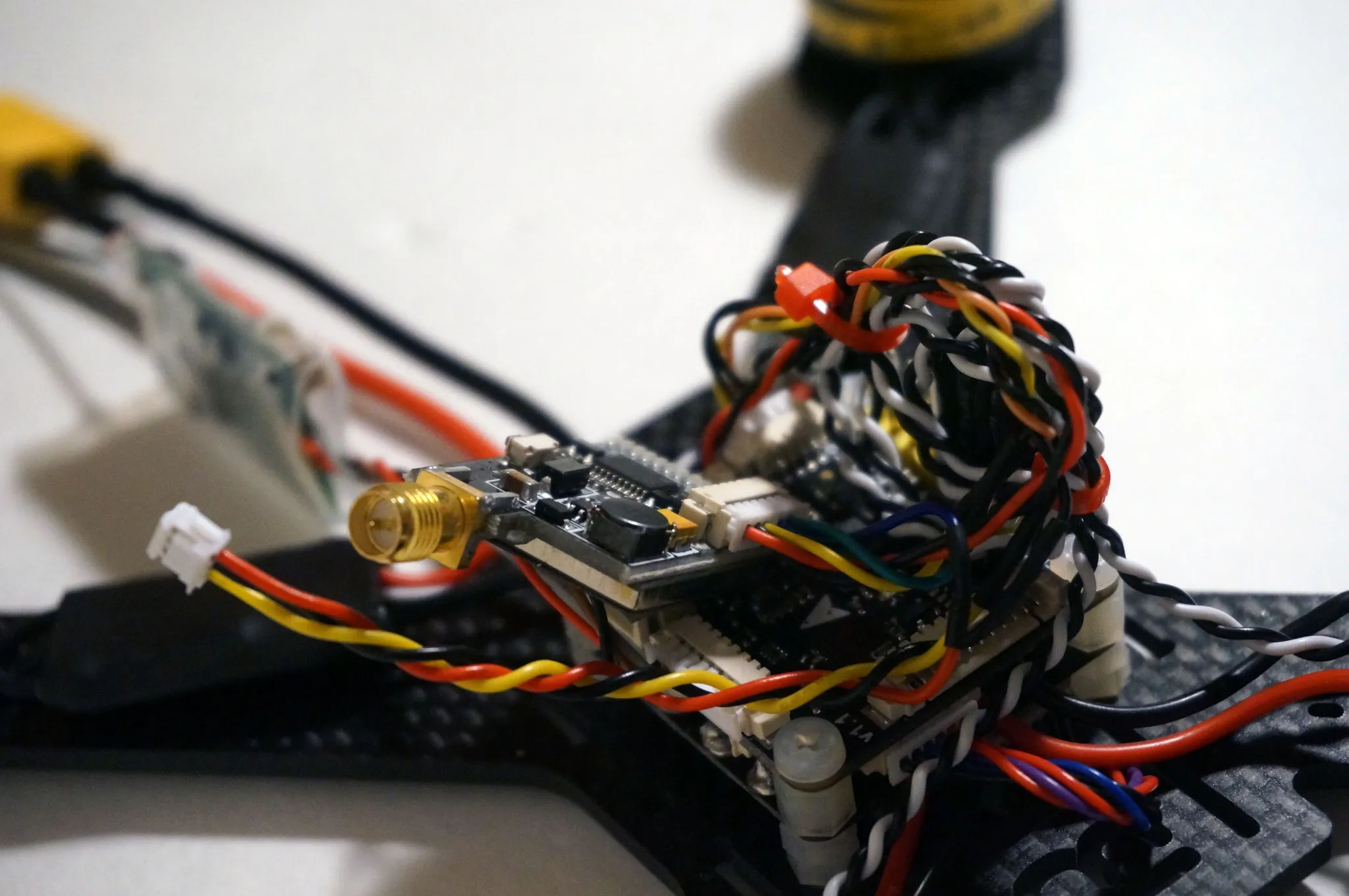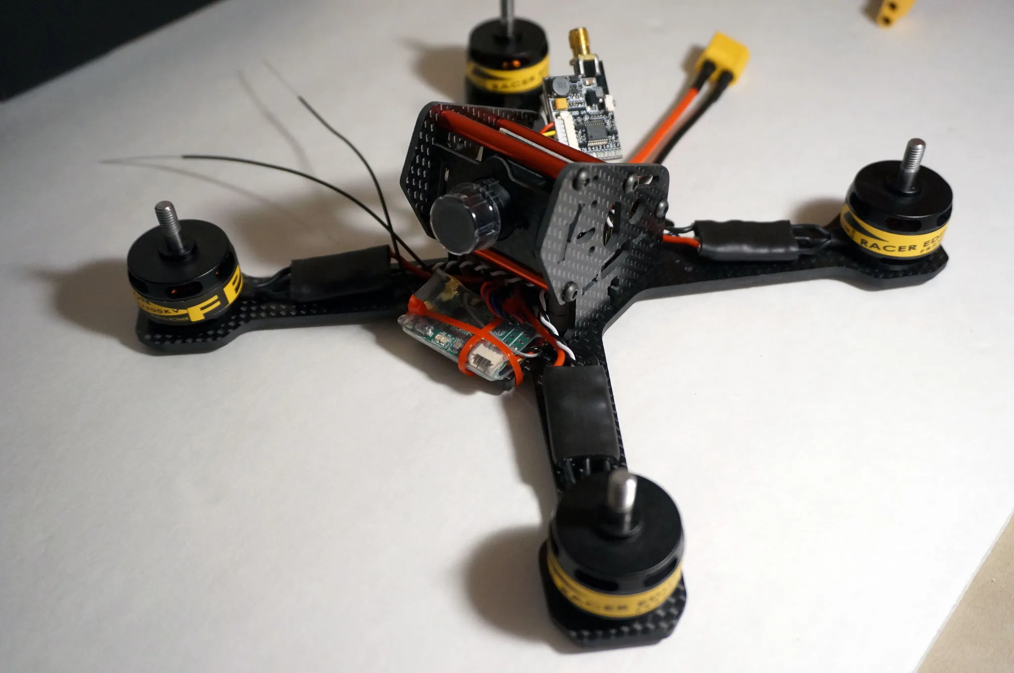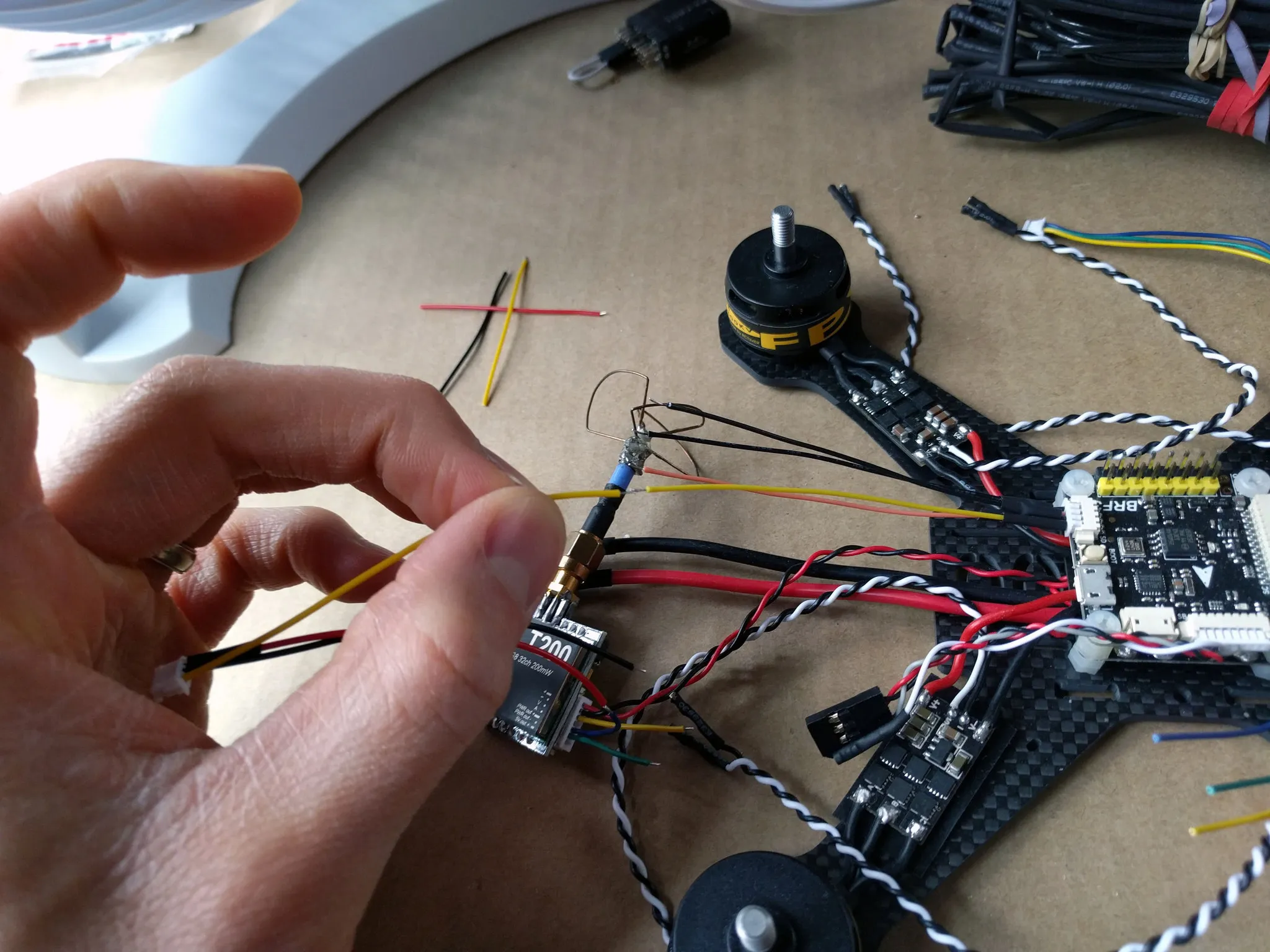 Cut the video transmitter power leads down. I cut them to 130mm.