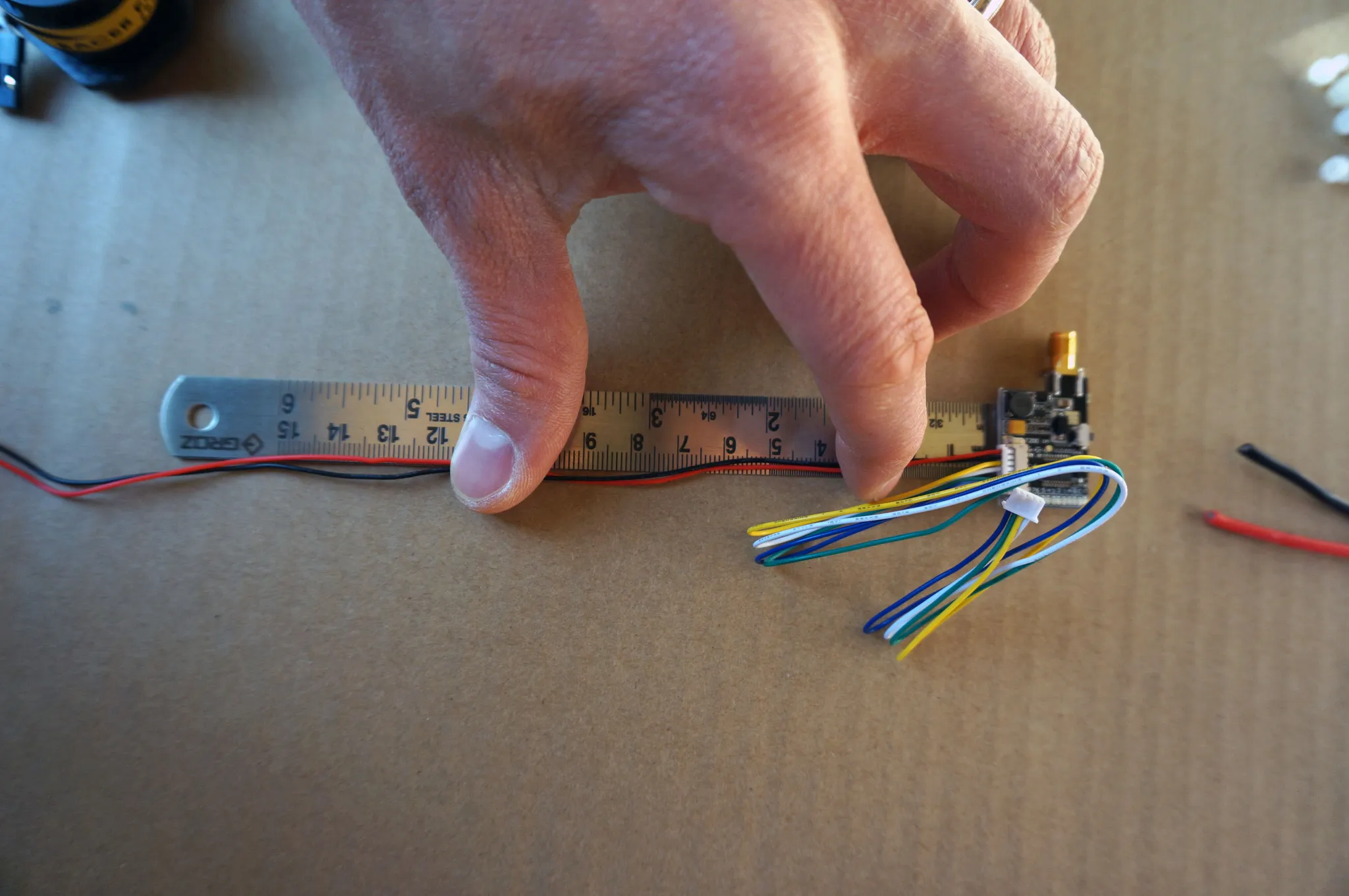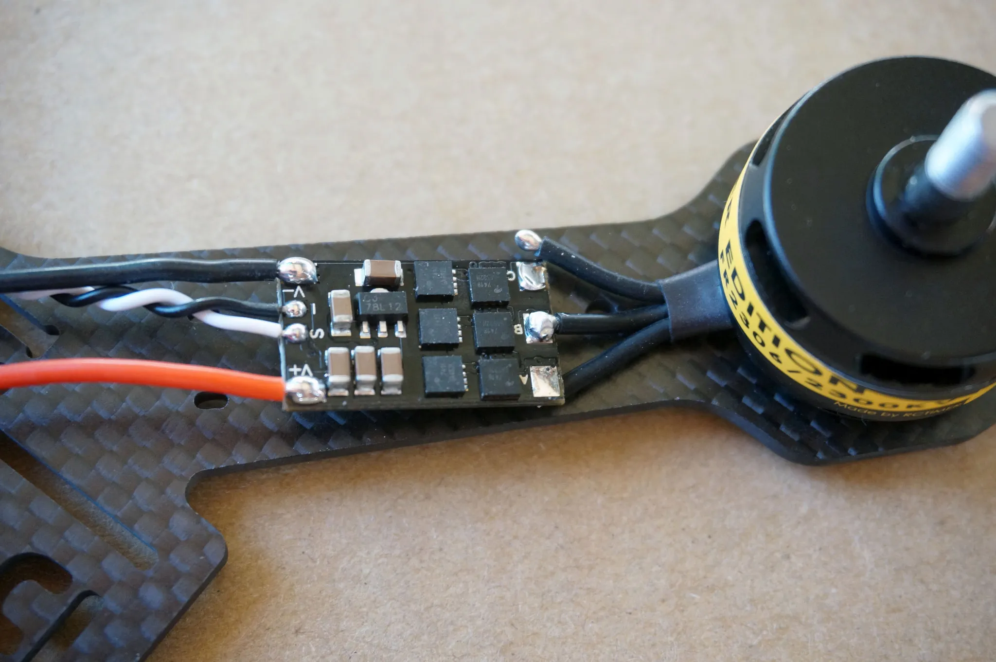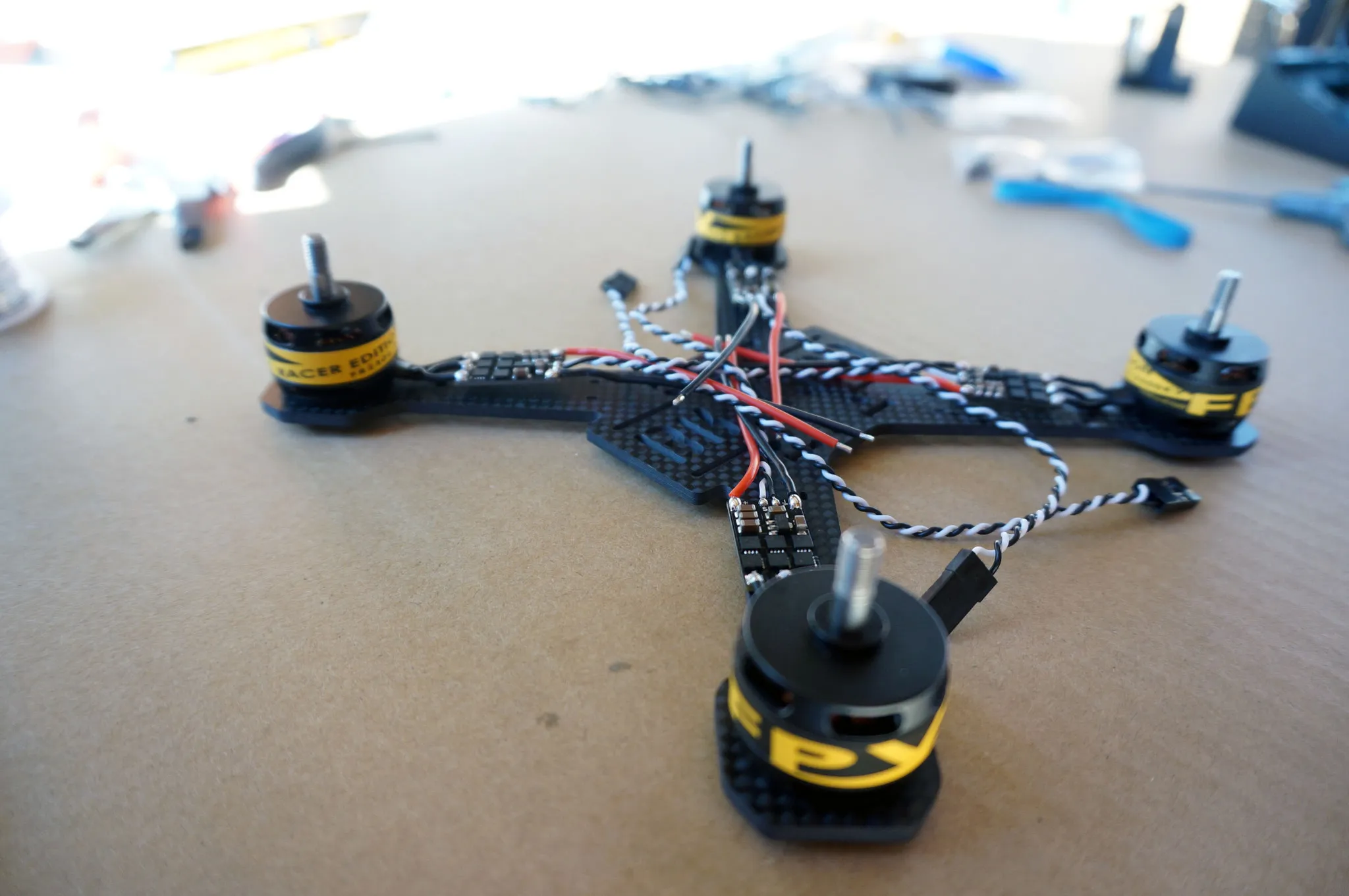Now remove the body and solder the motors to the ESCs. First, trim the motor wires. I trimmed them to 20mm.