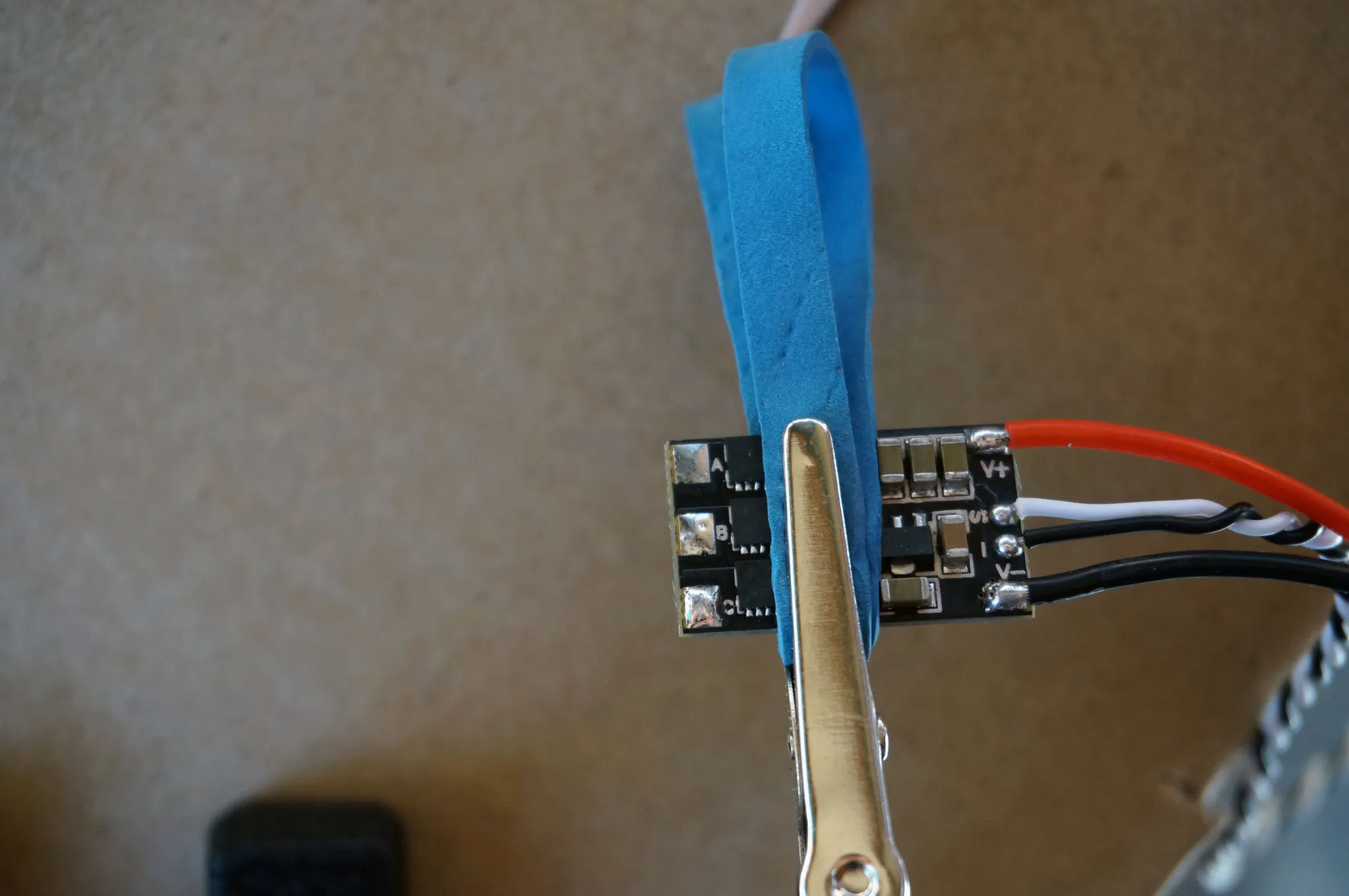 Finally, shrink your heatshrink tube and twist up the leads to minimize interference.