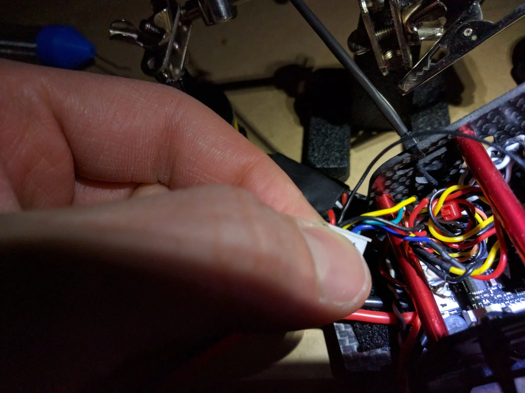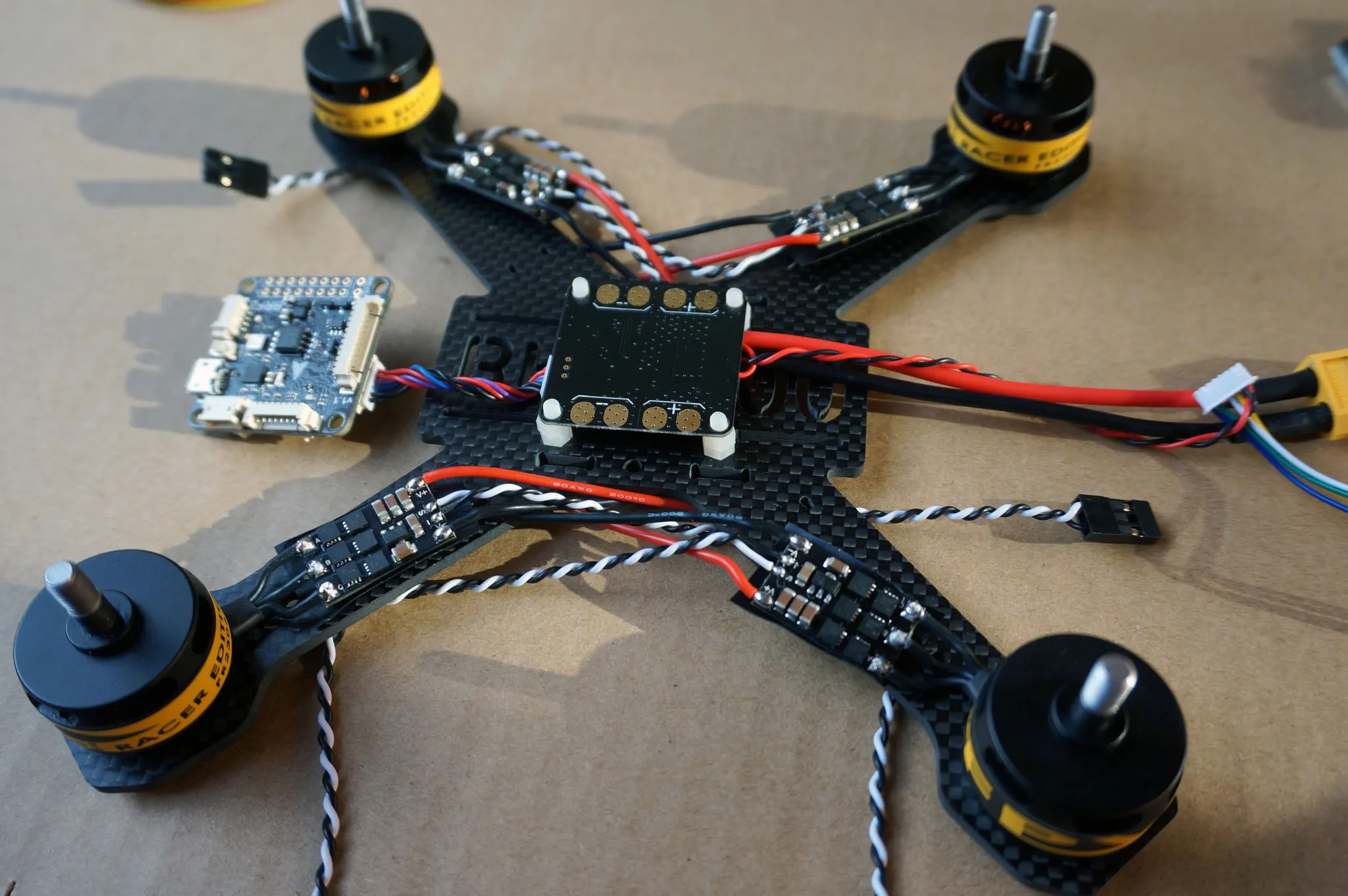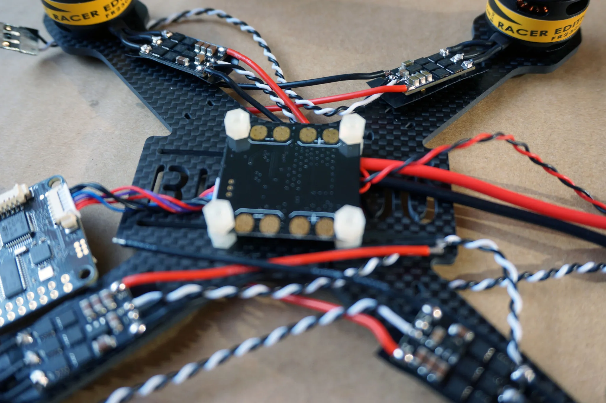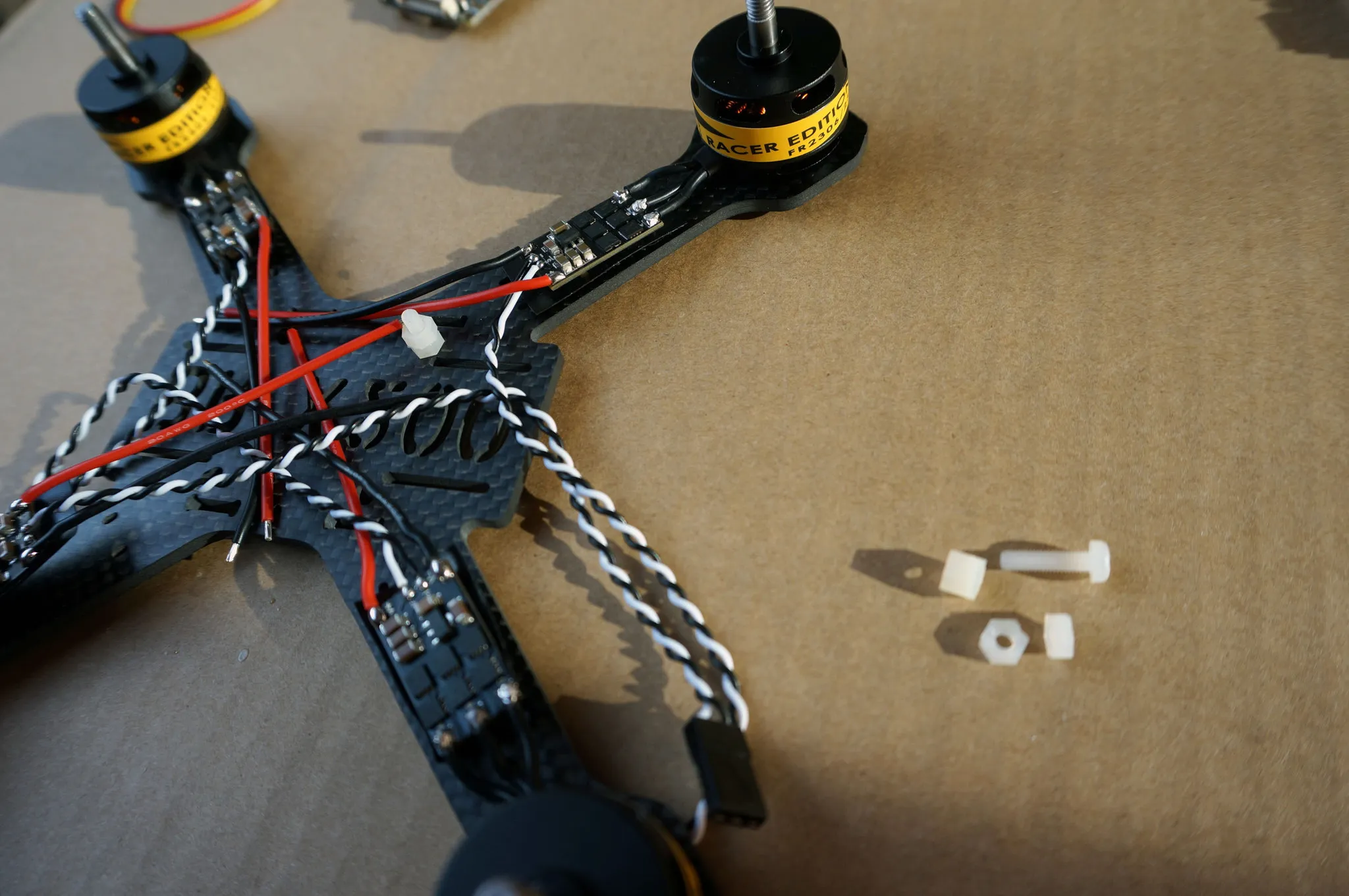 Zip tie the power leads on the ESCs.