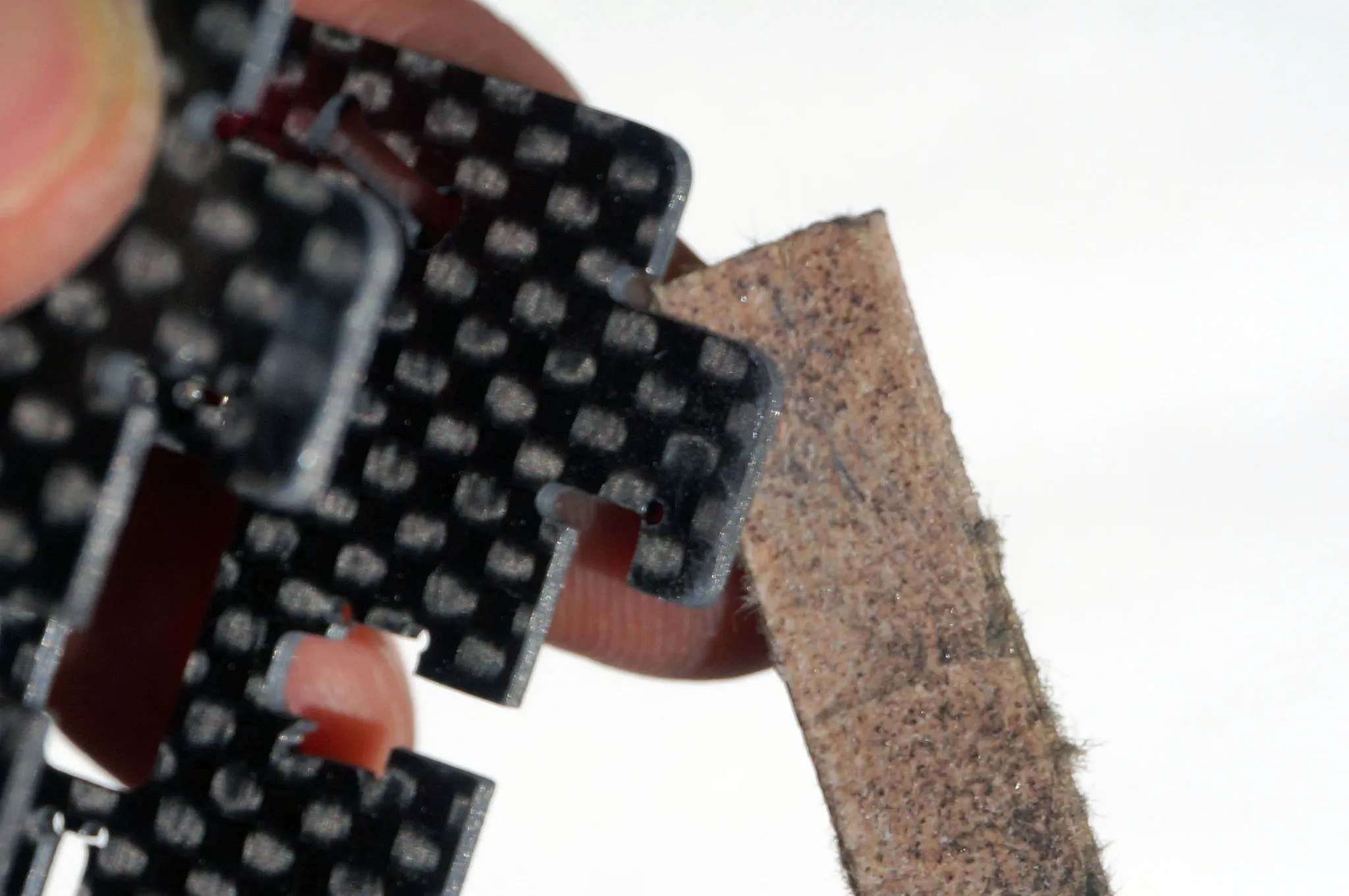 Test fit the body by sliding it into the bottom plate. Open up the holes in the bottom plate with some sand paper, if it’s too tight.