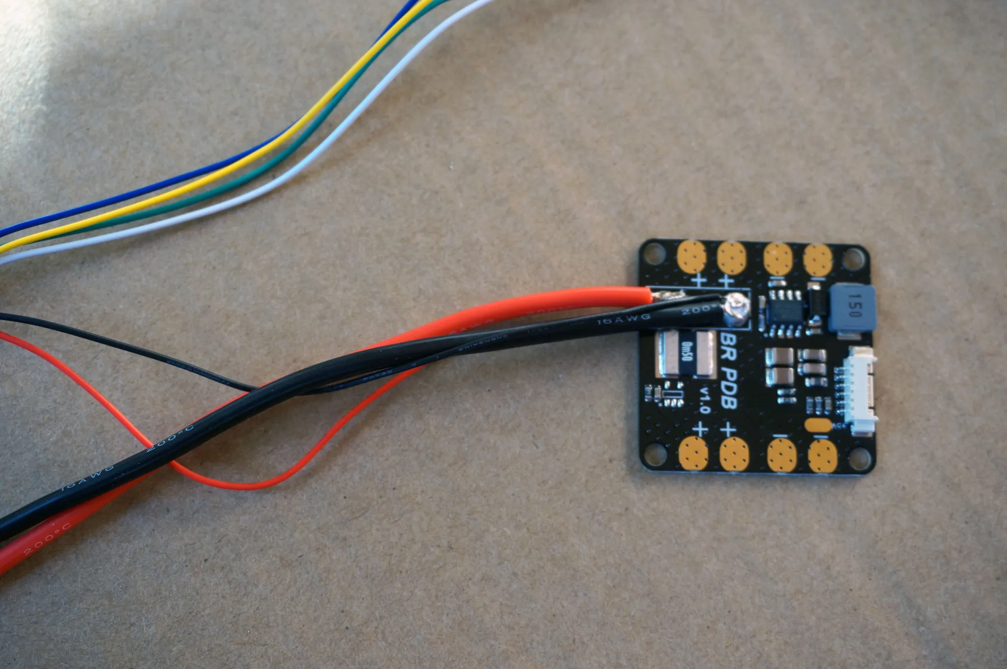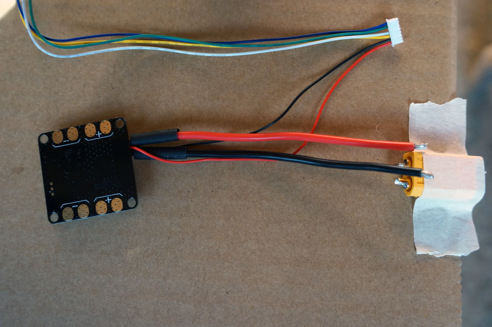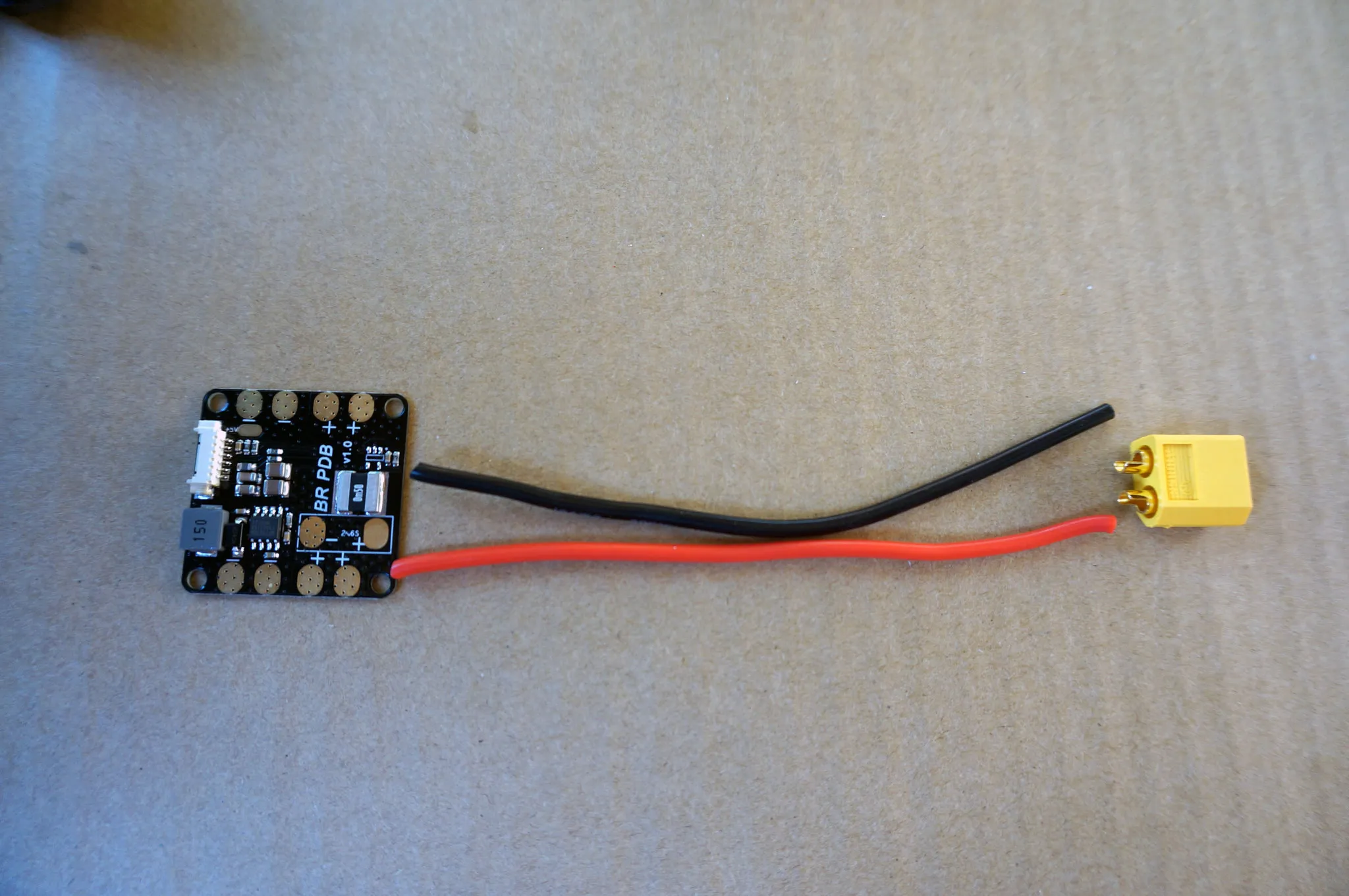 Let’s prep the PDB for installation. Grab the included 16AWG wires and XT-60 connector.