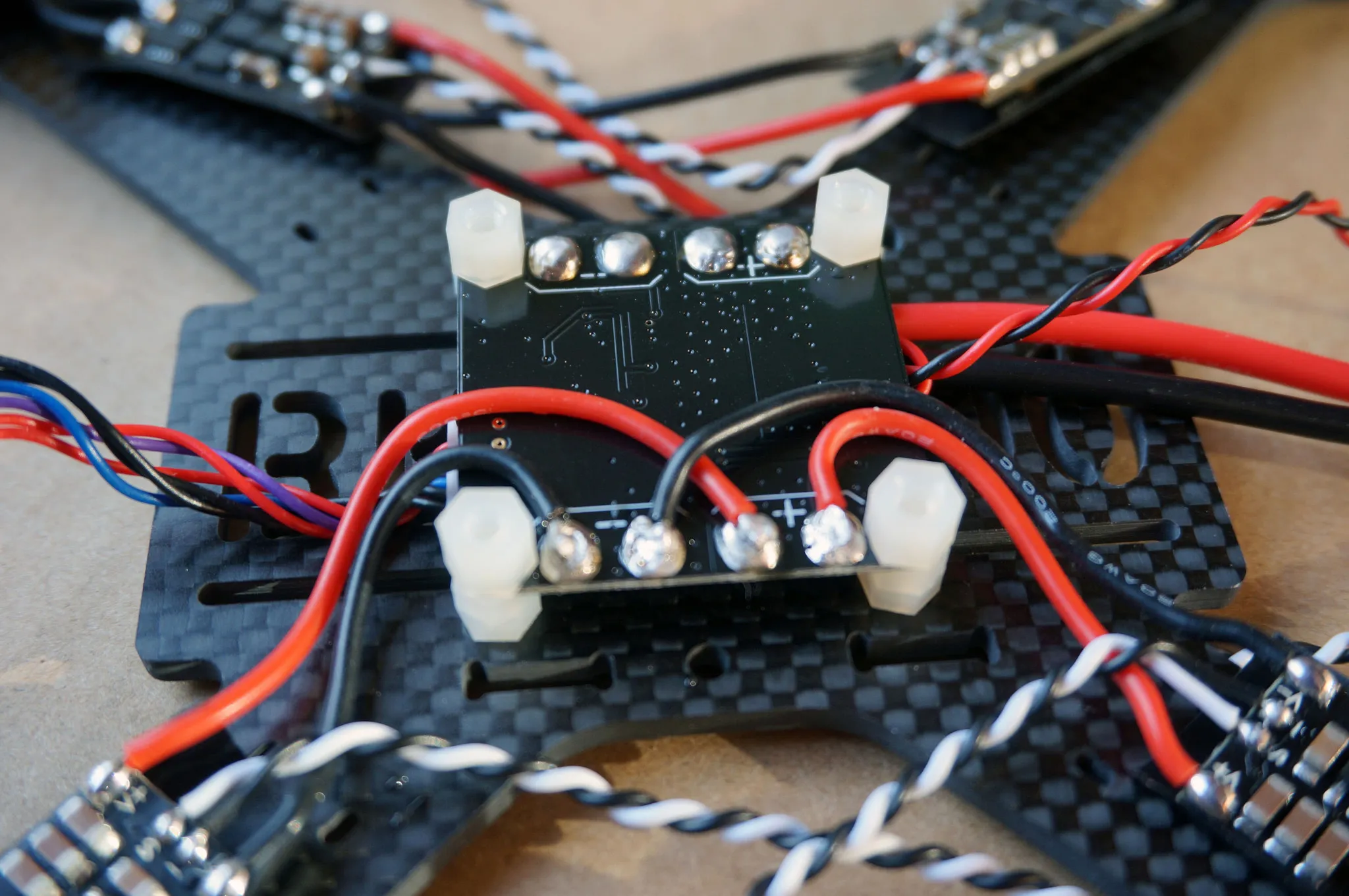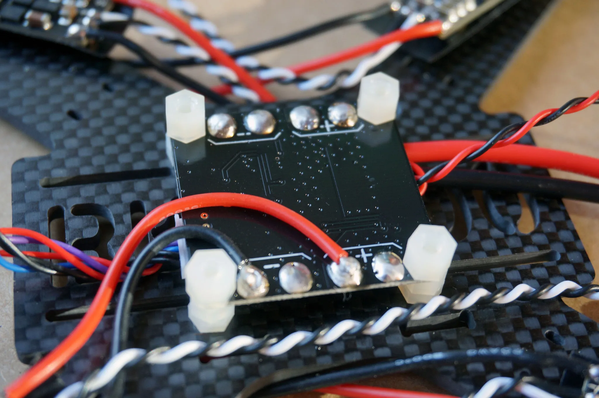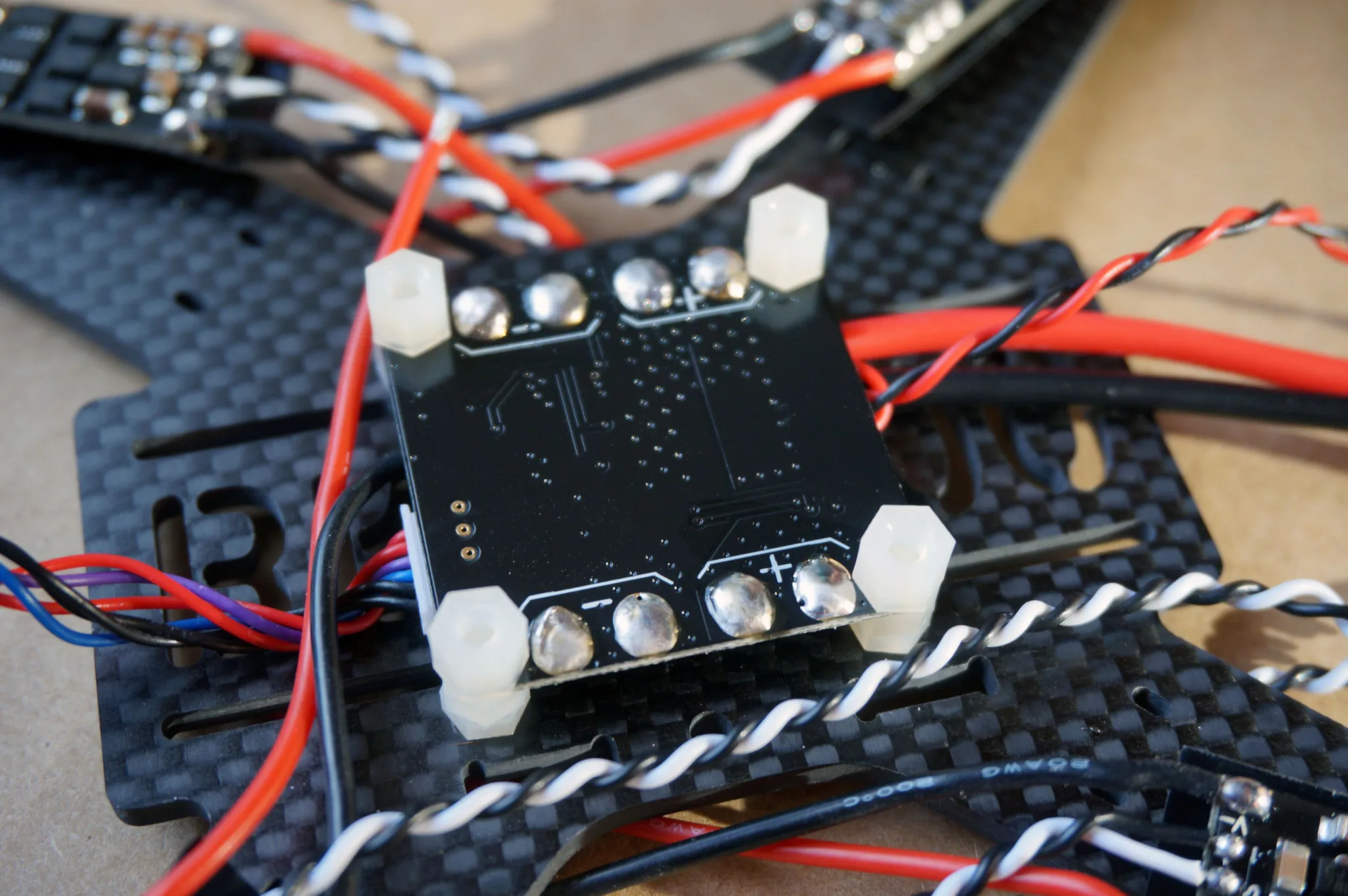Install the standoffs that will be between the PDB and the flight controller.