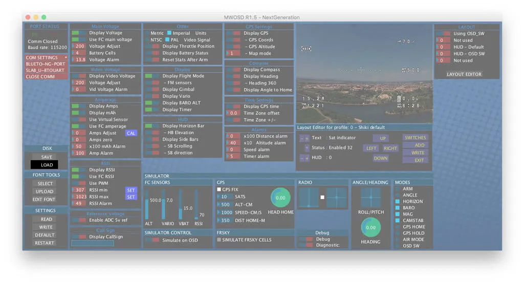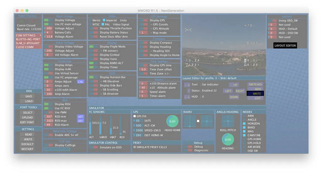 Under settings on the left, click WRITE to send the loaded configuration to the OSD.