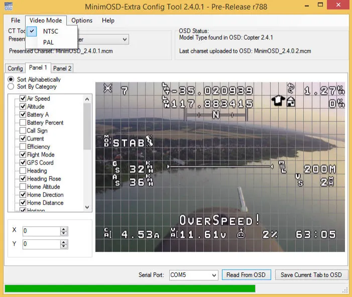 Open OSD_Config.exe in the Released folder and make sure your video format matches the camera you’re using: