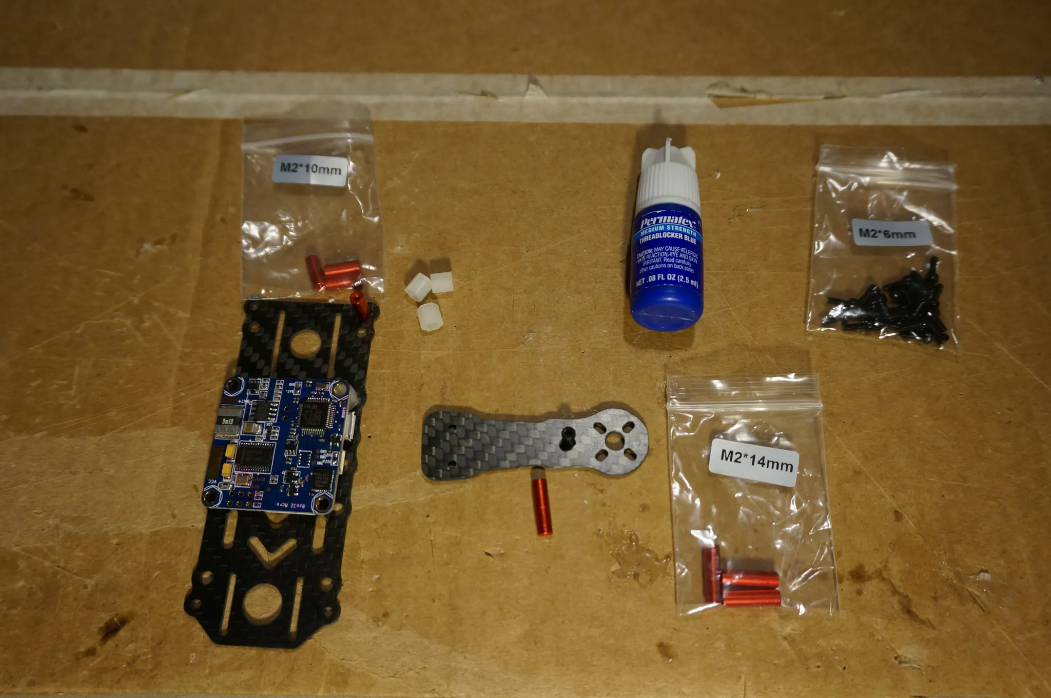 | (Image Missing: /img/blog/beerotor/parts/nylon-m3-bolt.jpg) | (optional) 8 nylon M3x5mm bolts to hold on the flight controller — 1x $1.30 |
