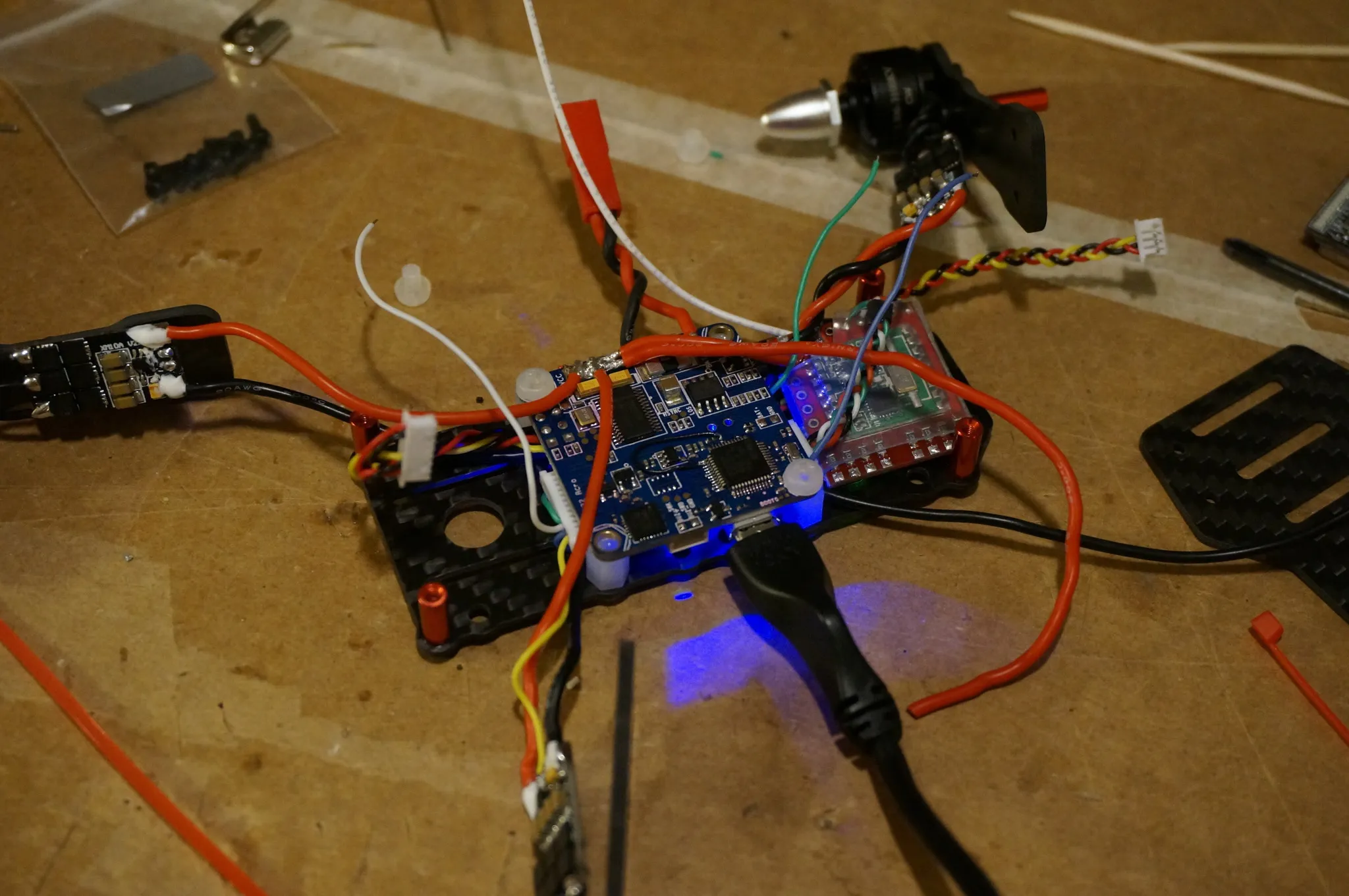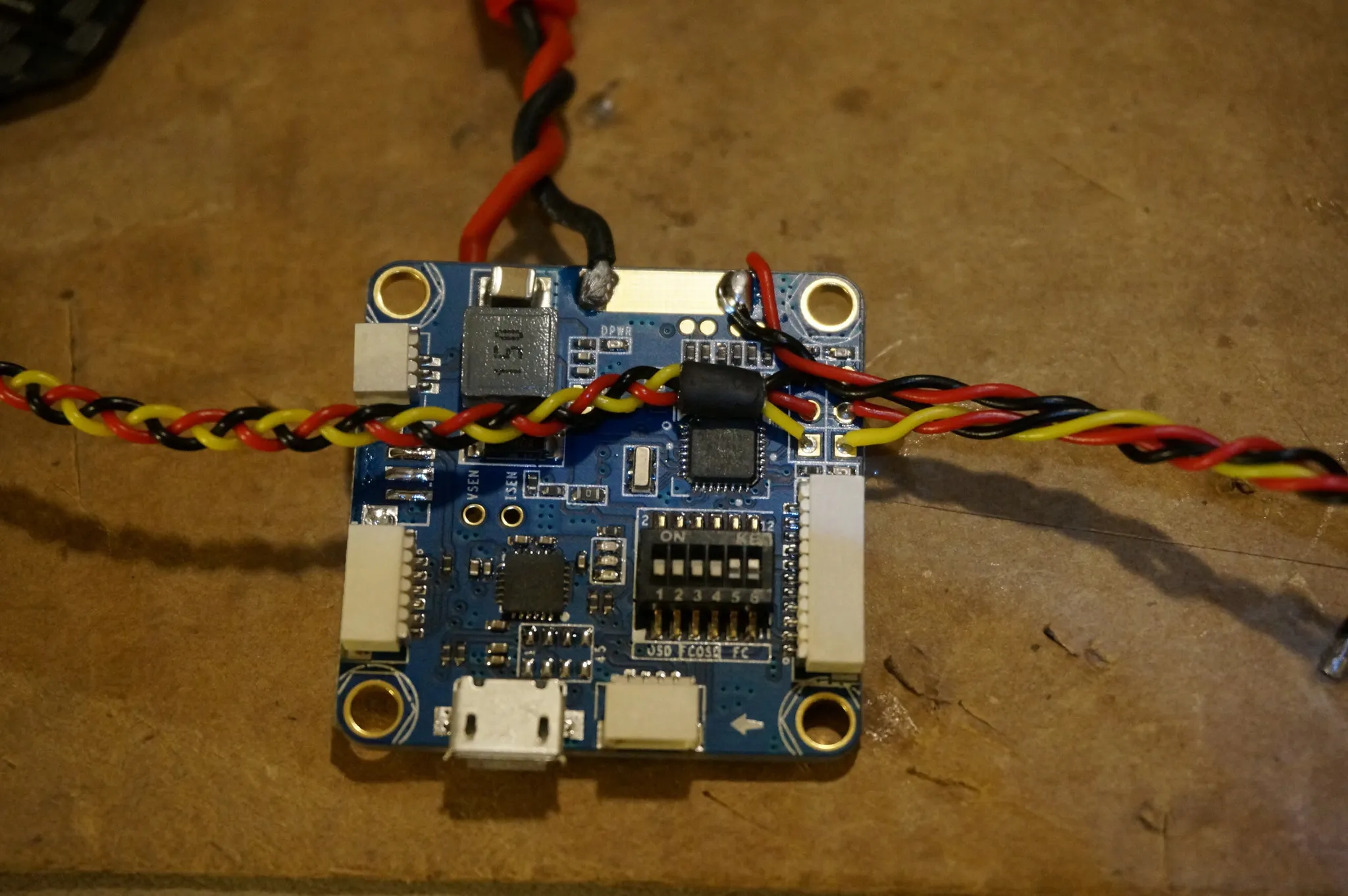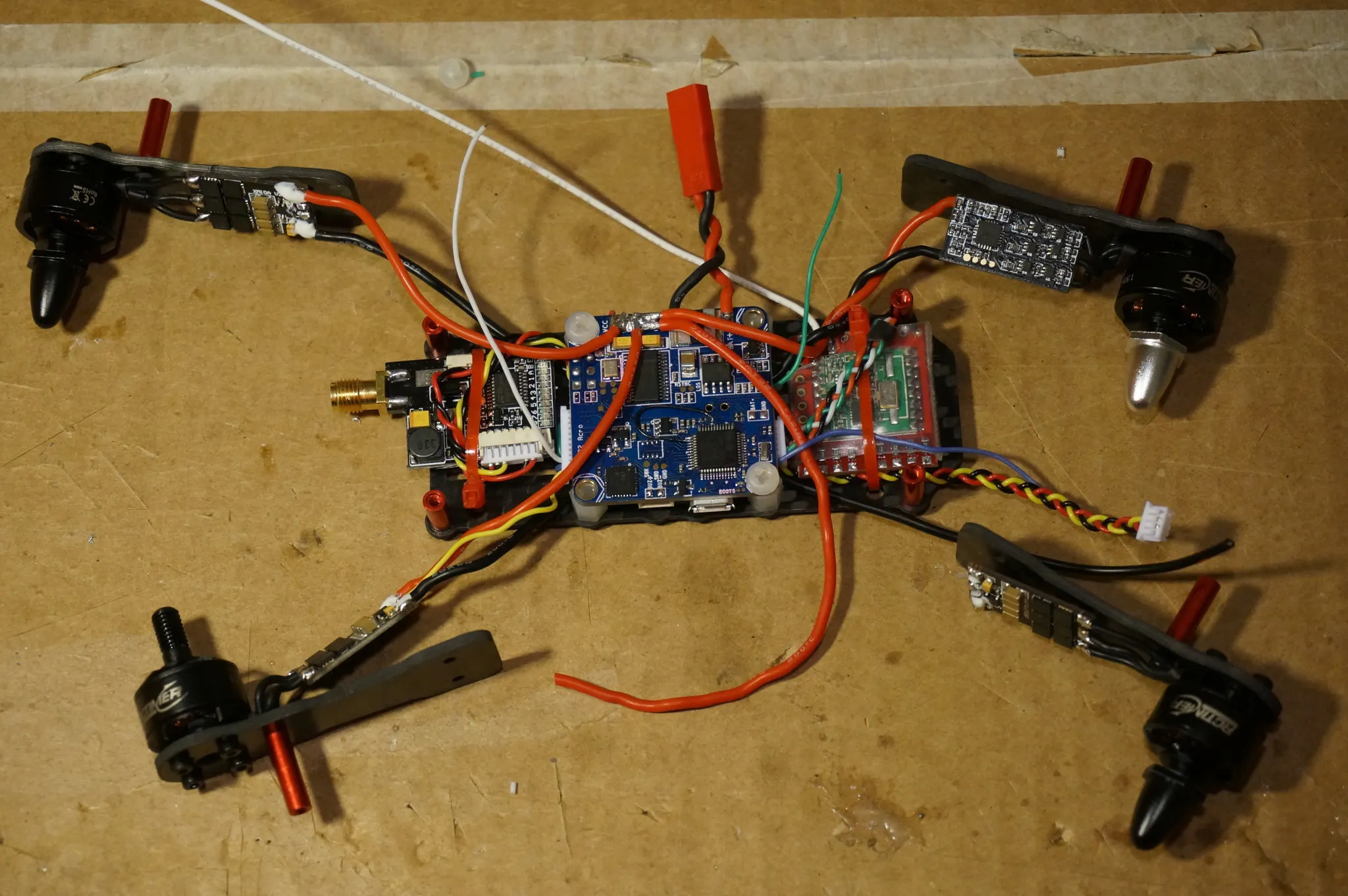 Unlike my Diatone 150mm quad, the motors are exactly symmetrical (even though it doesn’t appear so). This is great — we won’t need any custom motor mixes.
