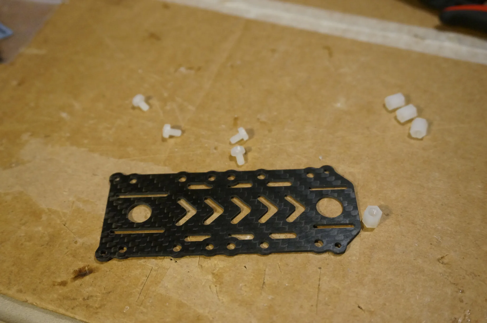 Start by mounting the standoffs for the flight controller. I’m using nylon screws, but the included M3x4mm screws will be fine as well.