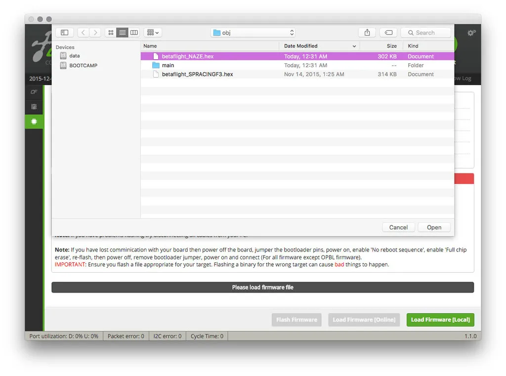 But BetaFlight is way better, so let’s flash that.